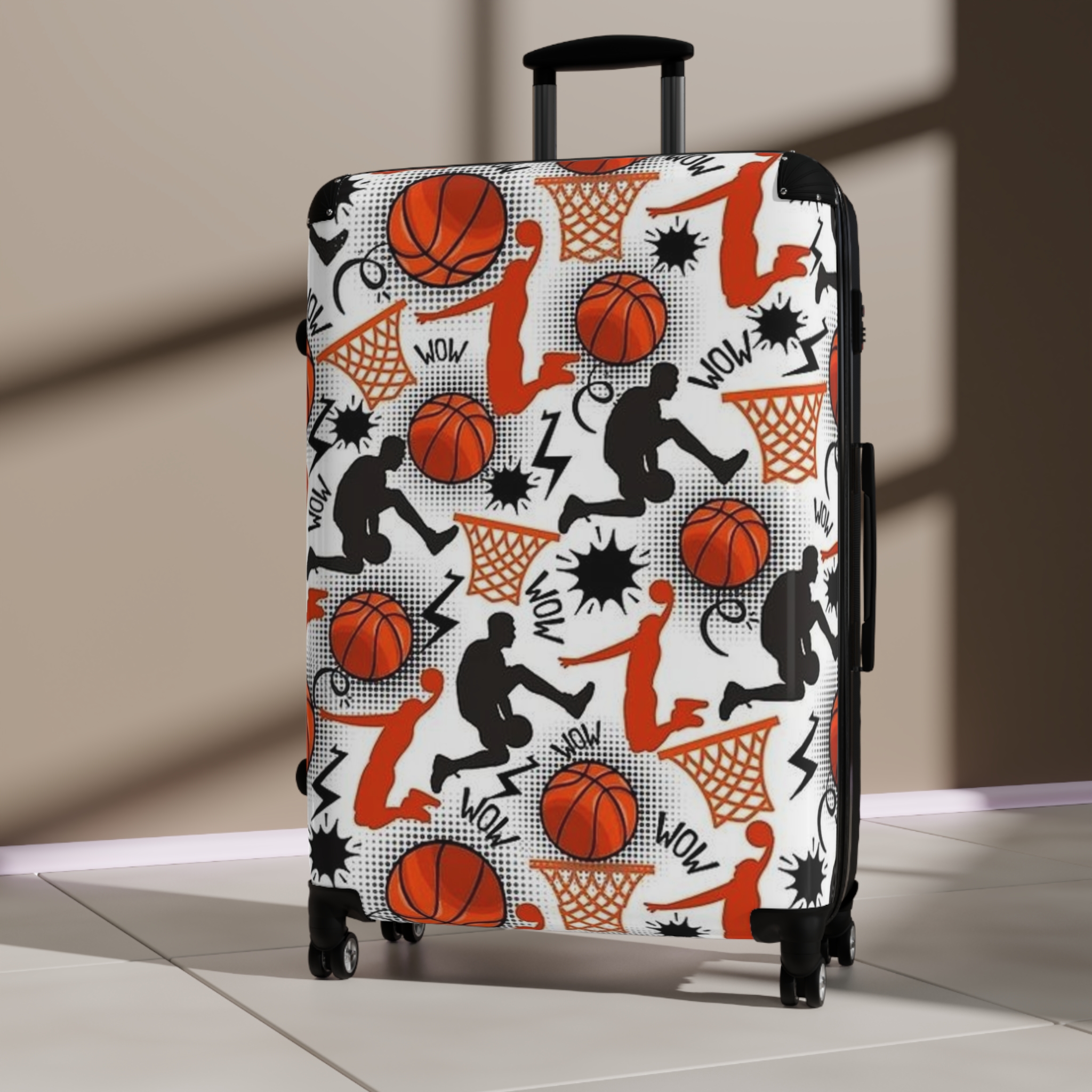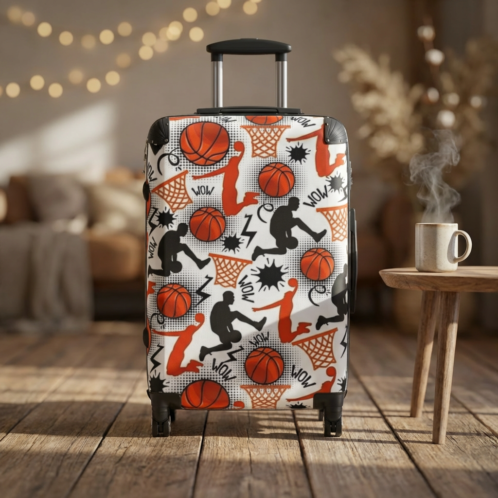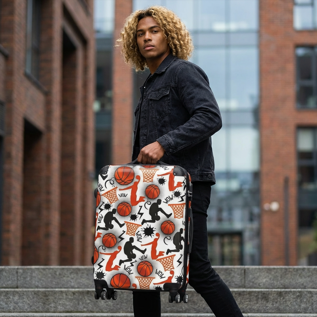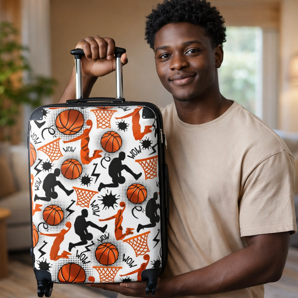 Basketball Pattern Suitcase | Sports Travel Luggage, Orange Hoops Design