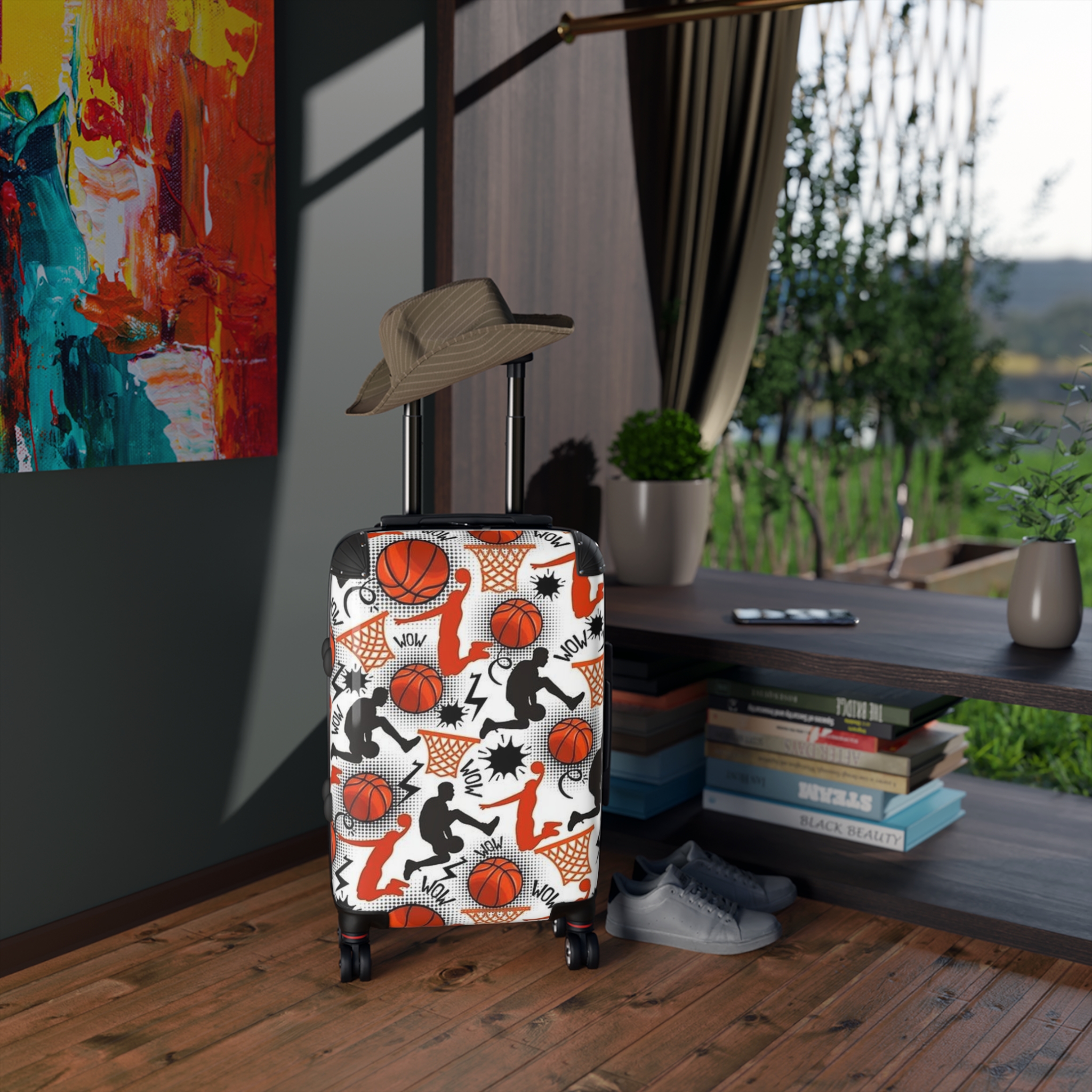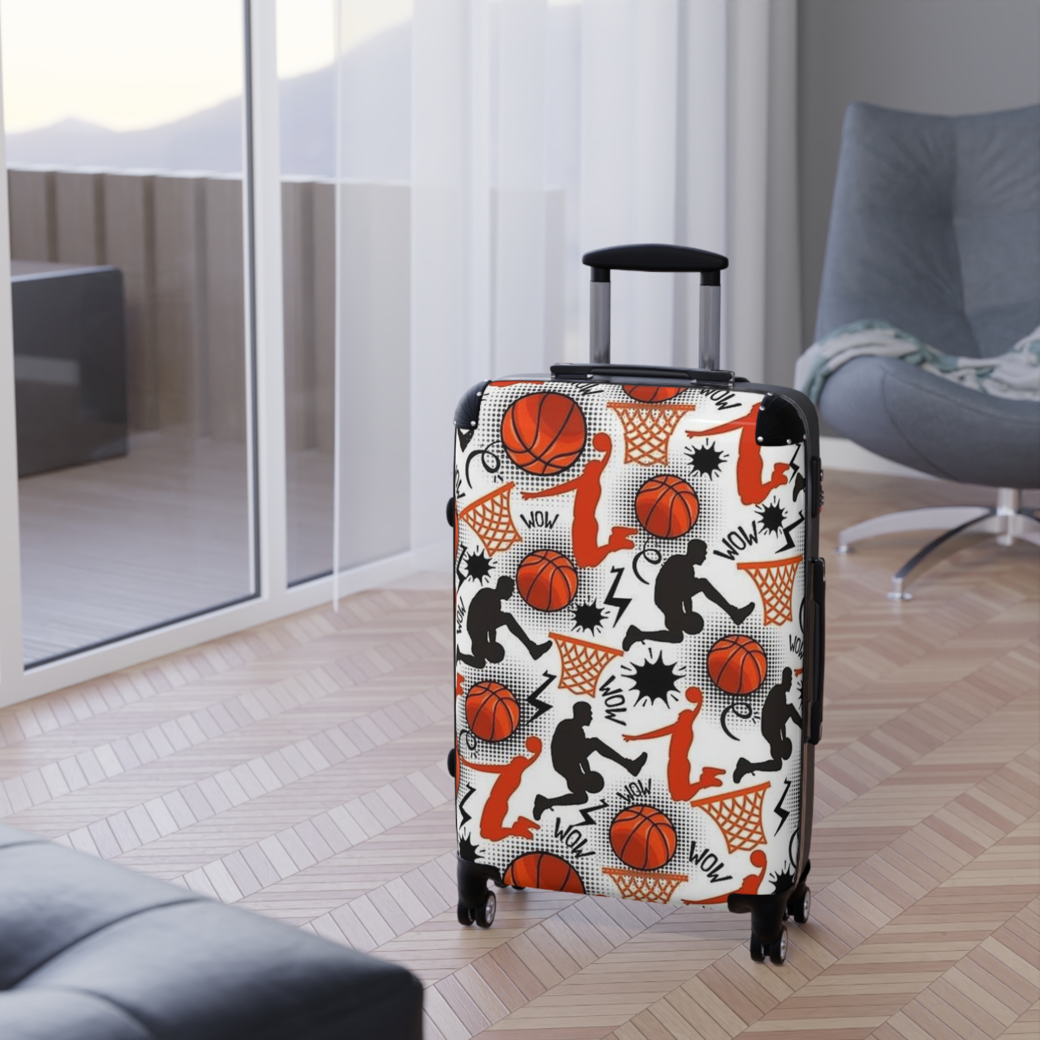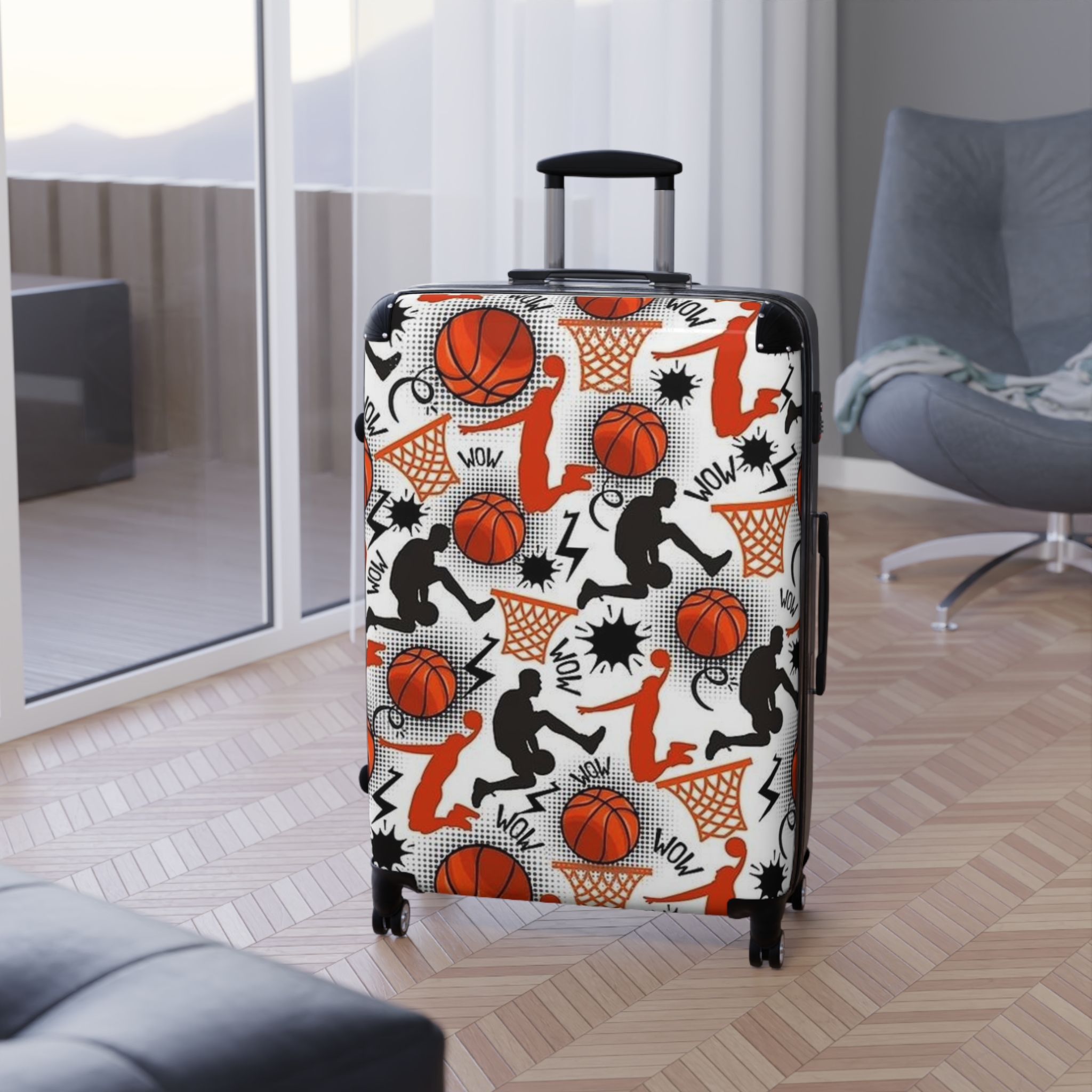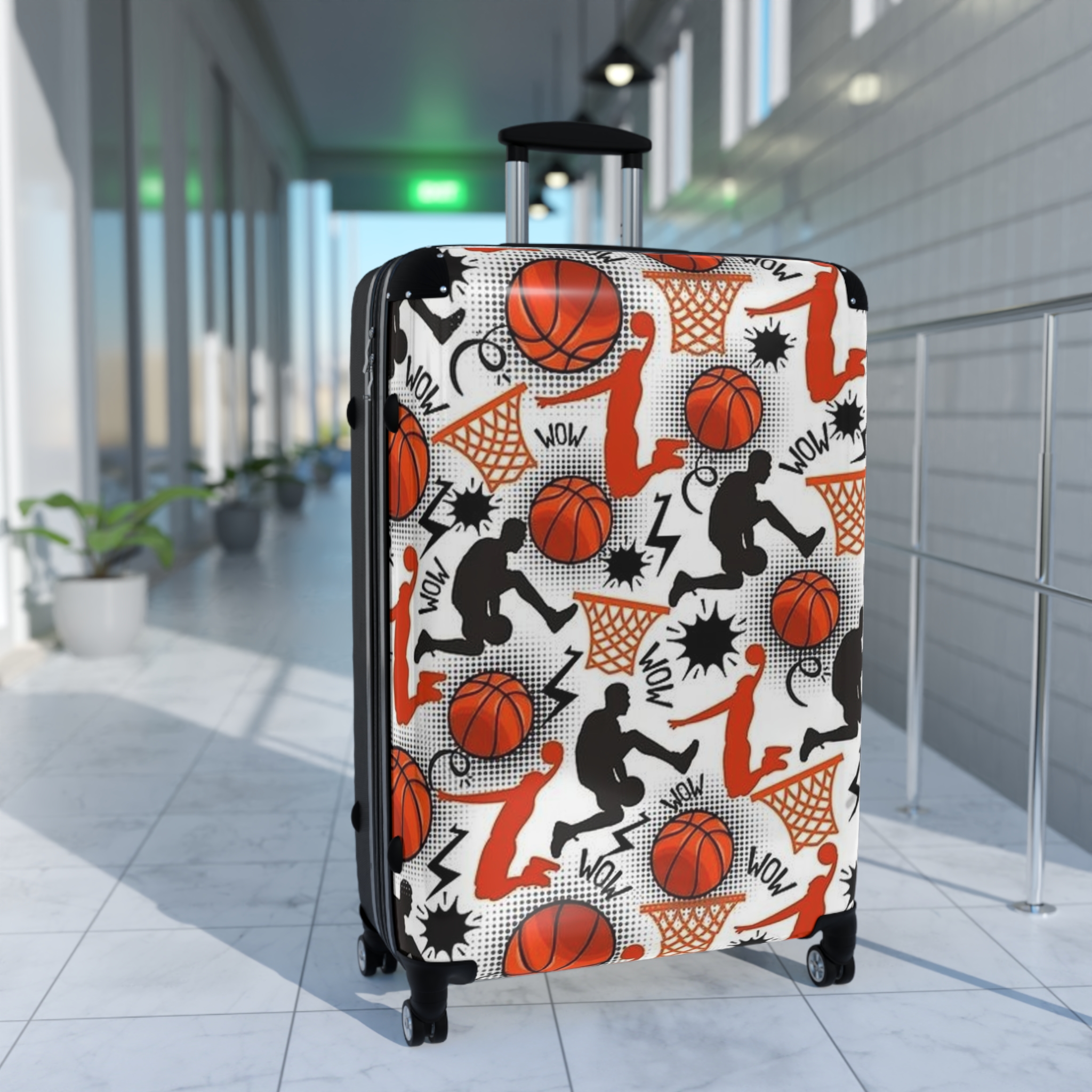 Basketball Pattern Suitcase | Sports Travel Luggage, Orange Hoops Design