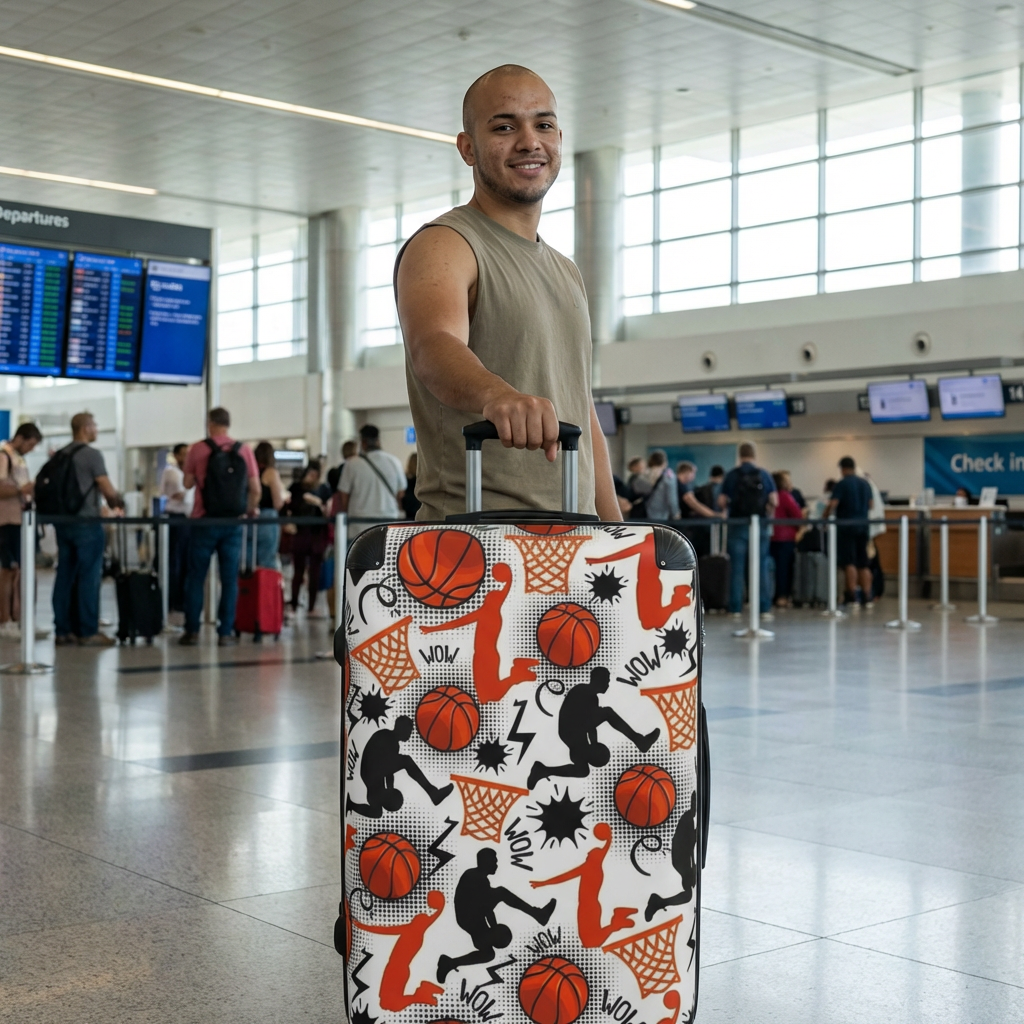 This hard-shell suitcase brings game-day energy to every trip. Bright, high-contrast basketball graphics leap across the polycarbonate front, while the tough ABS back protects your gear from knocks and scrapes. Inside, thoughtful organization keeps balls-of-socks and chargers in their place: two inner pockets and a removable lining under a rubber seal make packing and unpacking simple. Roll through crowded terminals on smooth 360° double wheels and lock up the main compartment with the built-in lock for added peace of mind. The adjustable telescopic handle and lightweight construction make it easy to carry the excitement from home court to away matches or weekend getaways.