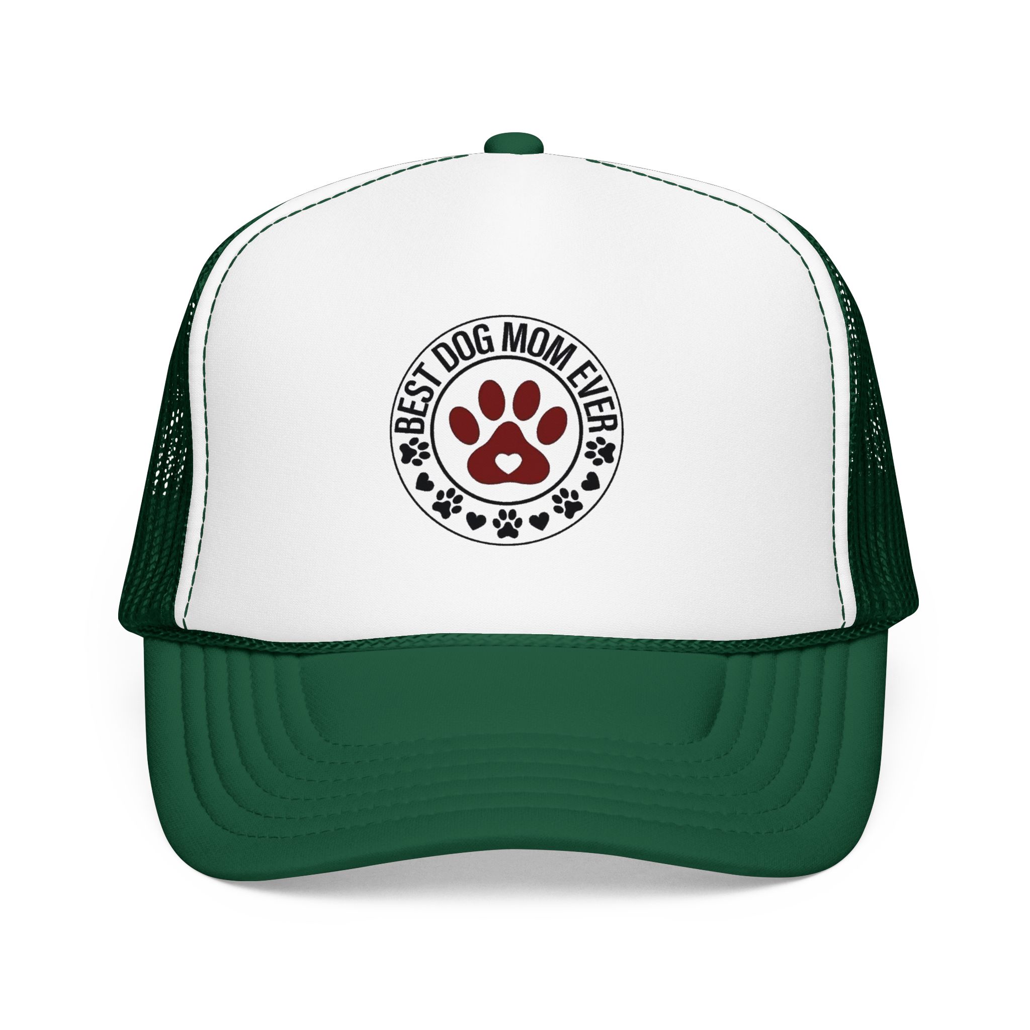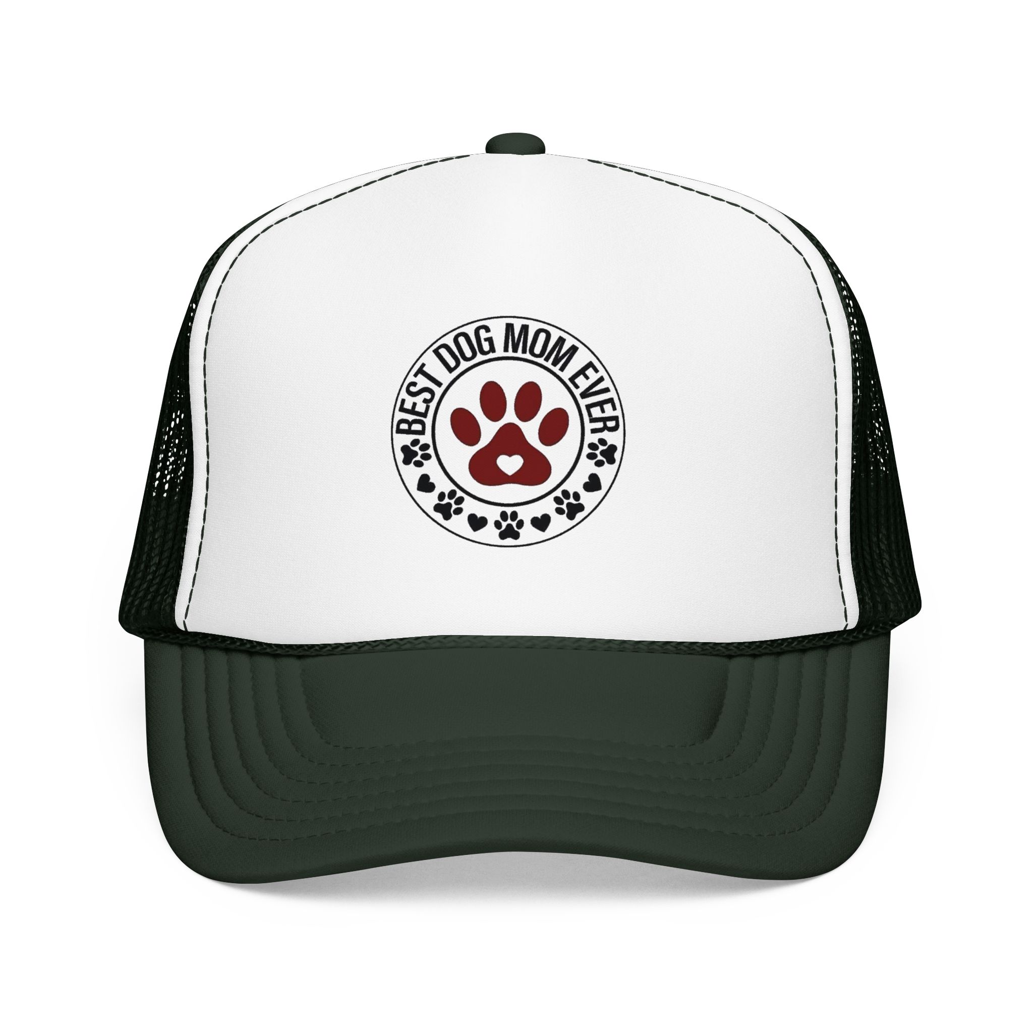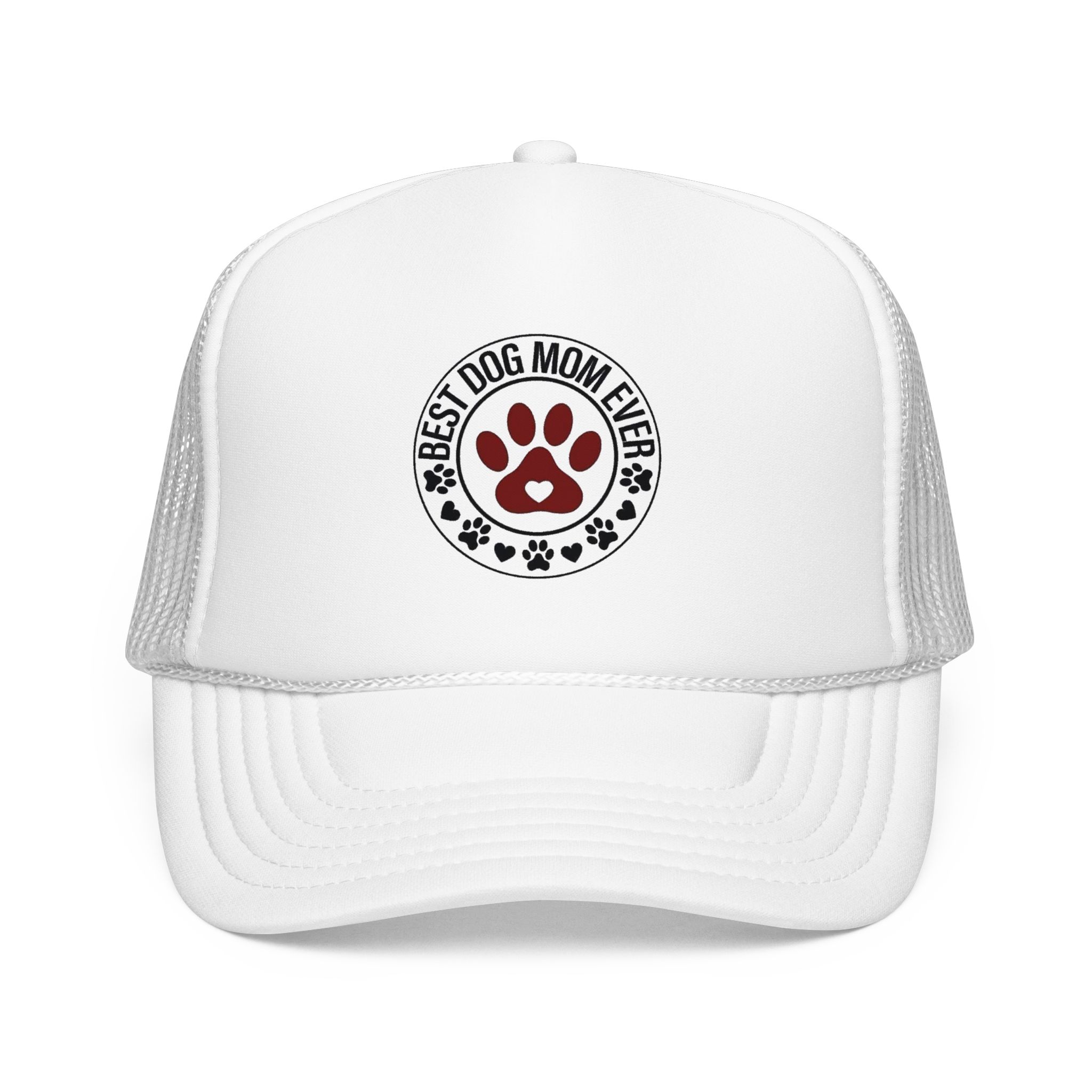 A laid-back, foam-front trucker hat that speaks to anyone who greets mornings with wagging tails. The high-profile, structured front panel carries a single, heartfelt emblem — a paw-print crest that reads “Best Dog Mom Ever.” The ventilated mesh back keeps things cool during long walks, backyard playtime, and weekend drives to the dog park. It sits comfortably with an adjustable snap and a soft inner sweatband, so it stays put whether you’re tossing a ball or sipping coffee on the porch. Wear it low over your eyes or tipped back with your pup crowding your lap — it feels like an inside nod from fellow dog lovers, and a quiet, everyday celebration of the small, loud love dogs bring into a home.