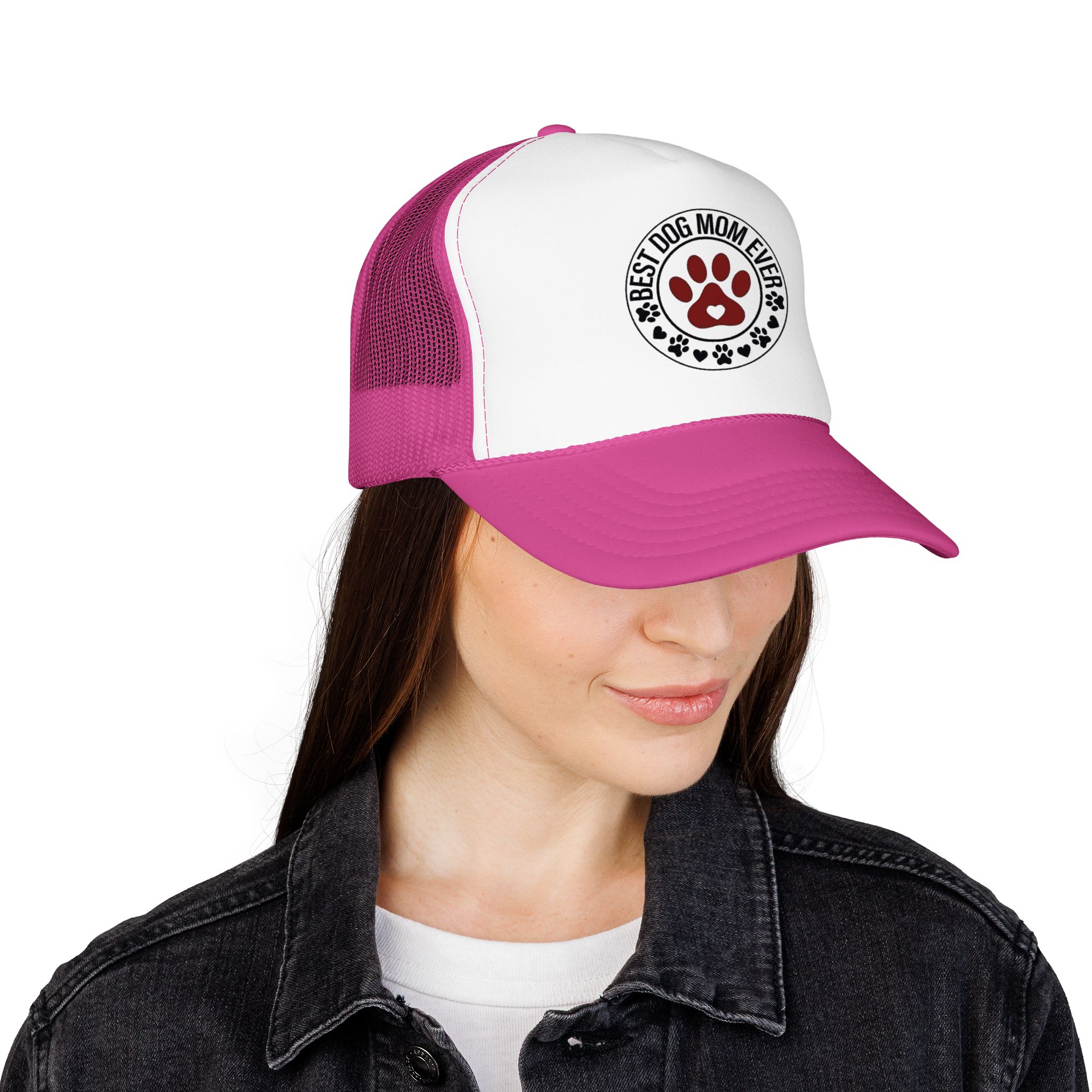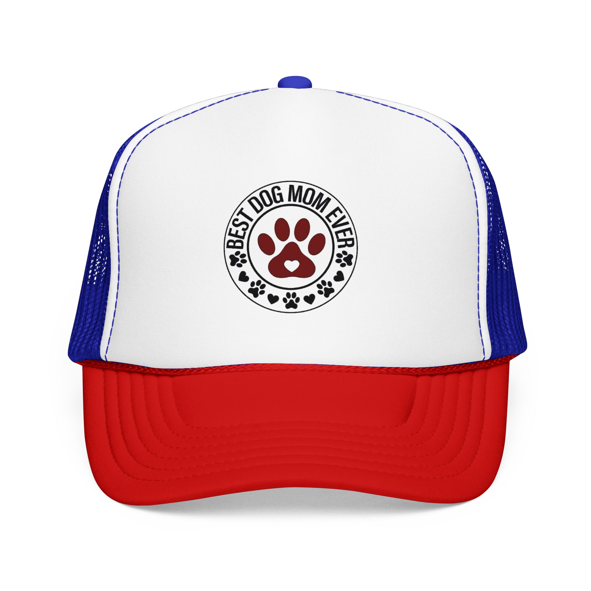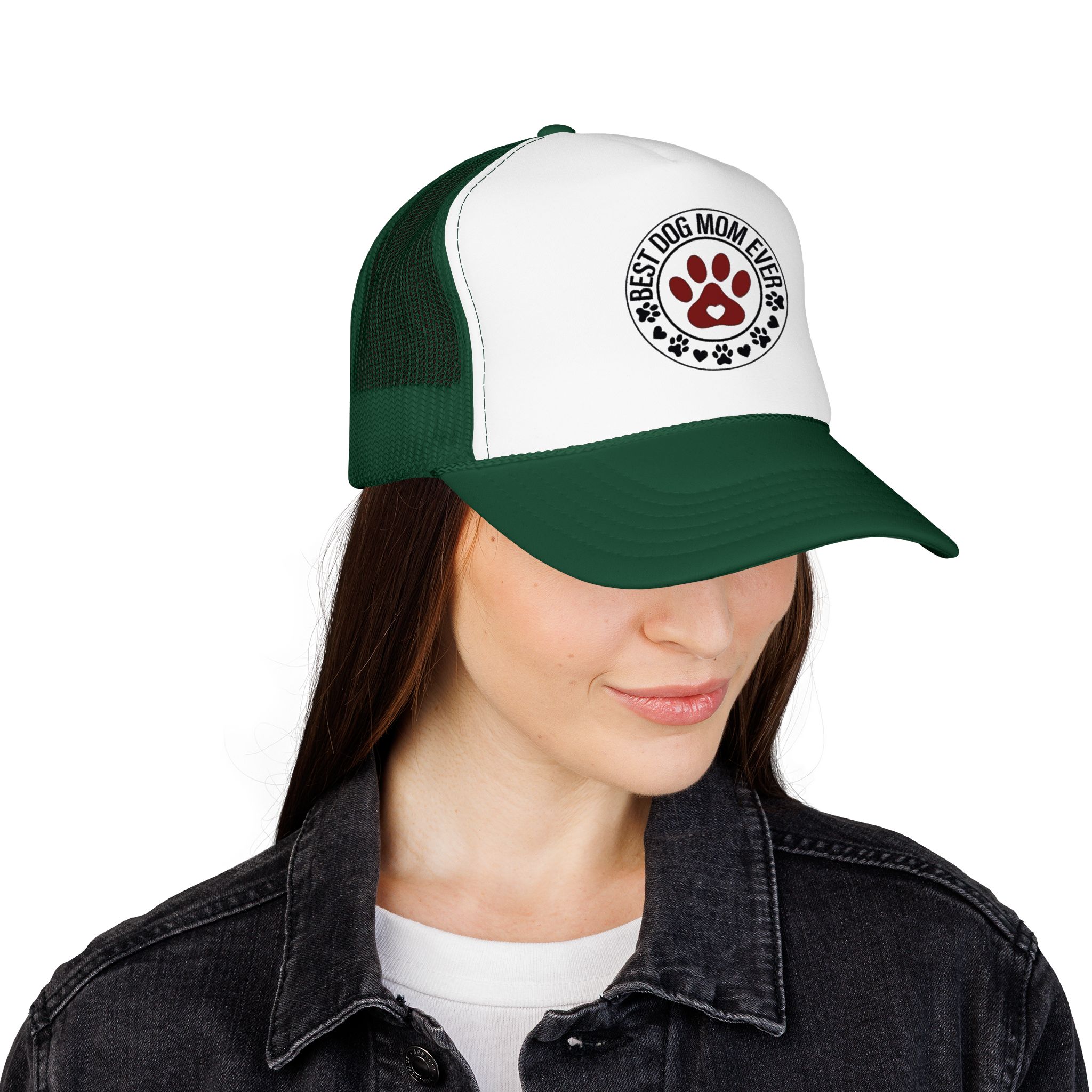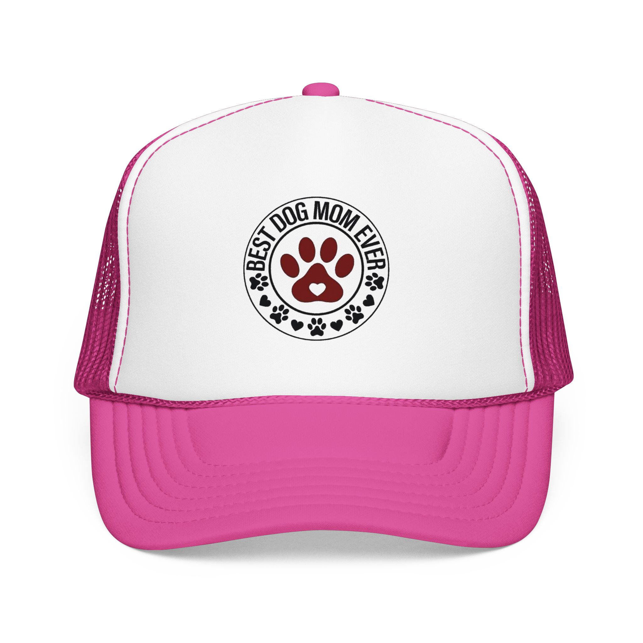 A laid-back, foam-front trucker hat that speaks to anyone who greets mornings with wagging tails. The high-profile, structured front panel carries a single, heartfelt emblem — a paw-print crest that reads “Best Dog Mom Ever.” The ventilated mesh back keeps things cool during long walks, backyard playtime, and weekend drives to the dog park. It sits comfortably with an adjustable snap and a soft inner sweatband, so it stays put whether you’re tossing a ball or sipping coffee on the porch. Wear it low over your eyes or tipped back with your pup crowding your lap — it feels like an inside nod from fellow dog lovers, and a quiet, everyday celebration of the small, loud love dogs bring into a home.