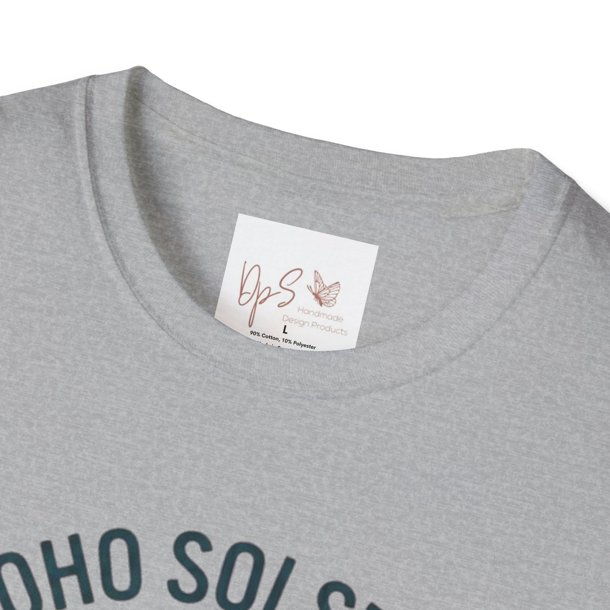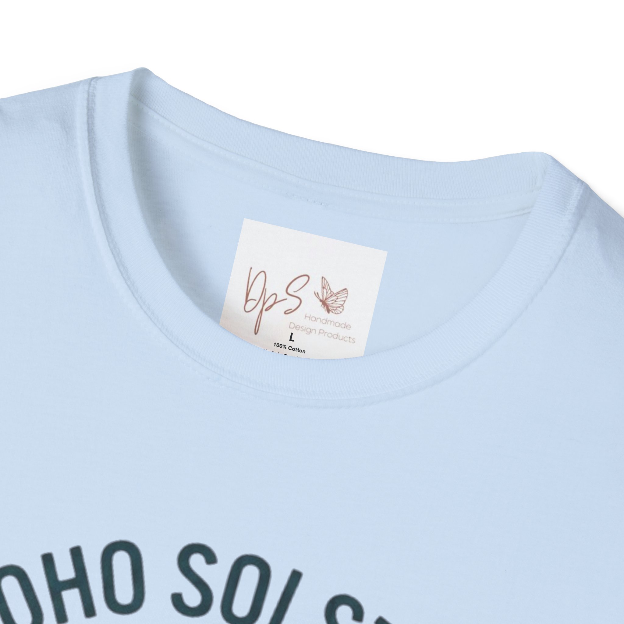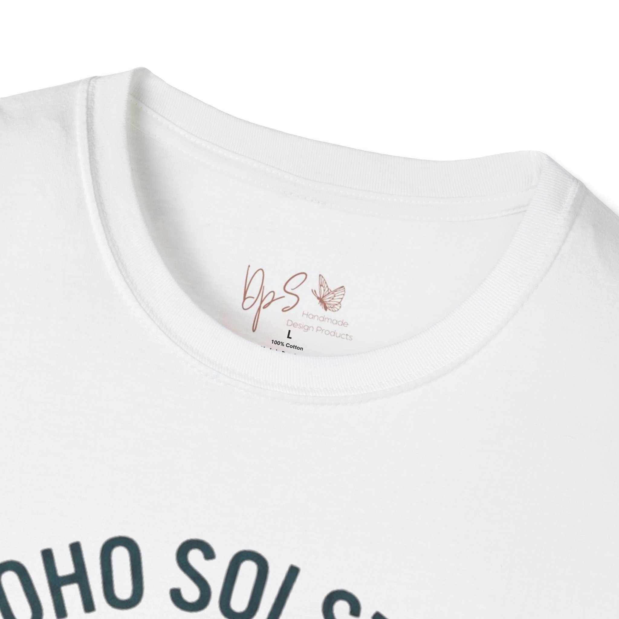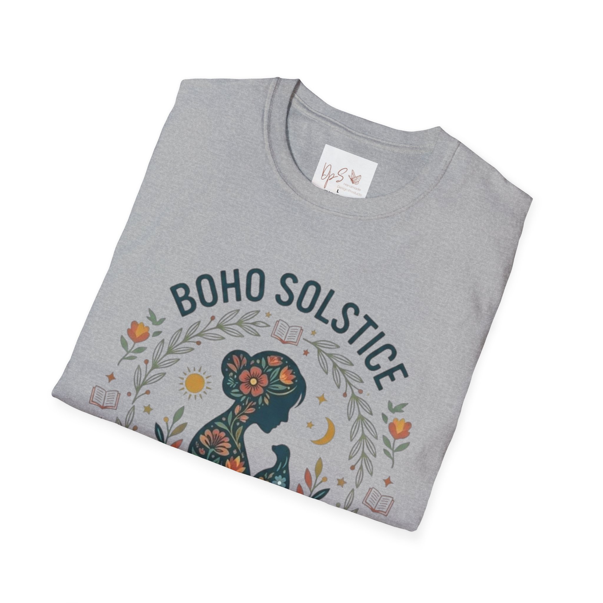 A soft, lightweight tee printed with a warm, bohemian solstice design — a floral silhouette framed by leaves, stars and a crescent moon, with the banner reading “Radiate Good Vibes Inside and Out.” The breathable ring-spun cotton feels gentle against skin, while the crew neckline and classic fit keep the look relaxed and effortless. Wear it layered under a cardigan for chilly evenings or alone when the sun lingers late; the muted earthy palette and hand-drawn motif bring a calm, ritual-like energy to everyday outfits. Thoughtful details like a tear-away label and reinforced shoulder tape make this shirt comfortable for long days of gatherings, markets, or quiet backyard rituals.