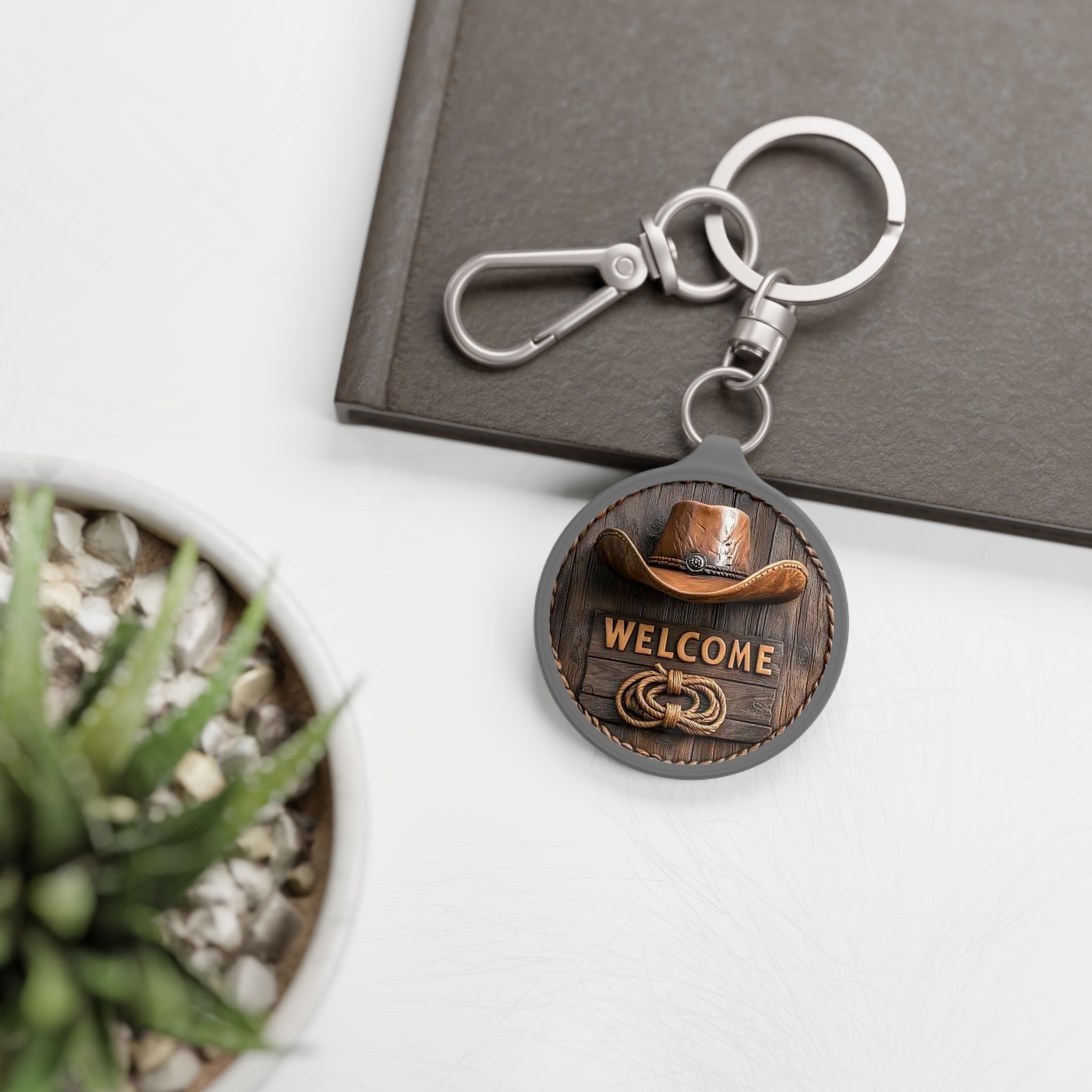 Cowboy Hat Welcome Keyring Tag | Western Rustic Keychain