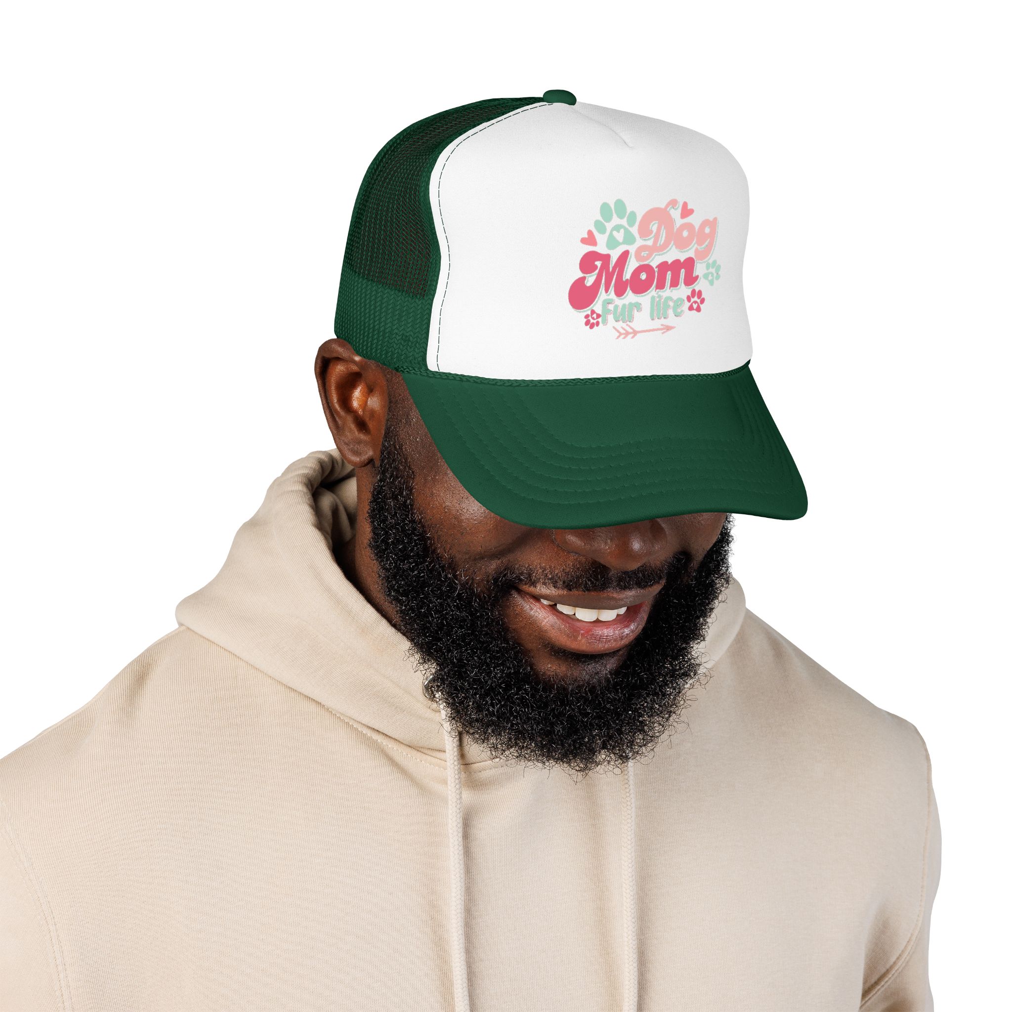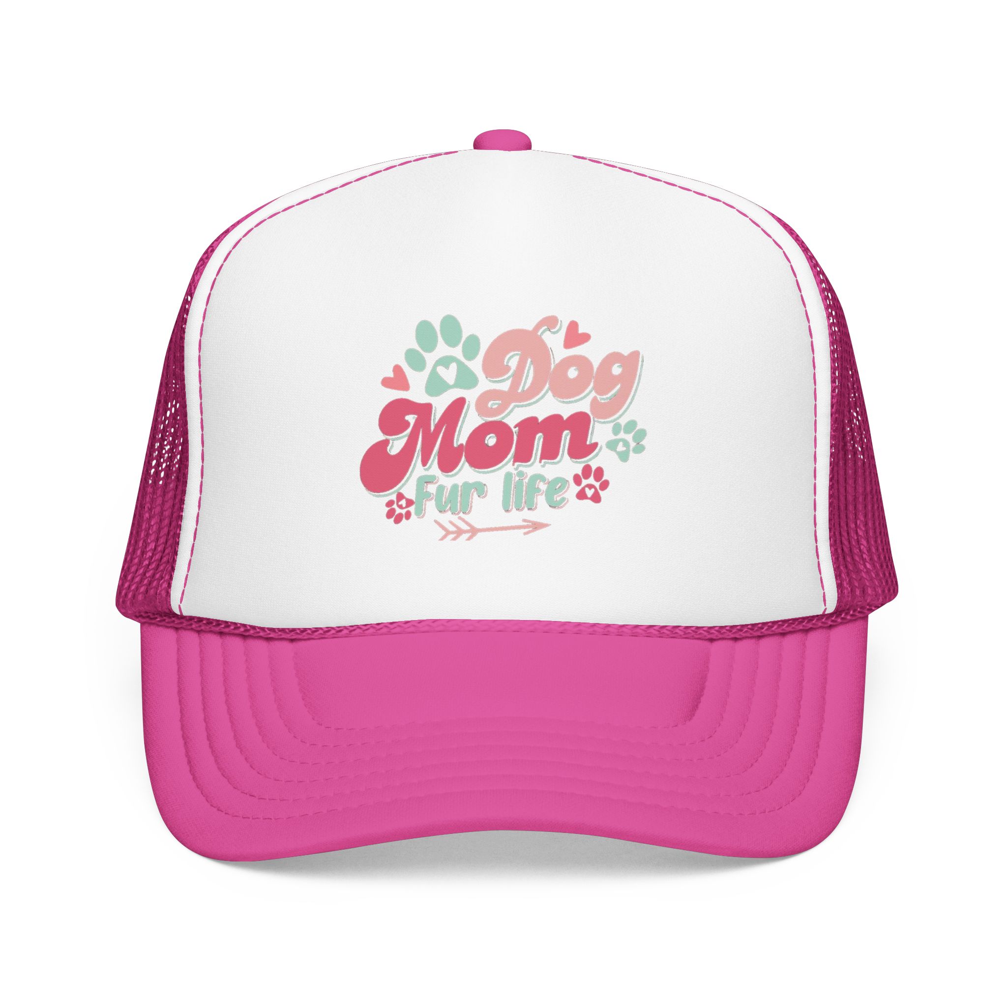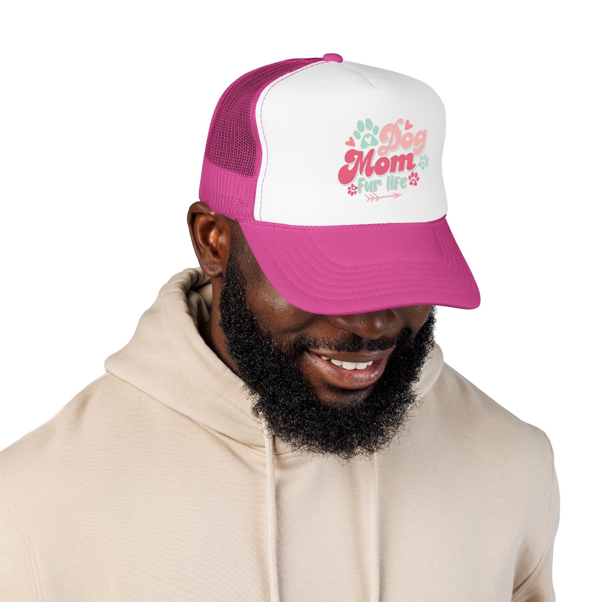 This foam trucker hat brings warm, playful energy to everyday wear. Soft pastel lettering and paw-print accents read “Dog Mom” with a subtle “fur life” tagline, lending a lighthearted, affectionate feel. The high-profile, seamless foam front showcases the design clearly, while the black mesh back keeps you cool. Wear it on morning dog walks, at the dog park, or running errands to show quiet devotion to your pup with a fun, feminine touch. The structured brim and thicker fabric give it a substantial, lasting look that holds up through seasons and outings.