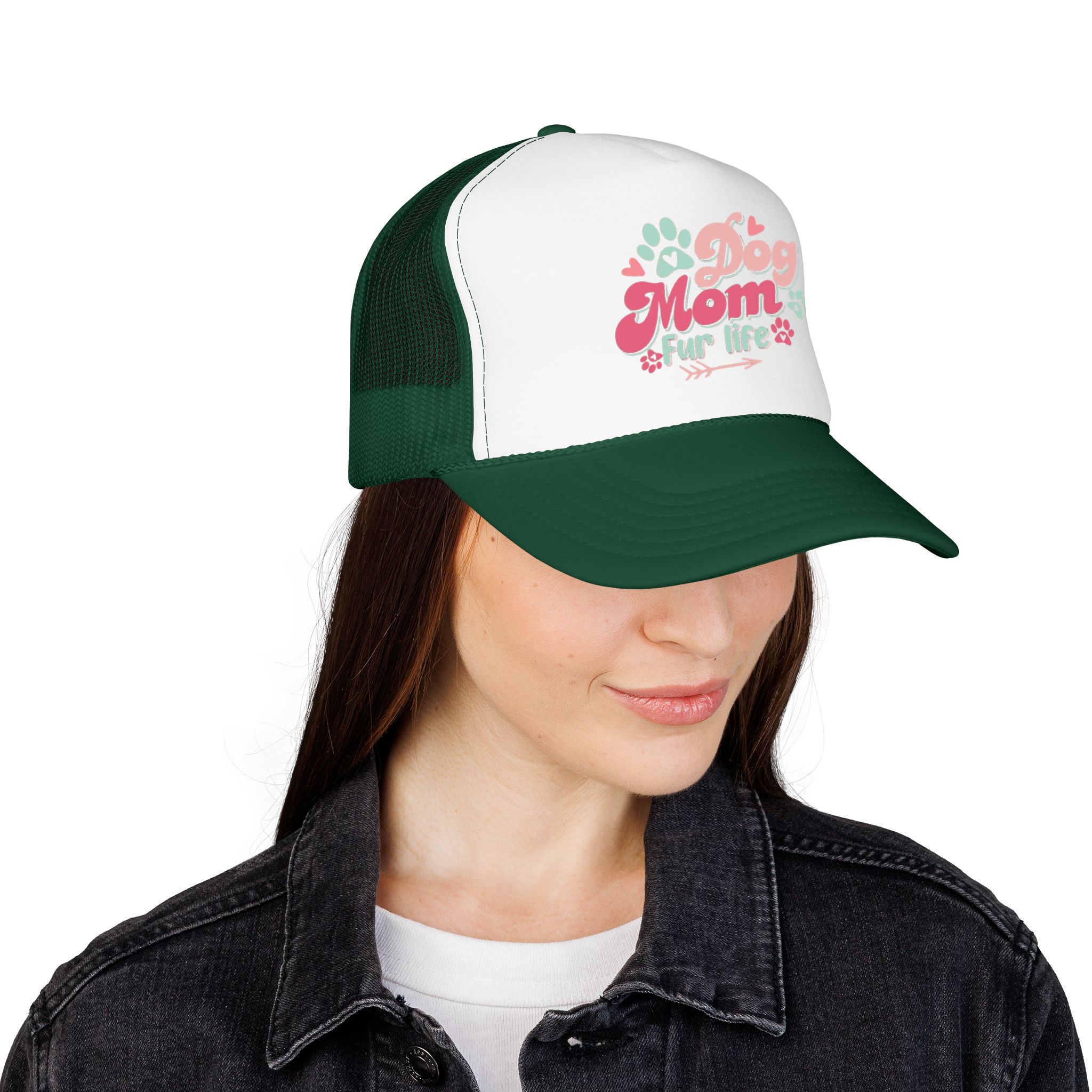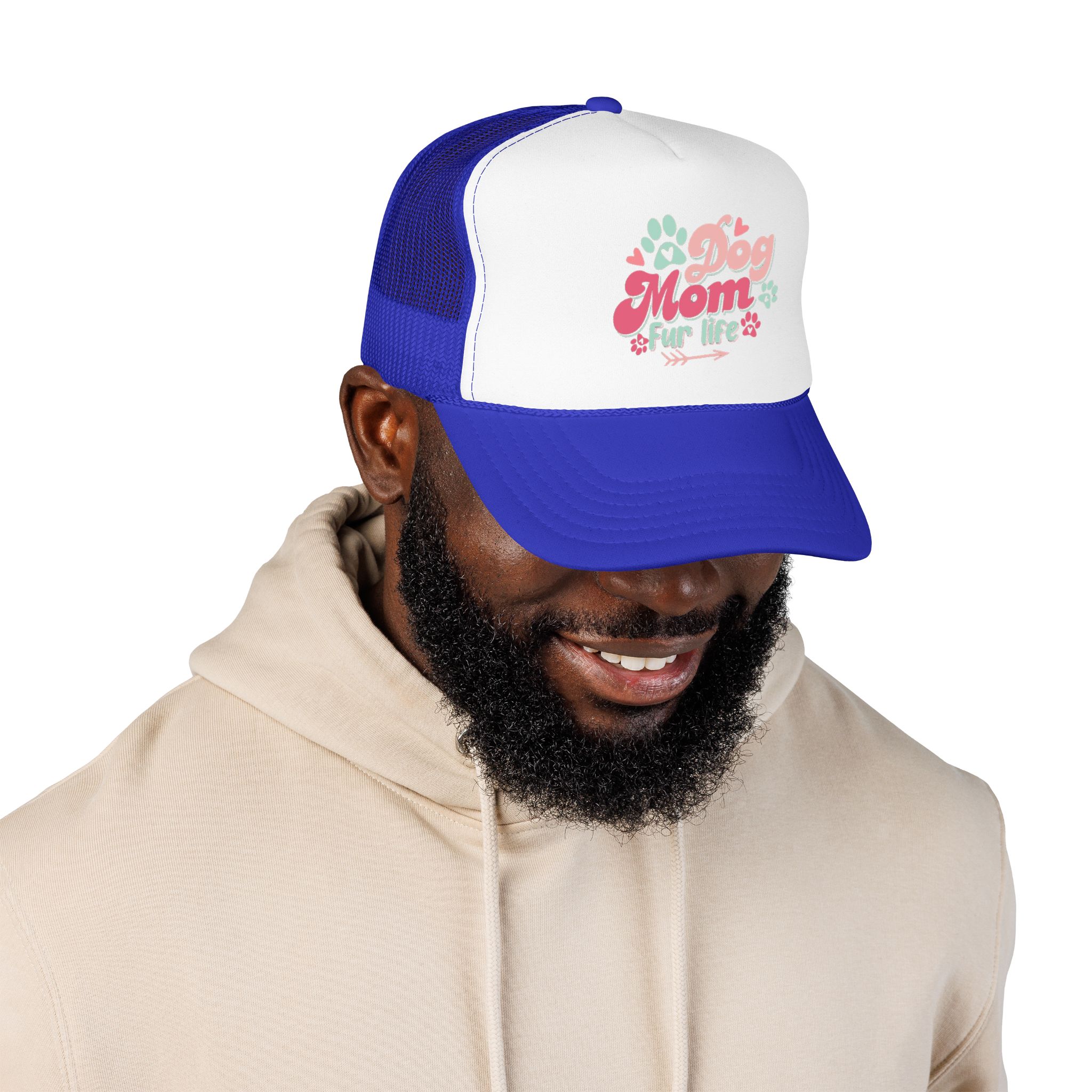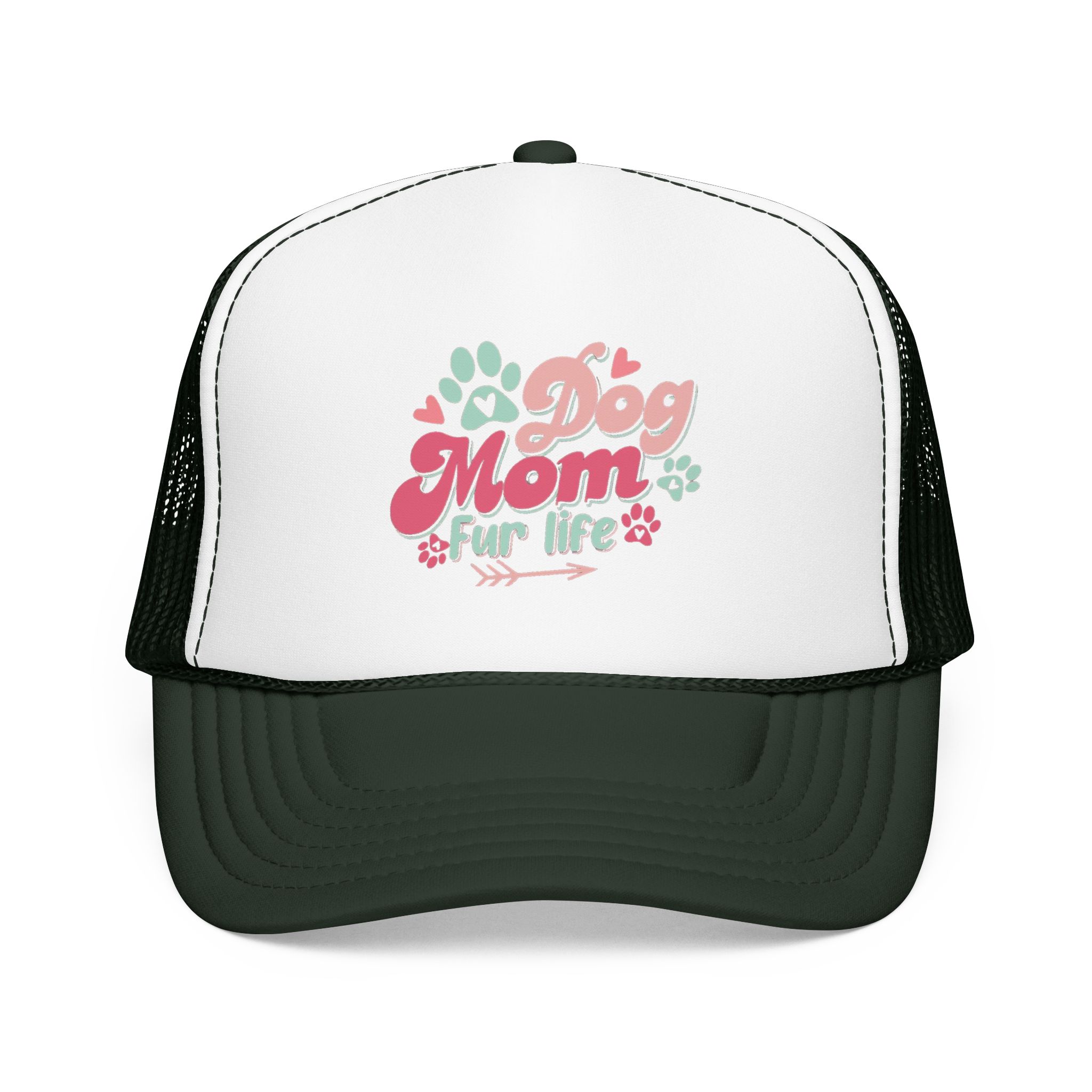 This foam trucker hat brings warm, playful energy to everyday wear. Soft pastel lettering and paw-print accents read “Dog Mom” with a subtle “fur life” tagline, lending a lighthearted, affectionate feel. The high-profile, seamless foam front showcases the design clearly, while the black mesh back keeps you cool. Wear it on morning dog walks, at the dog park, or running errands to show quiet devotion to your pup with a fun, feminine touch. The structured brim and thicker fabric give it a substantial, lasting look that holds up through seasons and outings.