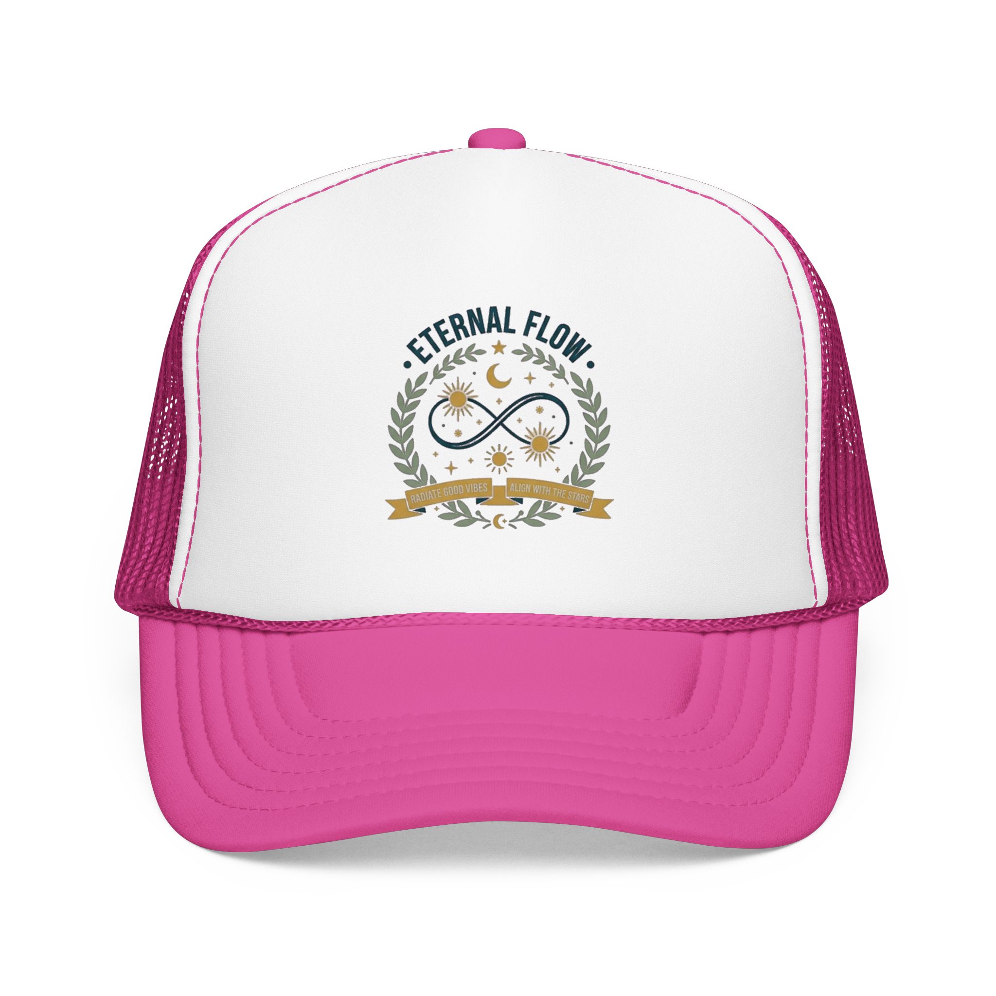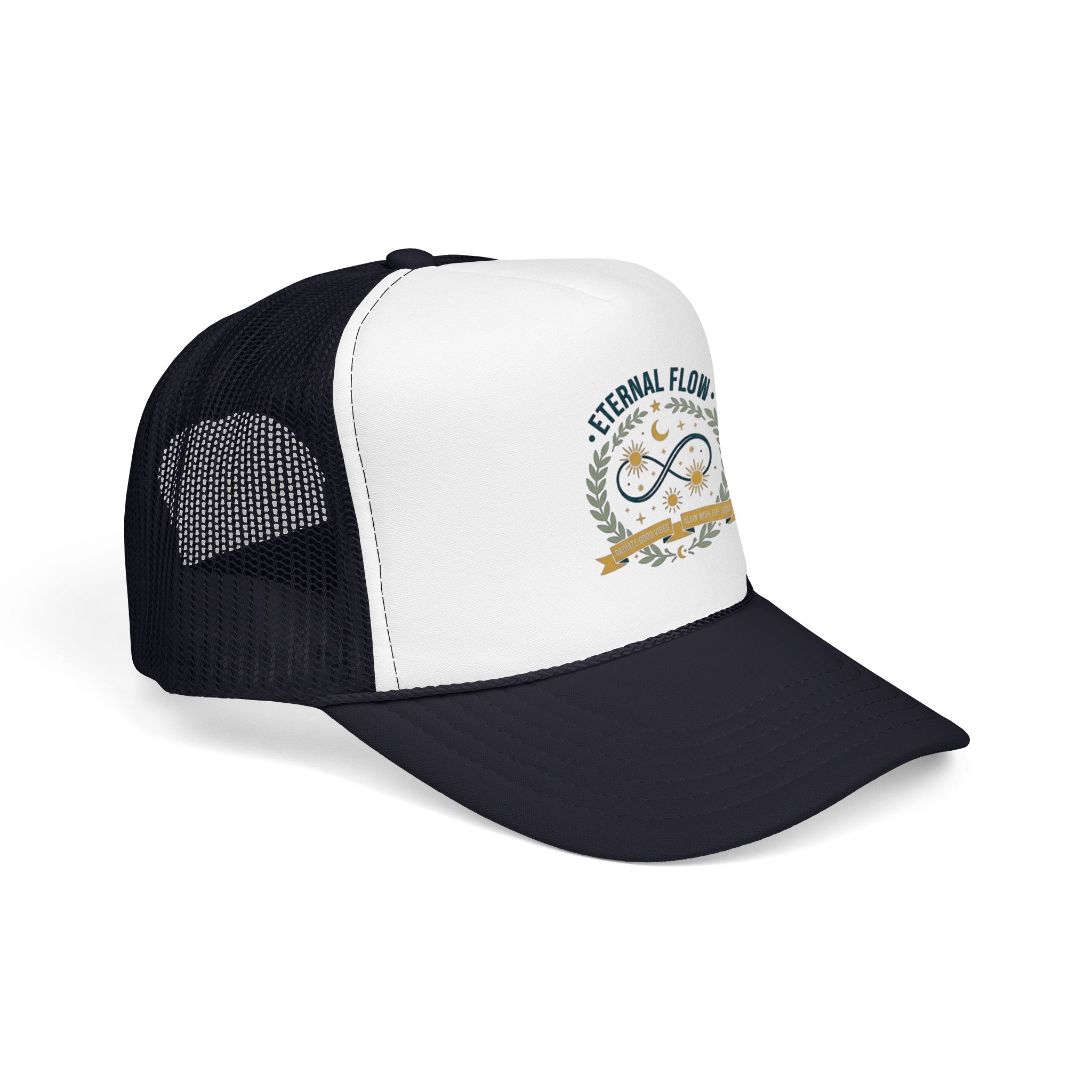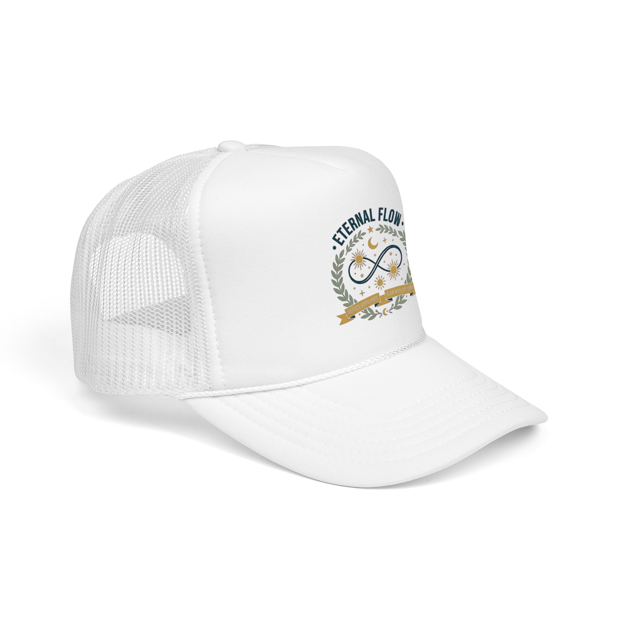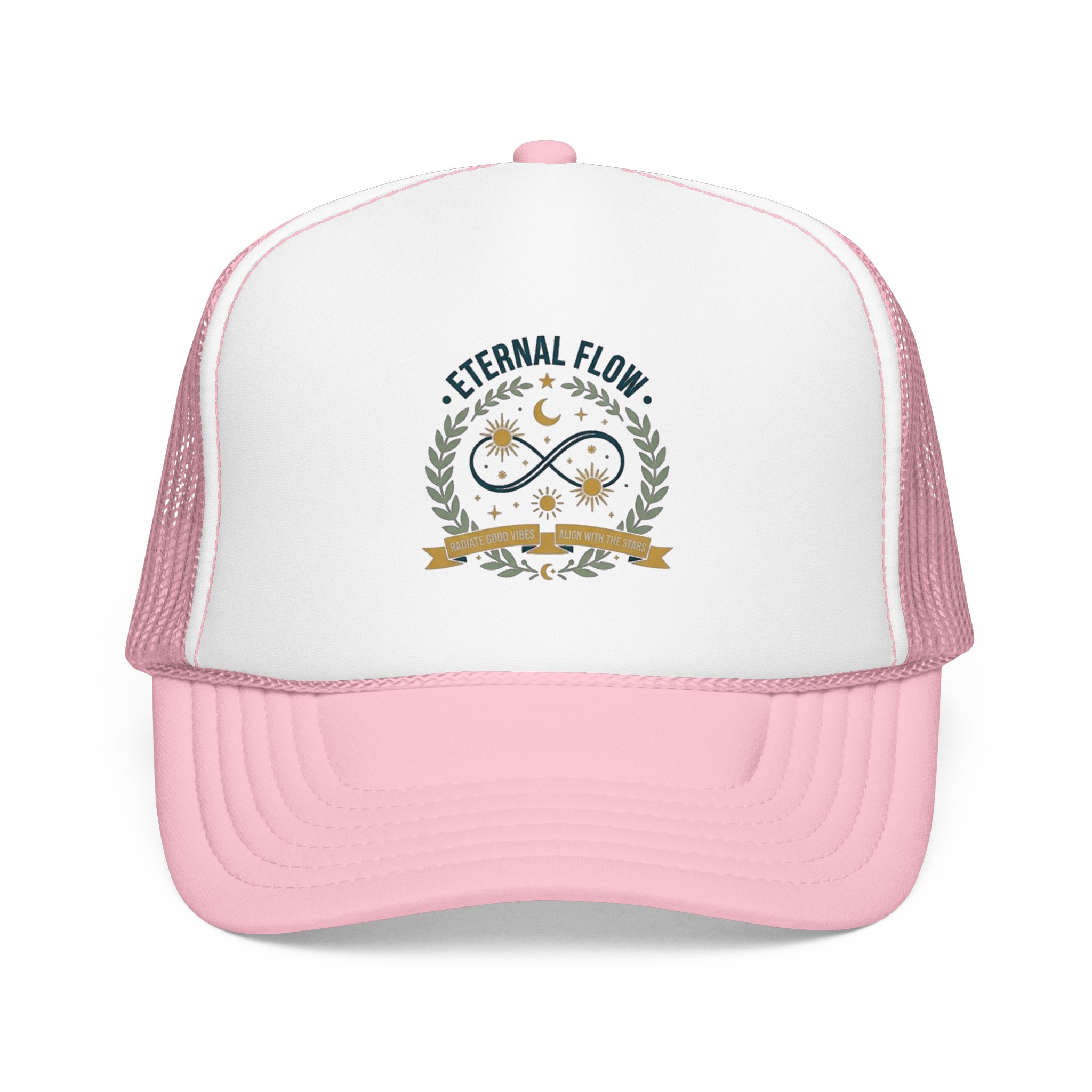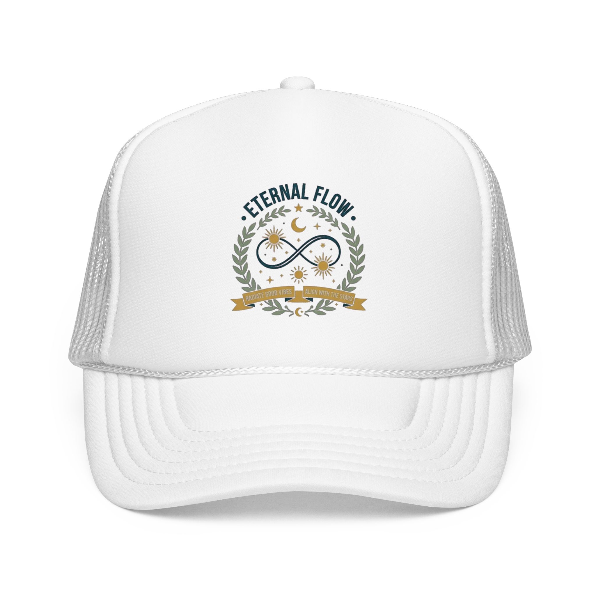 Eternal Flow infinity emblem Foam Trucker Hat | celestial moon stars wreath
