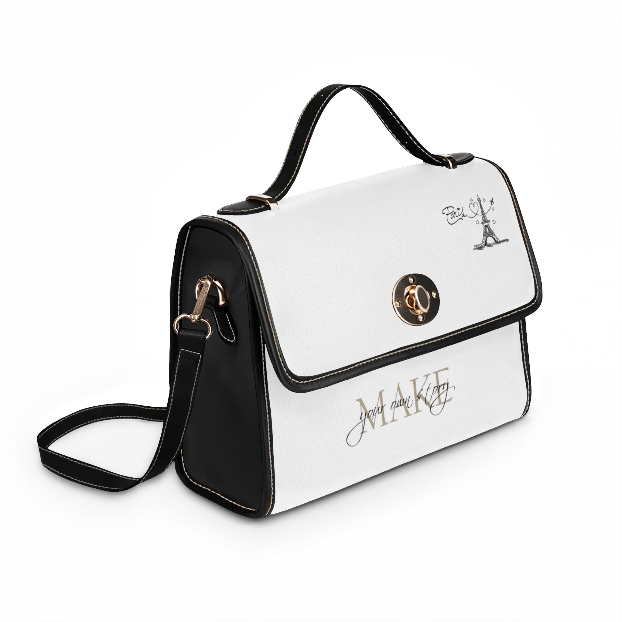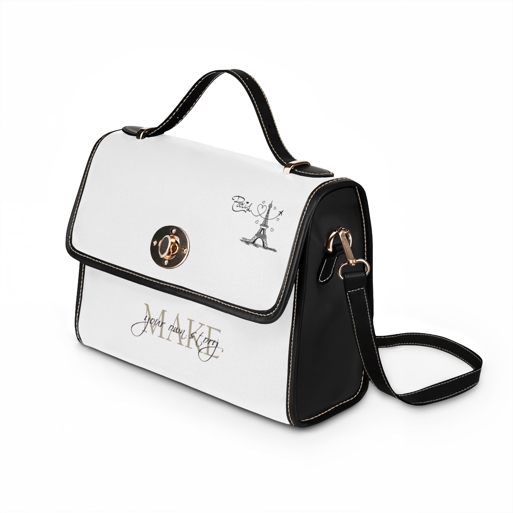 A structured, waterproof canvas bag designed for everyday life with a refined, modern edge. Lightweight yet durable, it resists rain and spills so your essentials stay dry while you move through the city or the countryside. Clean lines, contrasting trim, and a secure twist-lock flap give it a polished feel — reach for it when you need reliable protection without sacrificing style. Inside, two pockets (one zippered) keep small items organized, while the removable PU leather shoulder strap and double leather handles let you switch between handheld and crossbody carrying in seconds. This bag sits comfortably at your side during morning commutes, weekend markets, or travel days, adding quiet confidence to practical routines.