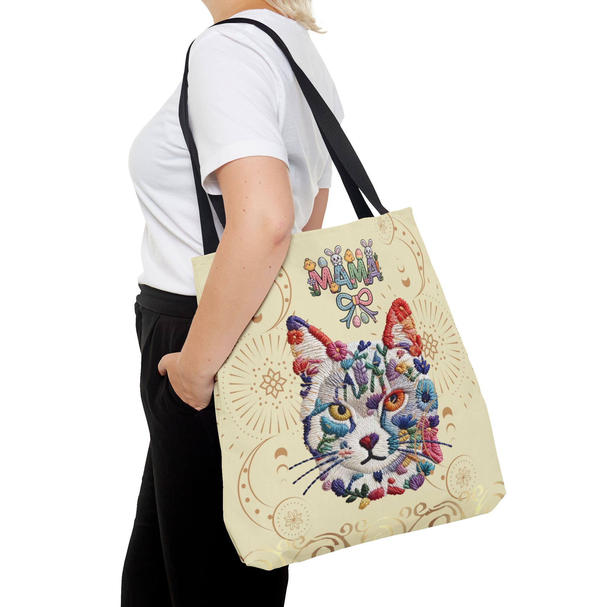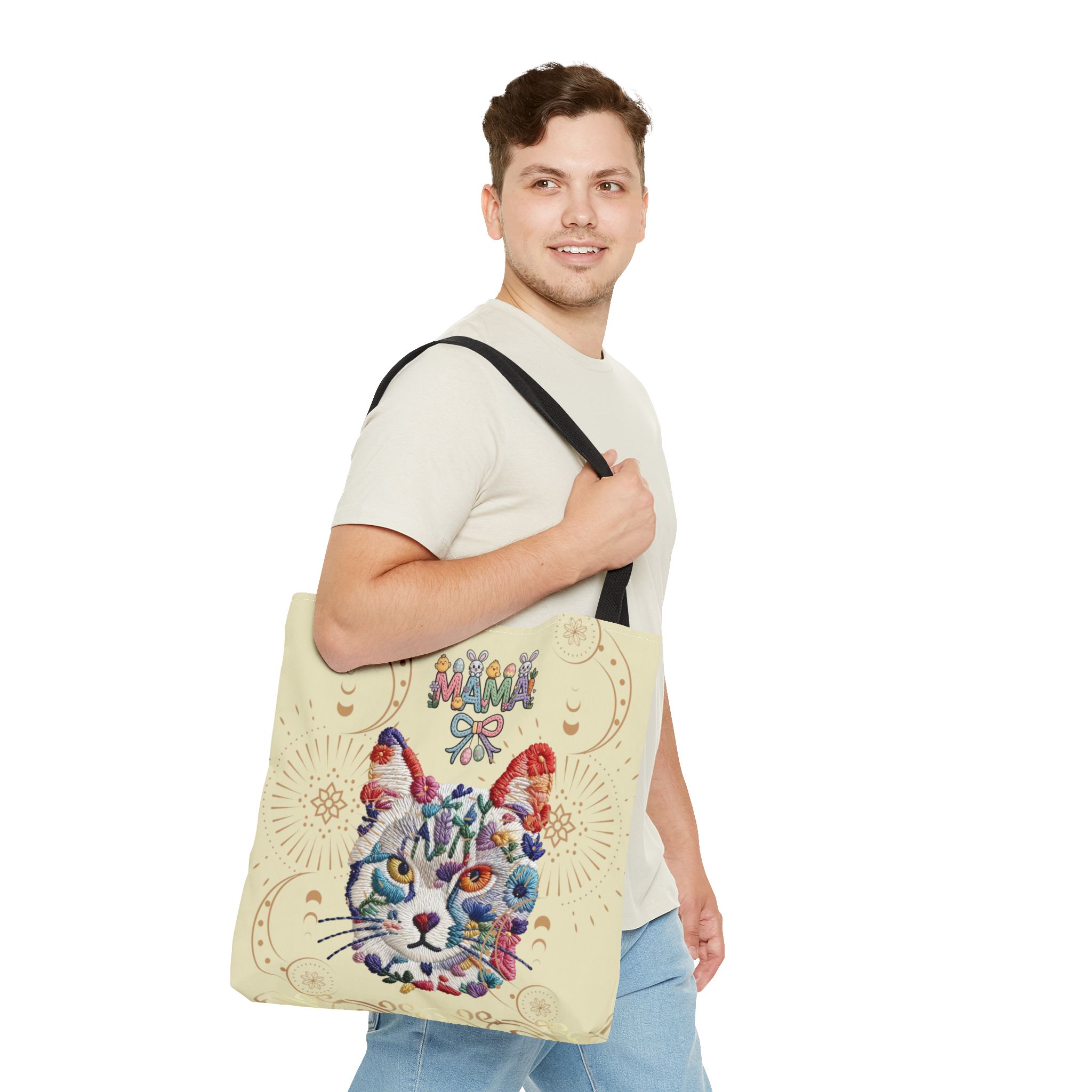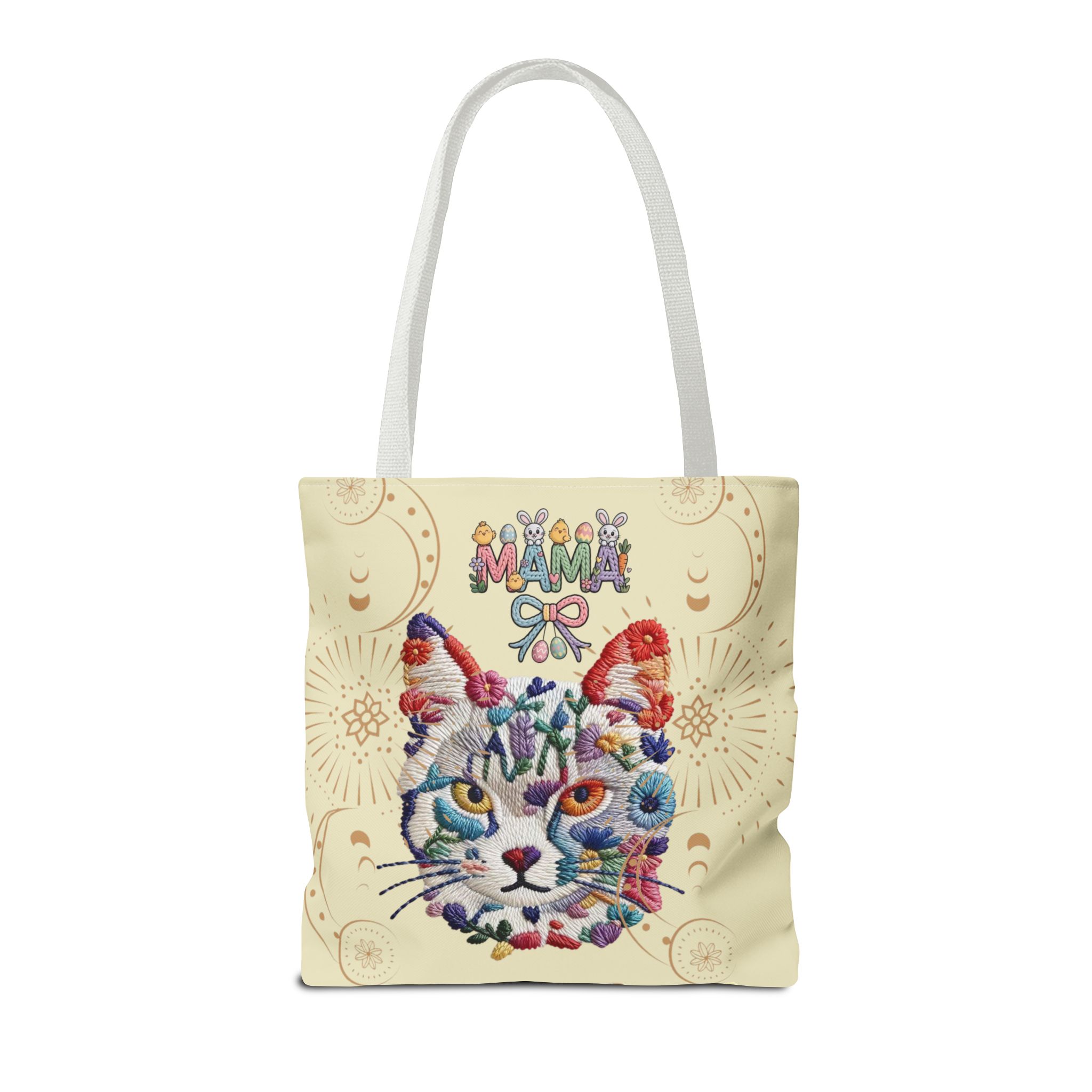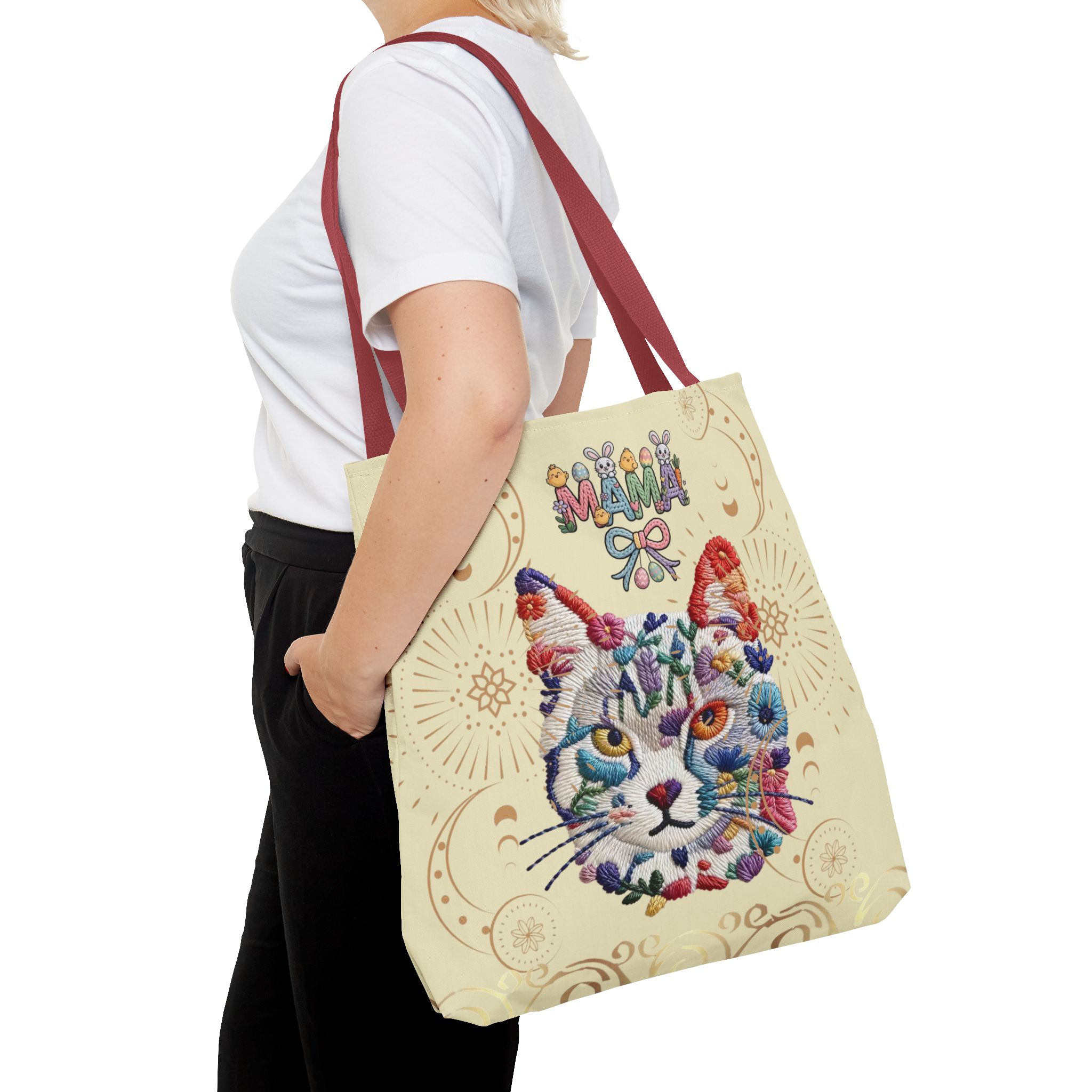 Floral Cat Face mama Tote Bag | Colorful Embroidered Style Animal Print