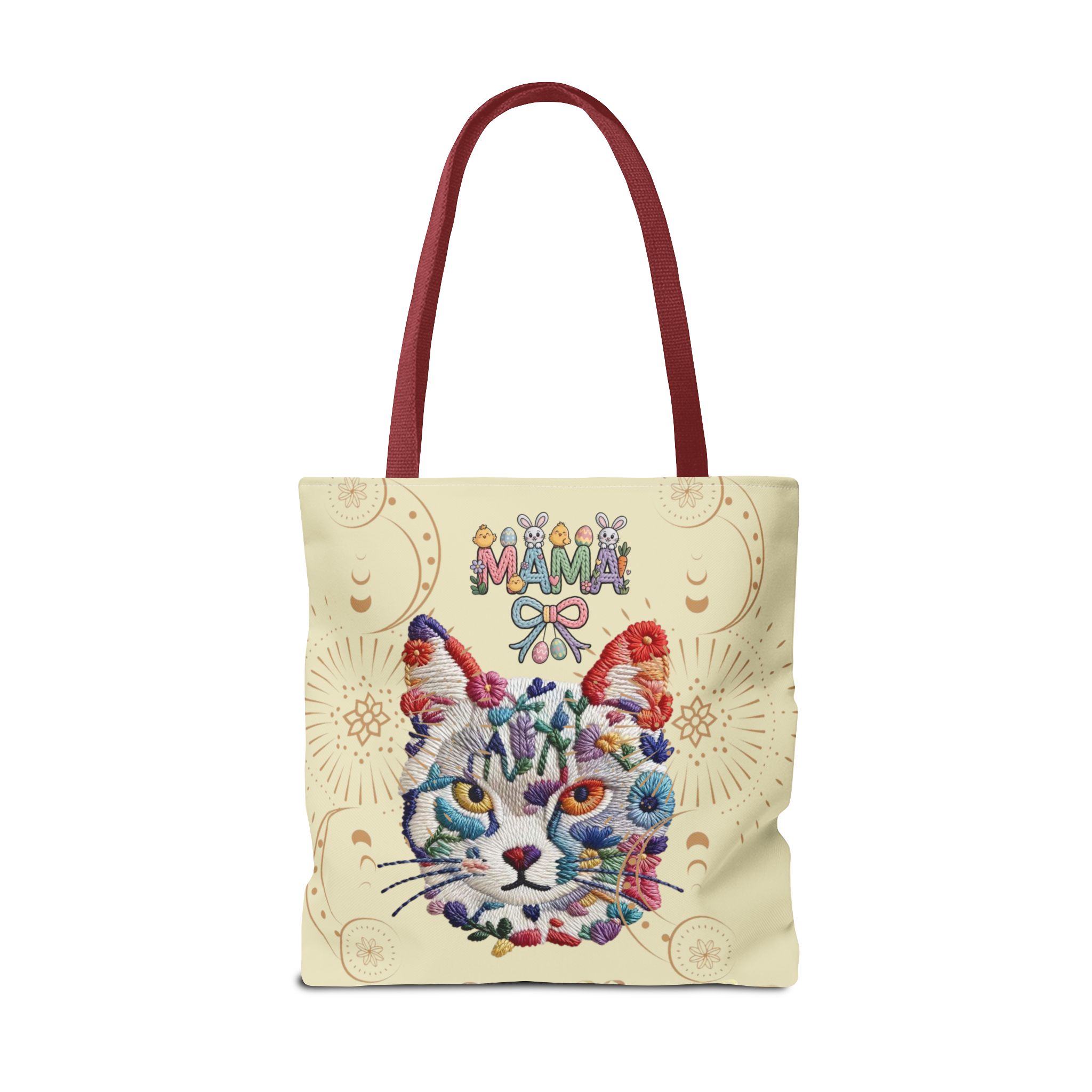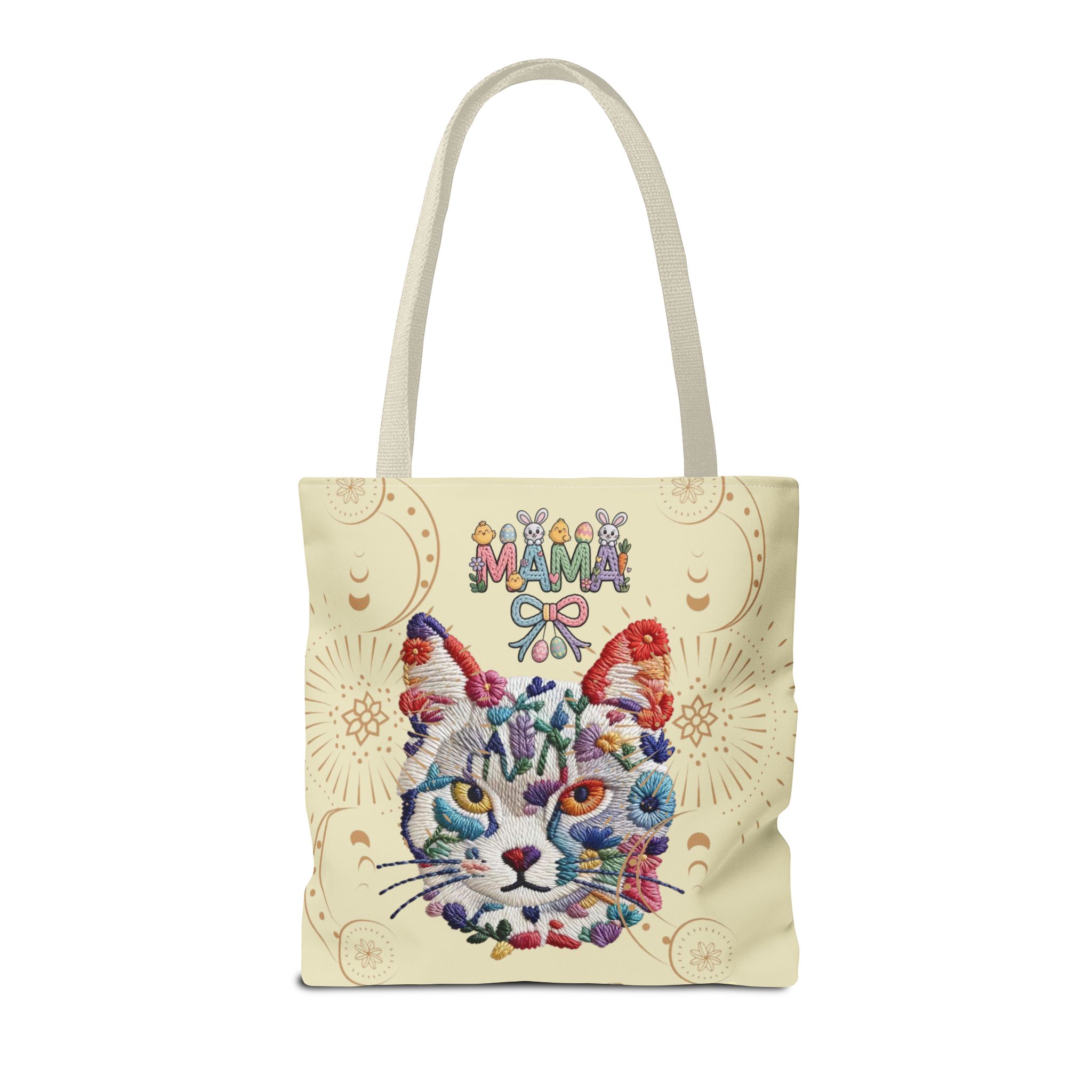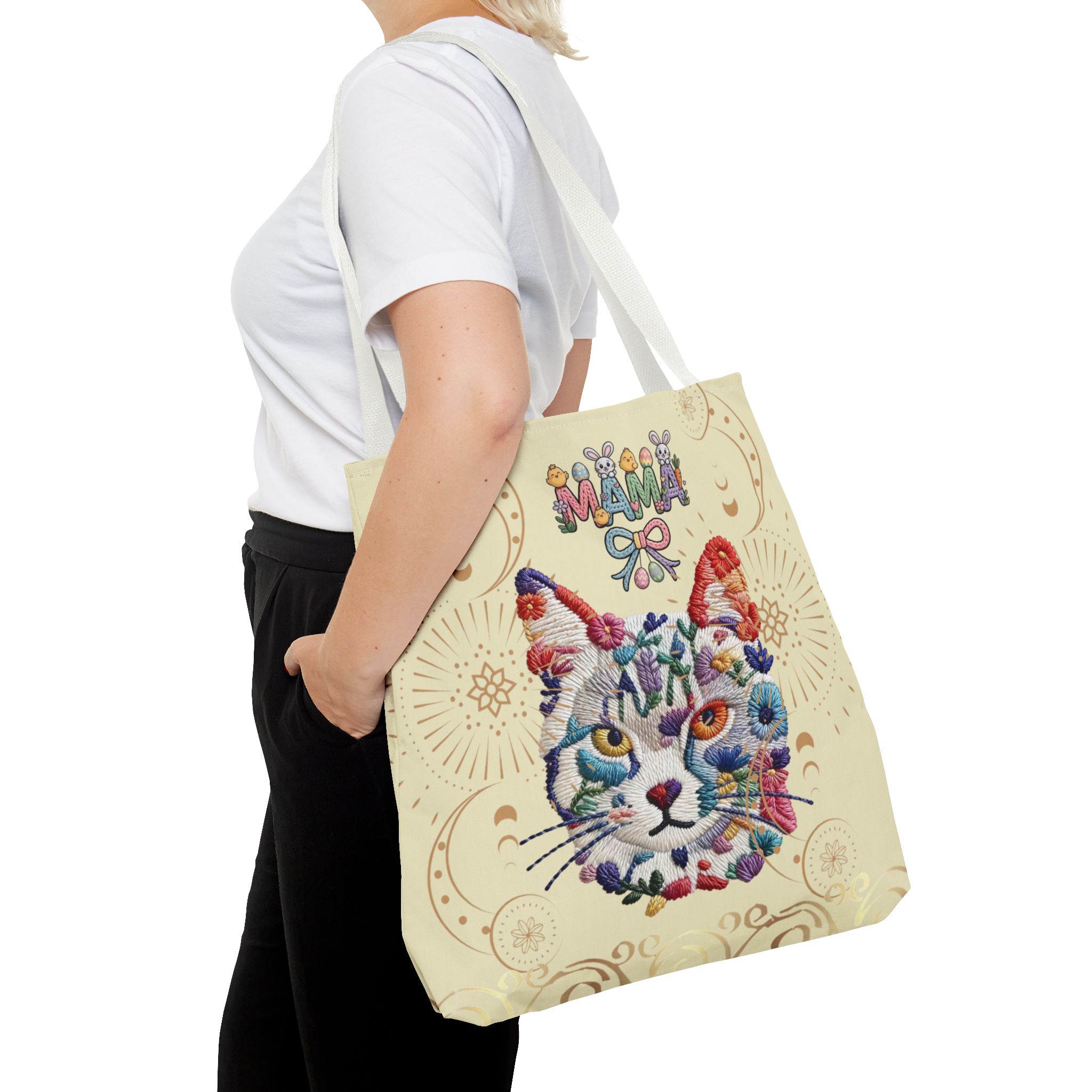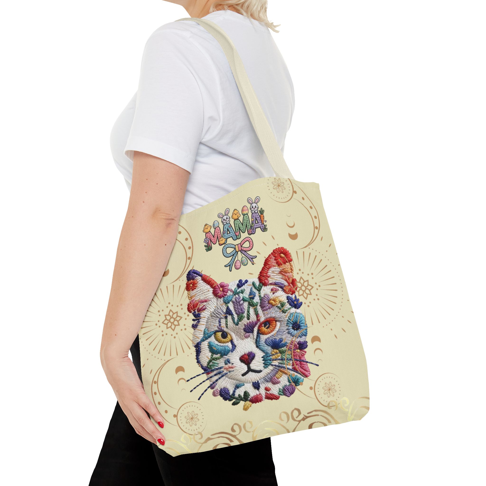 Floral Cat Face mama Tote Bag | Colorful Embroidered Style Animal Print
