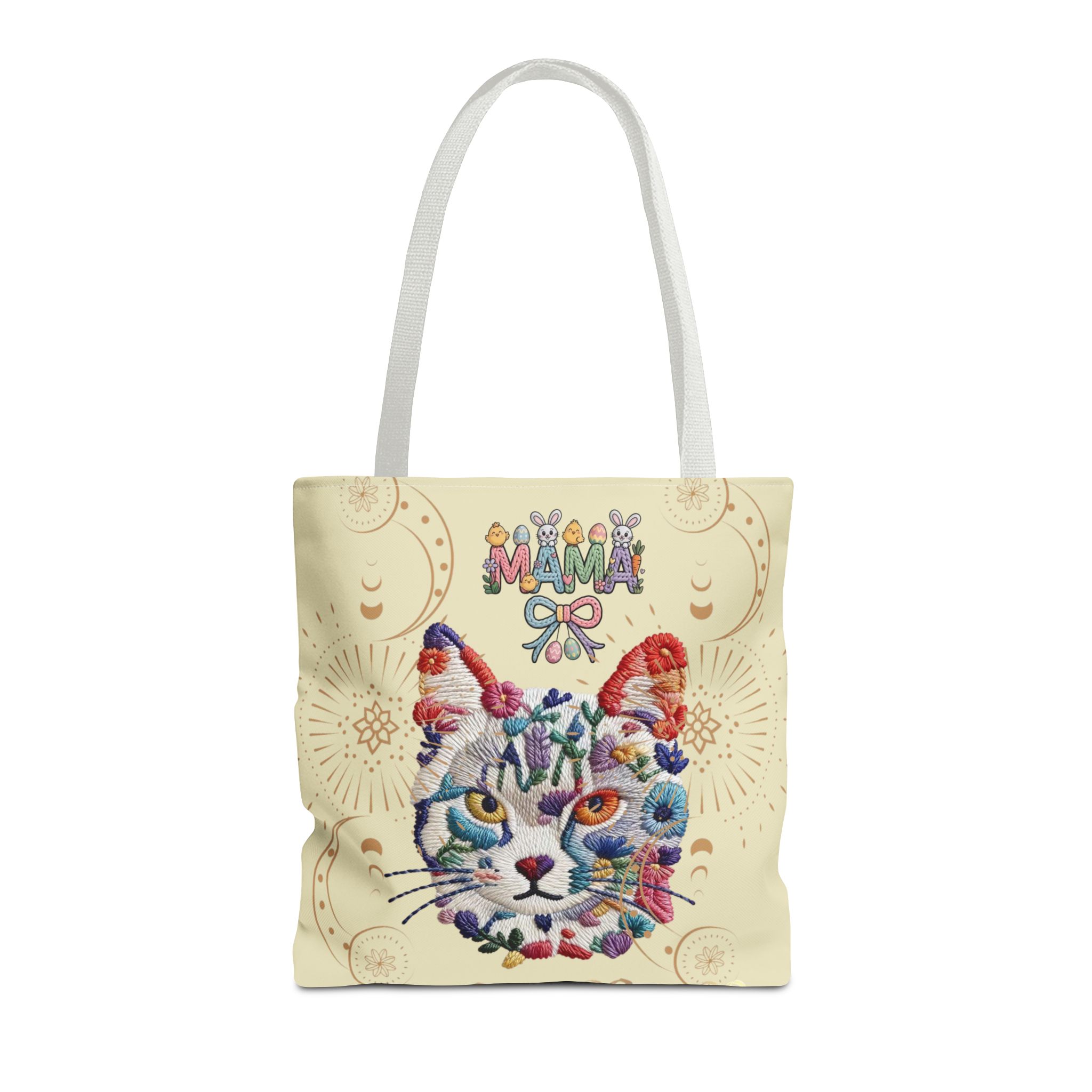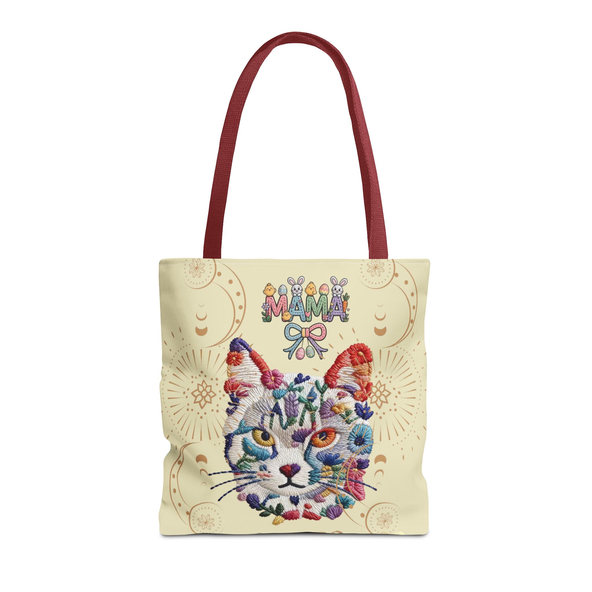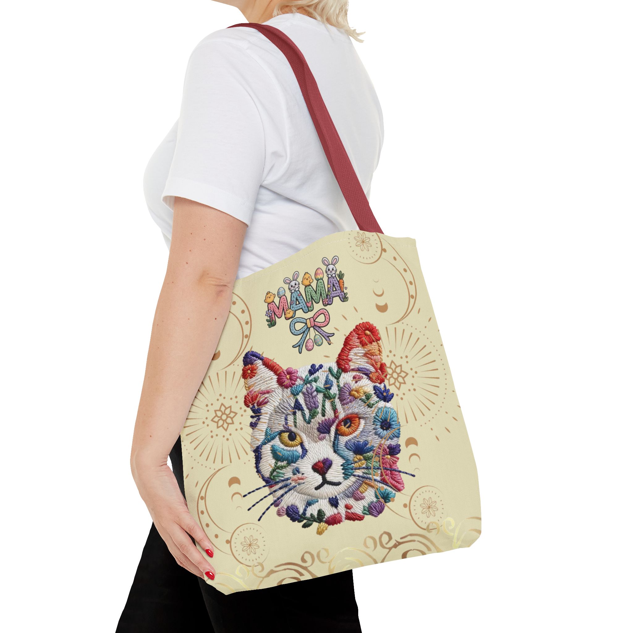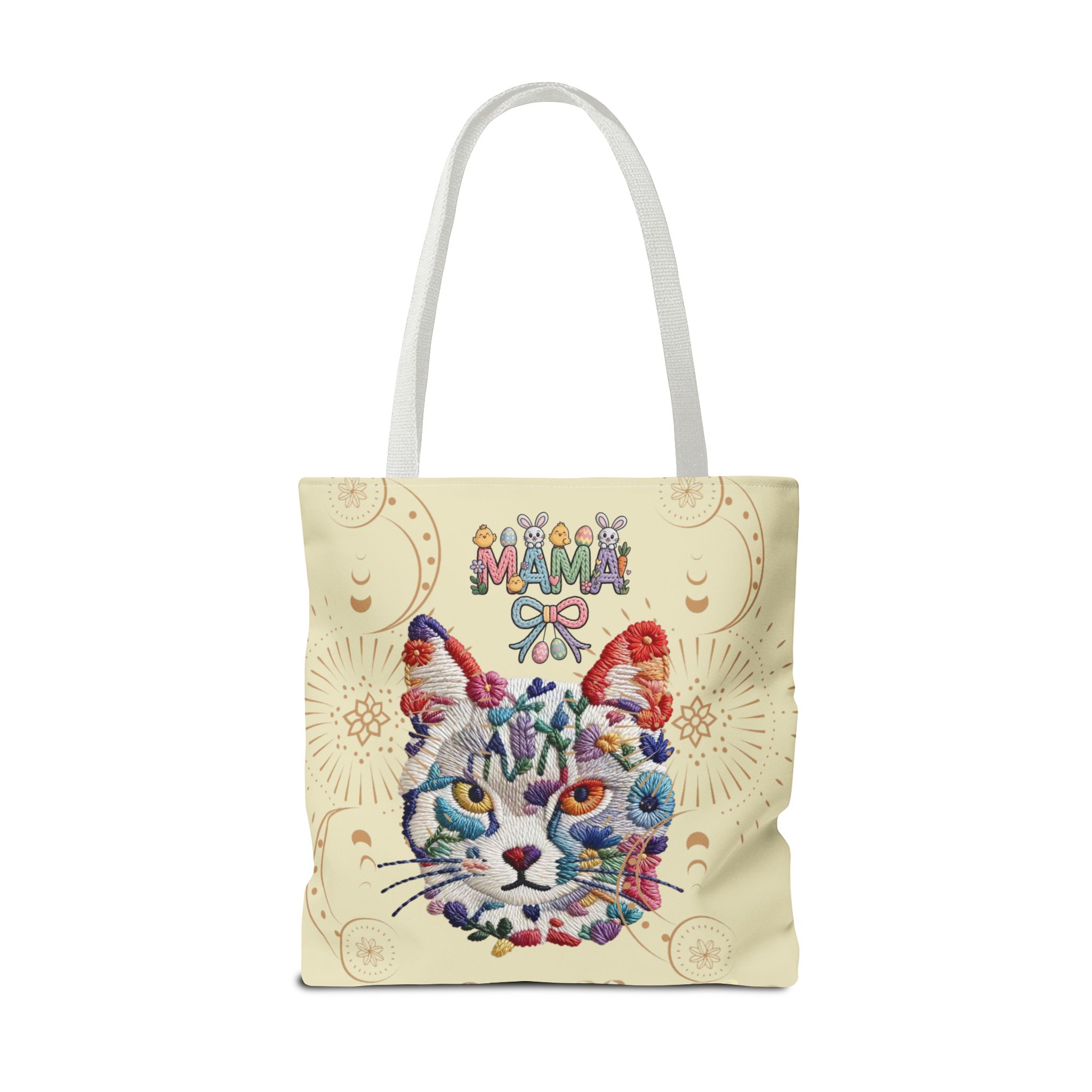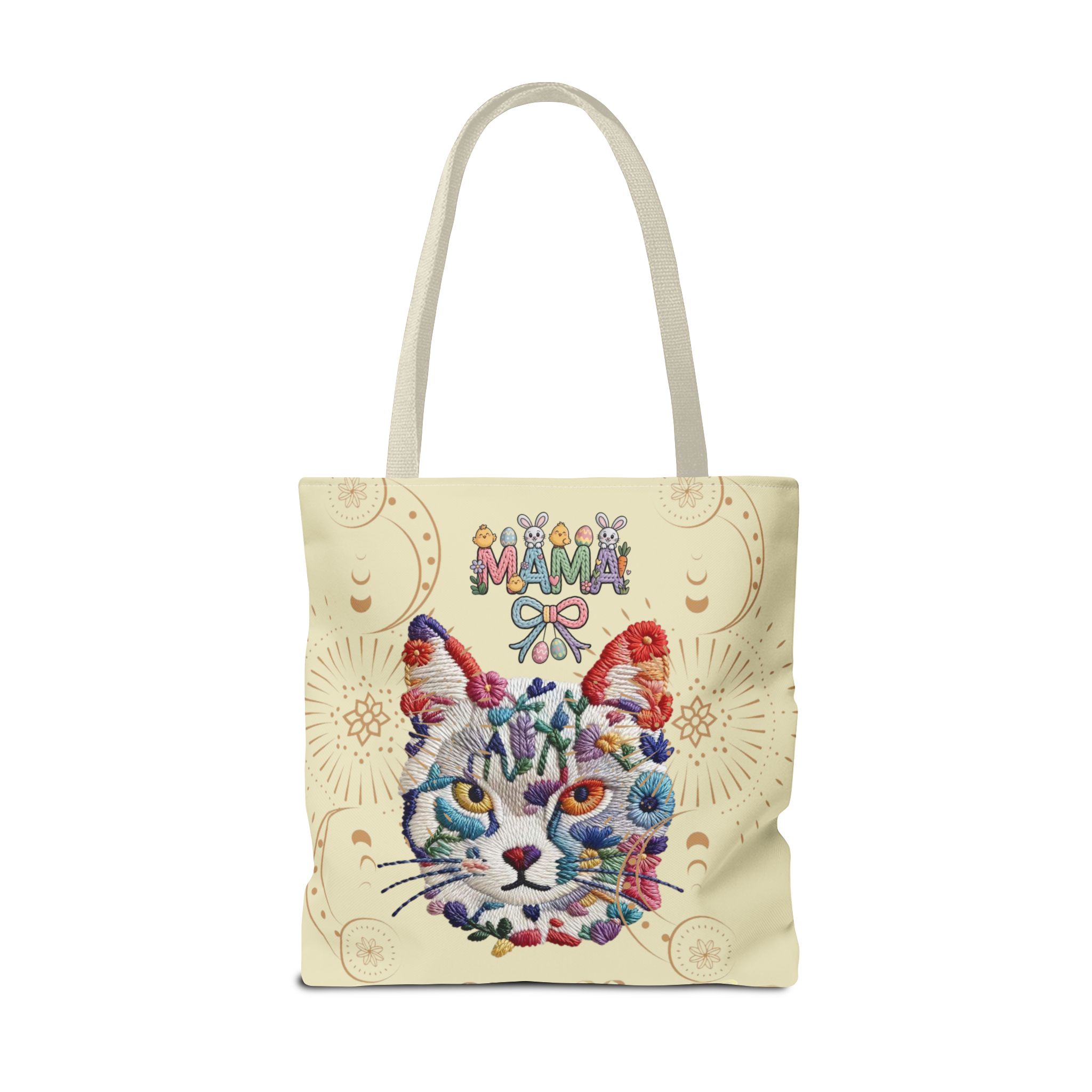 Floral Cat Face mama Tote Bag | Colorful Embroidered Style Animal Print