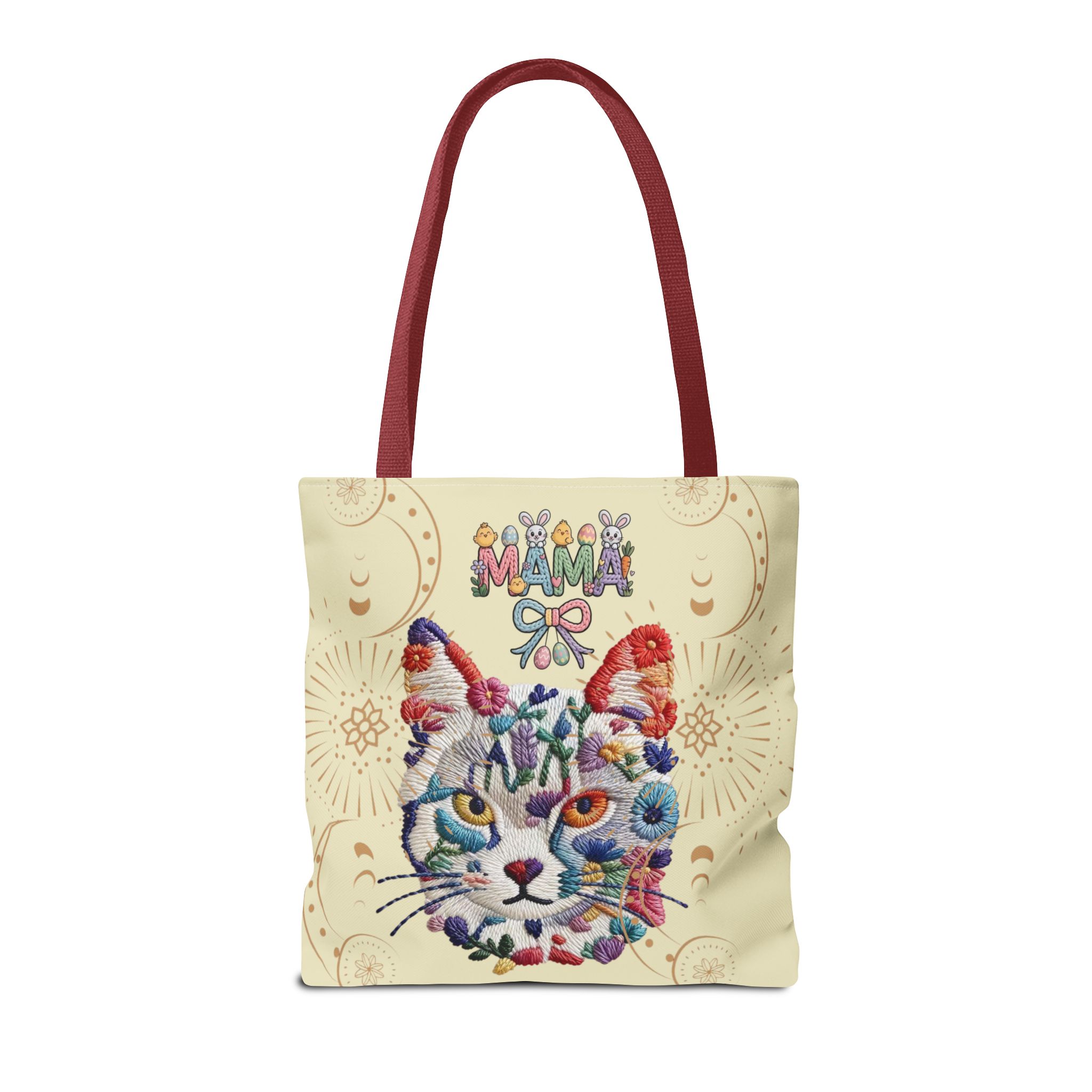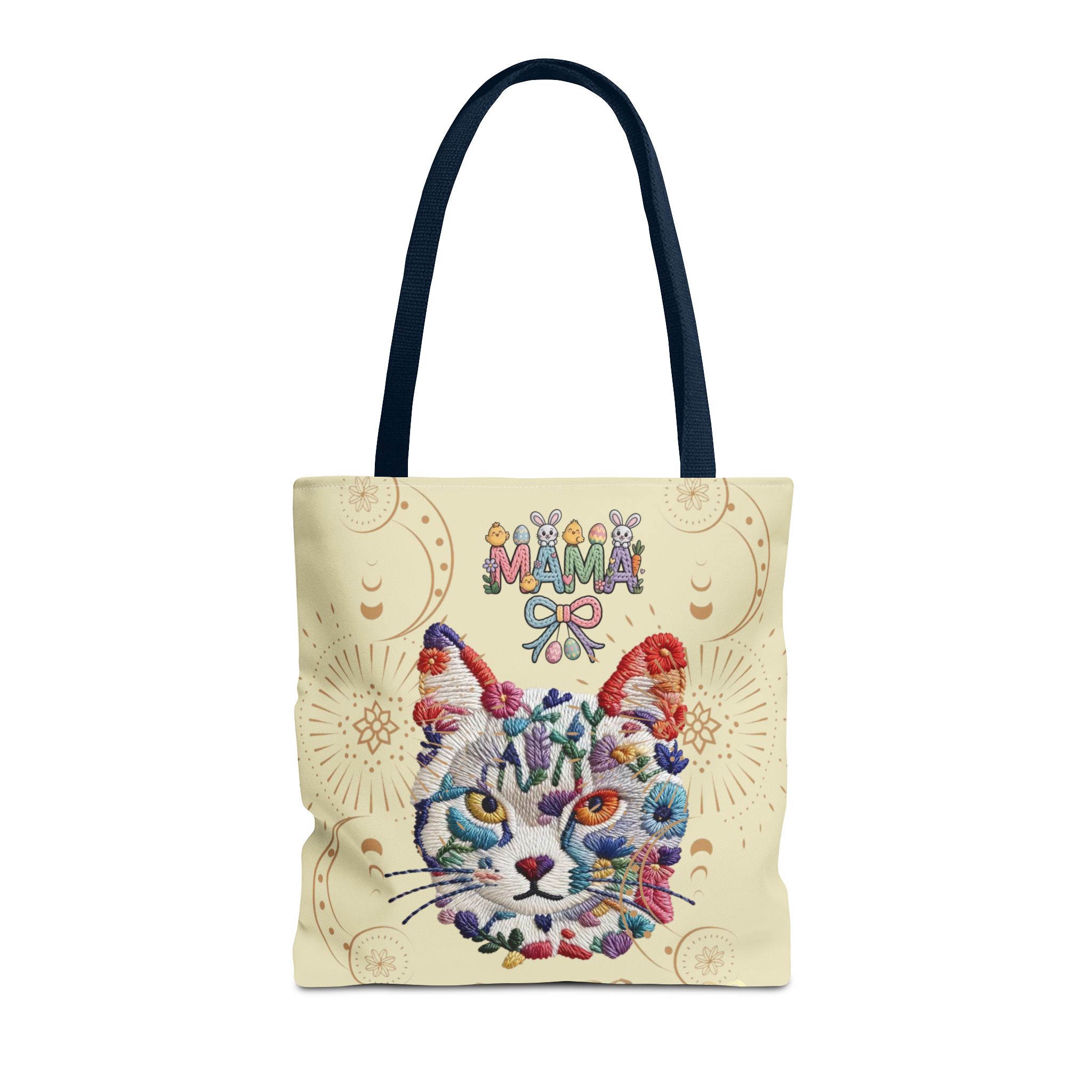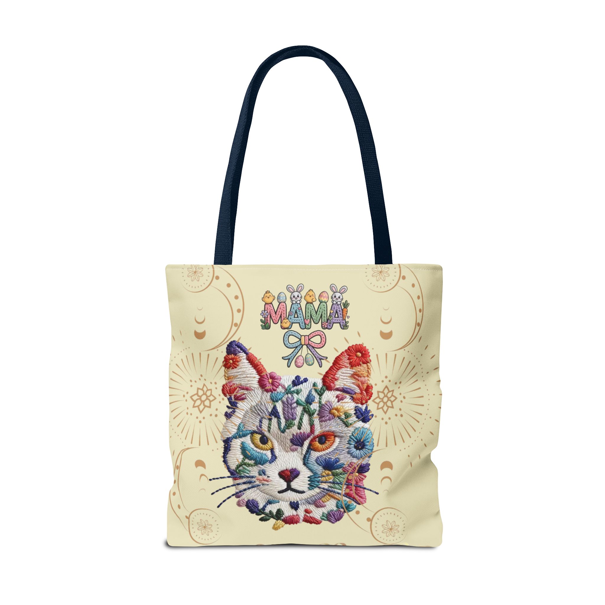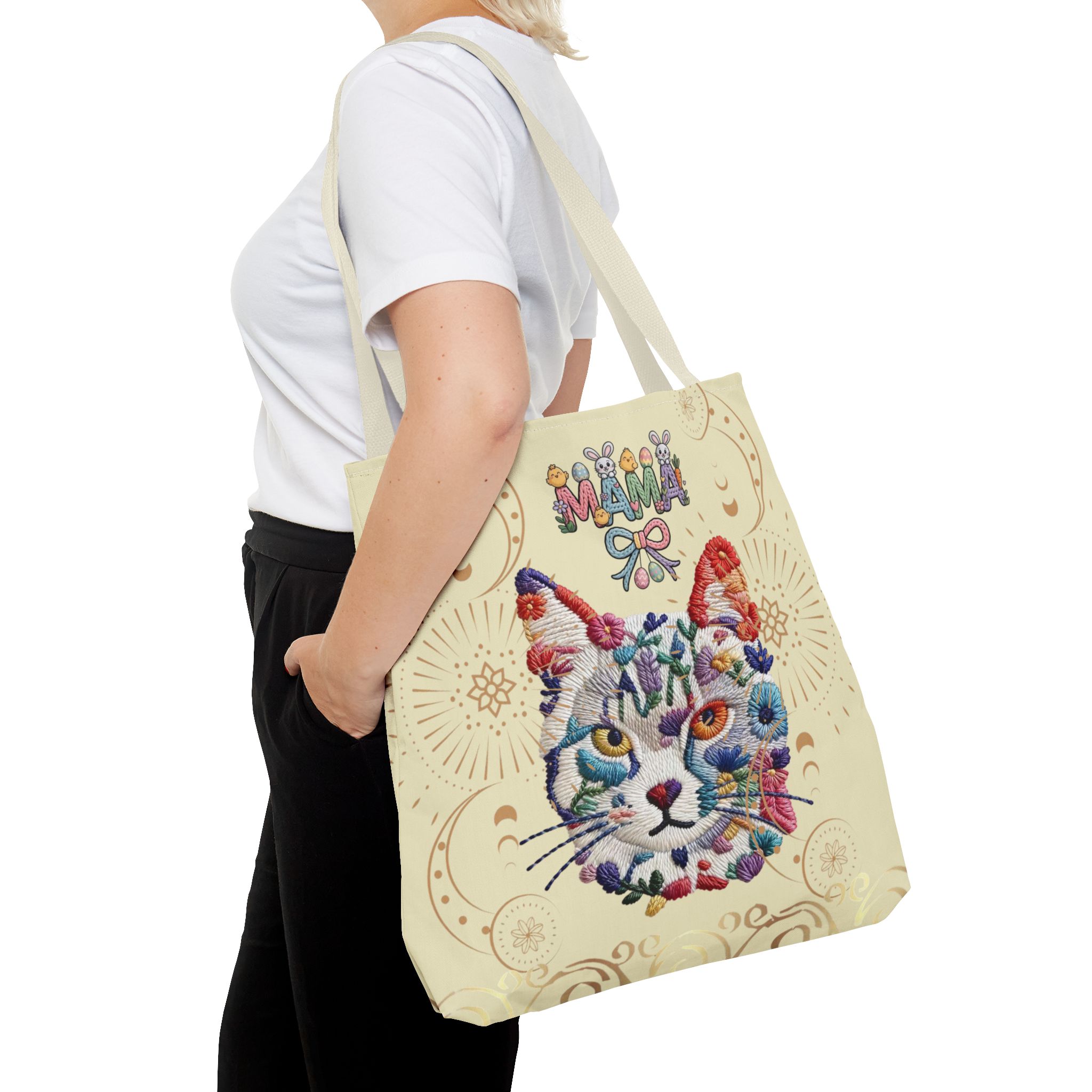 Floral Cat Face mama Tote Bag | Colorful Embroidered Style Animal Print