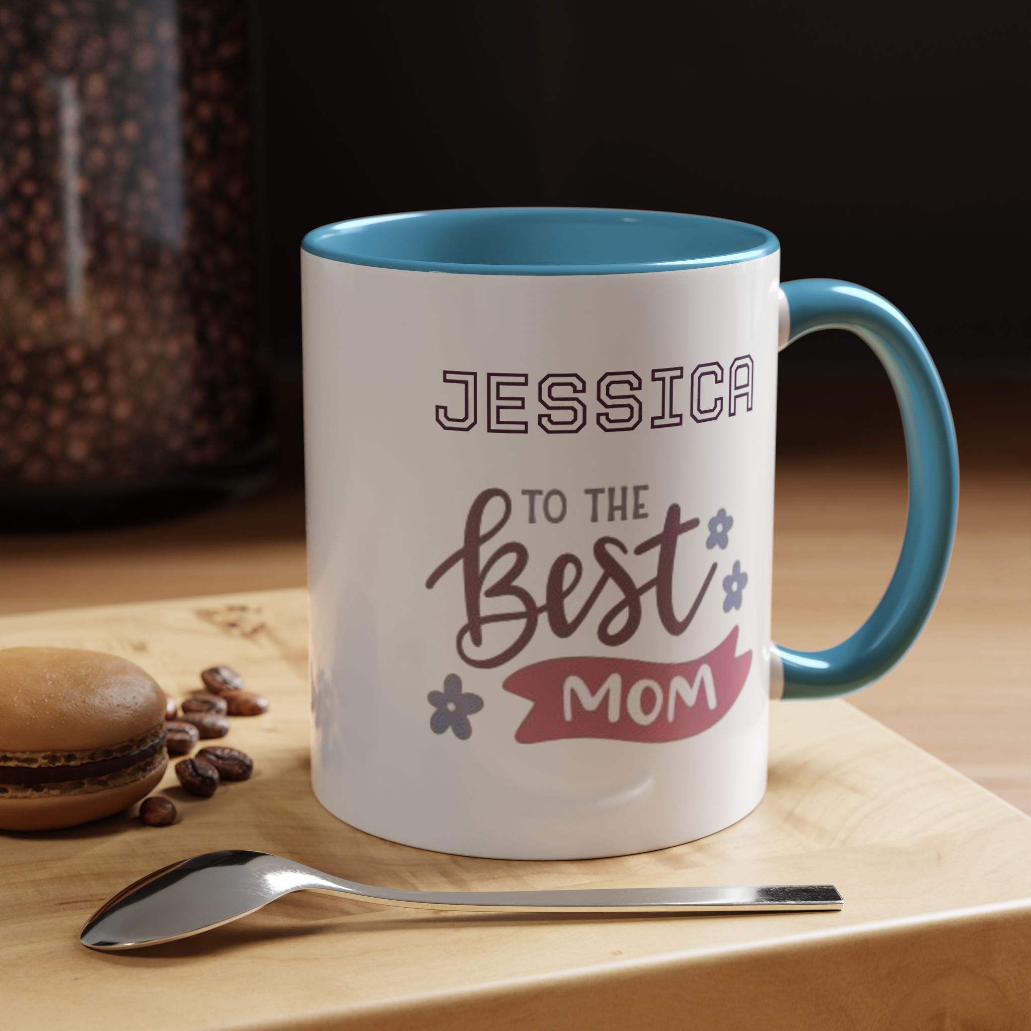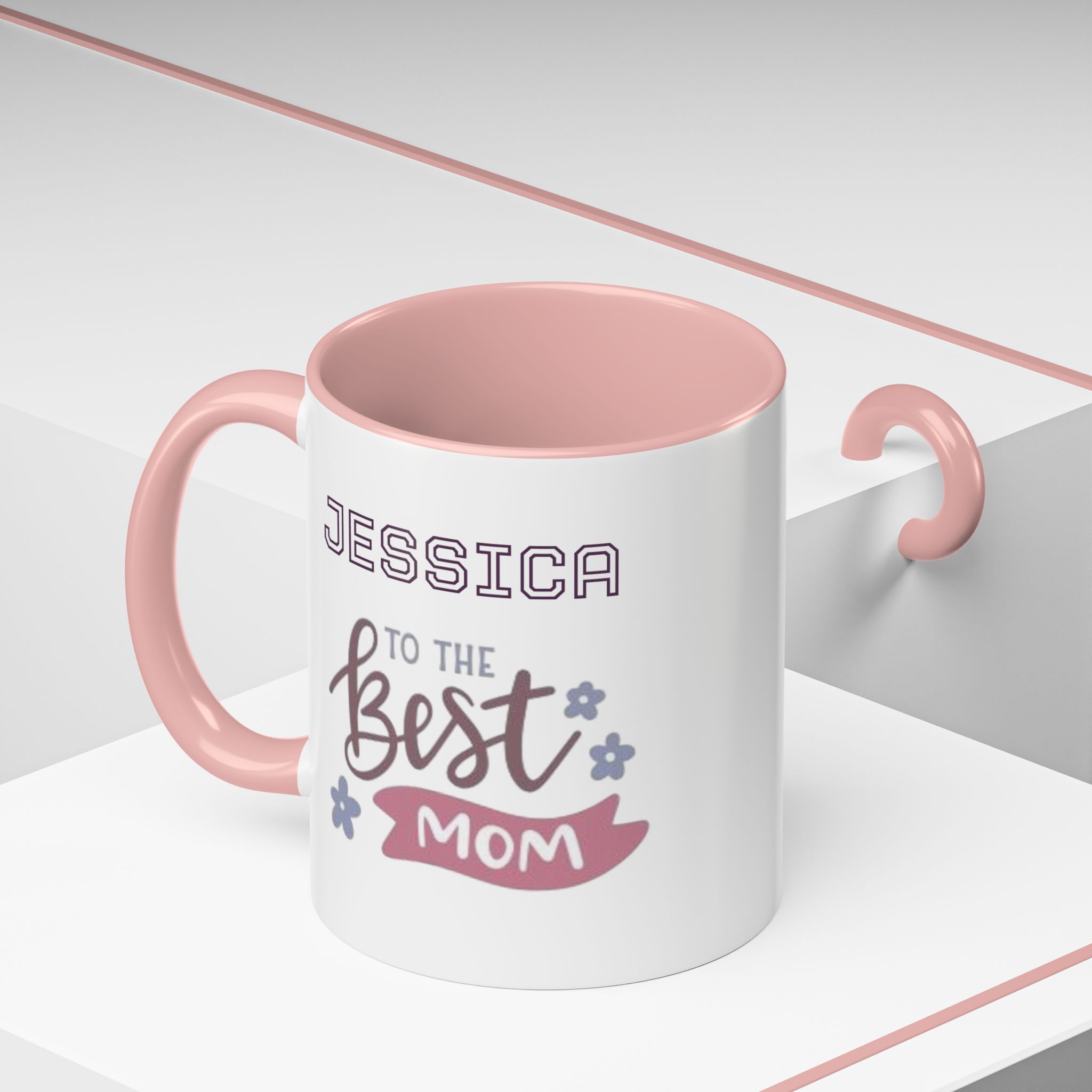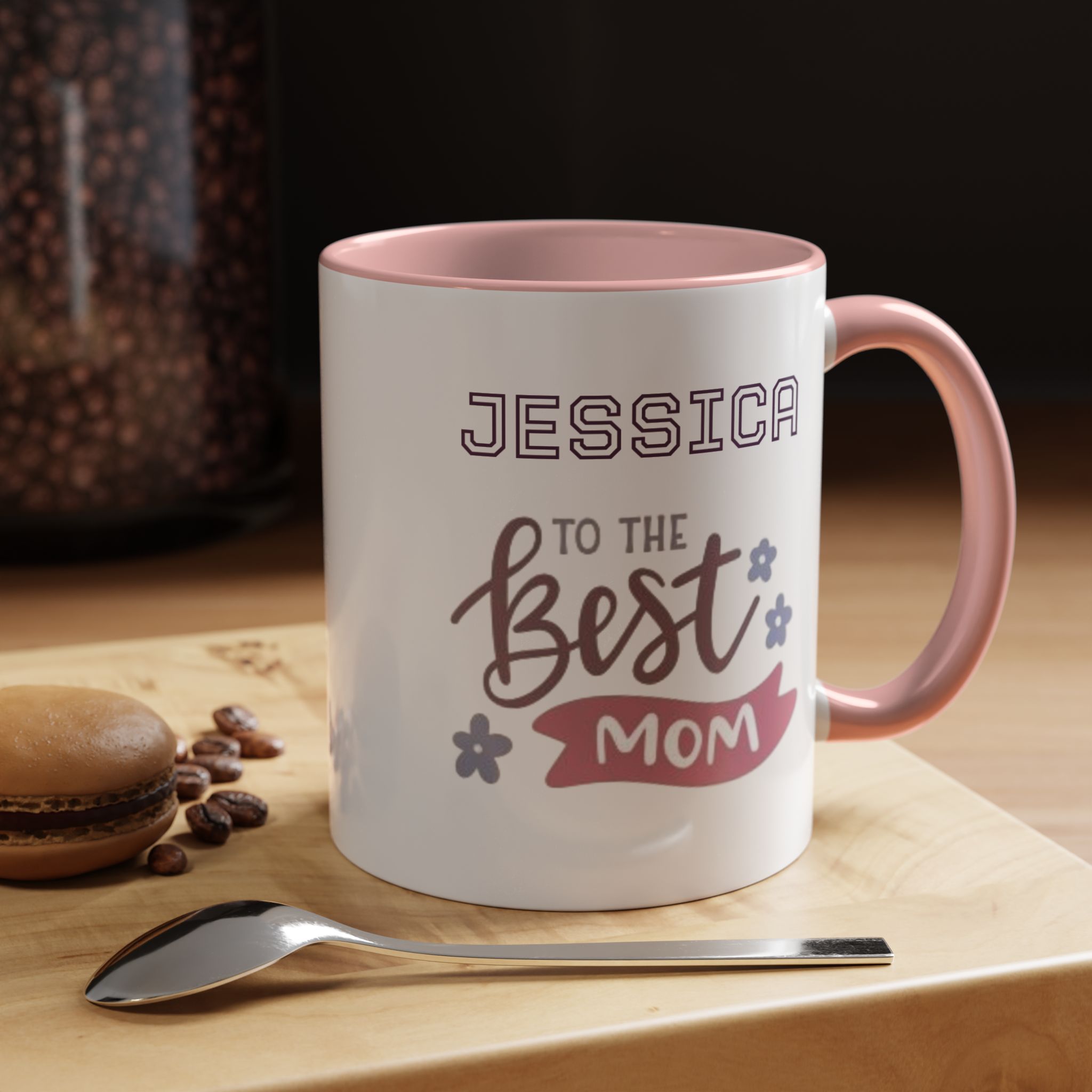 Gift for Mom Ceramic Mug | Cute Coffee Cup Illustration, Pink & Blue Accent