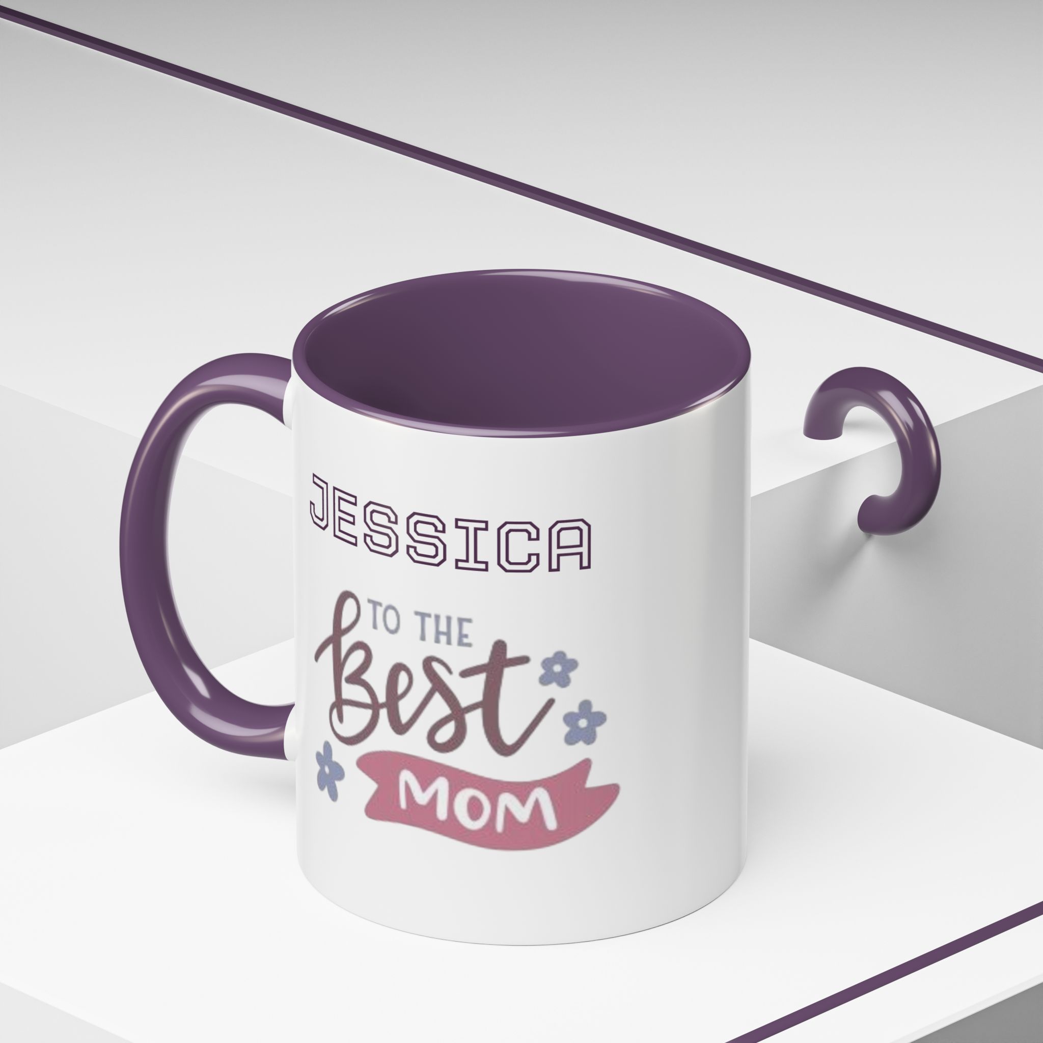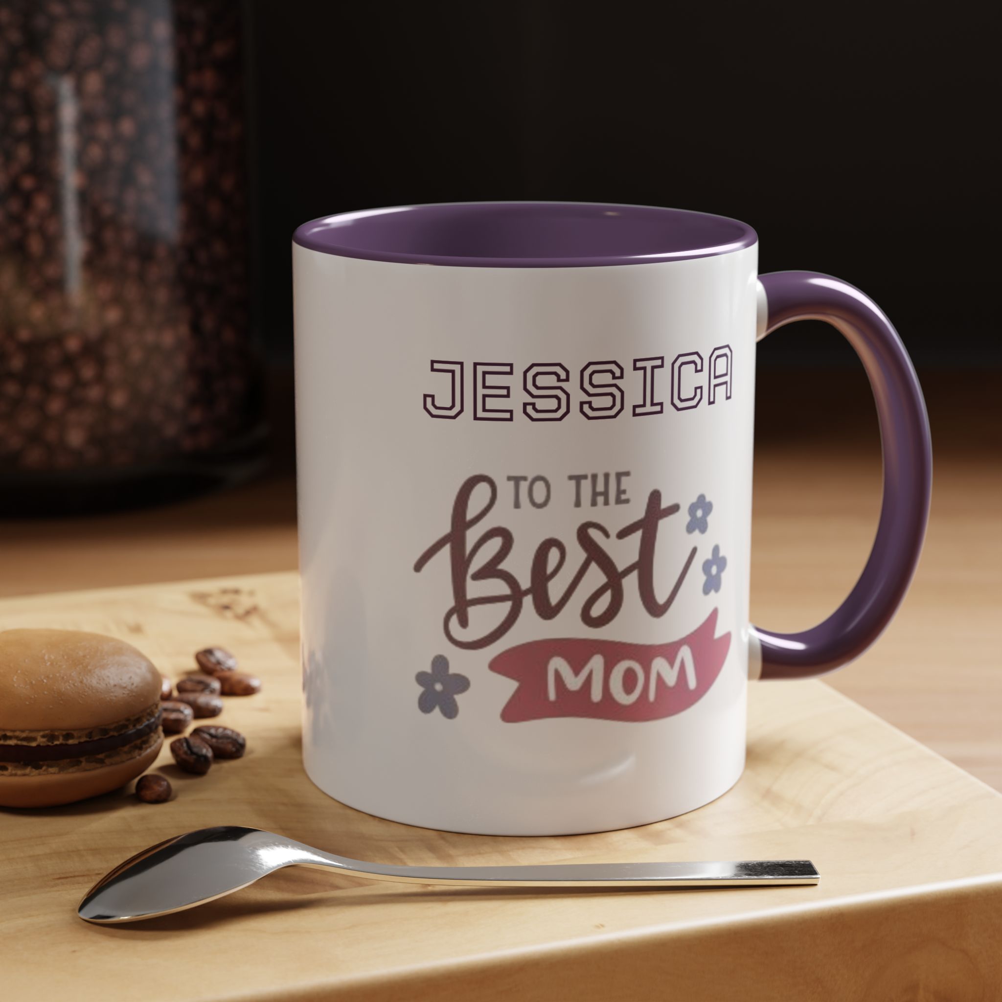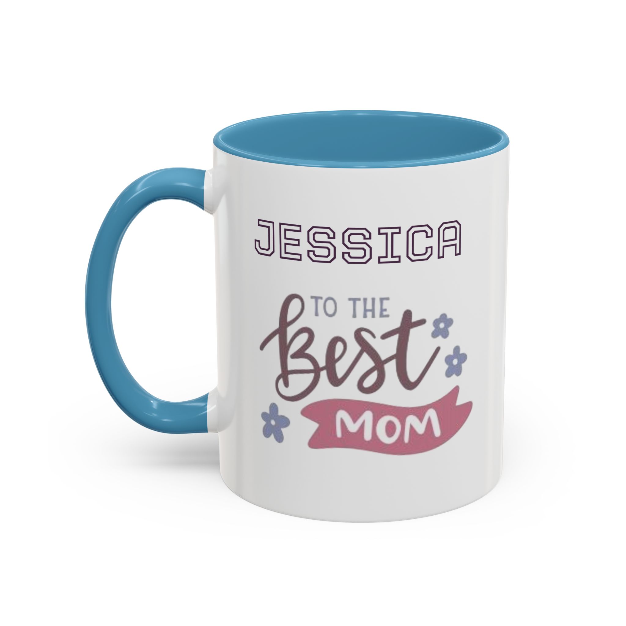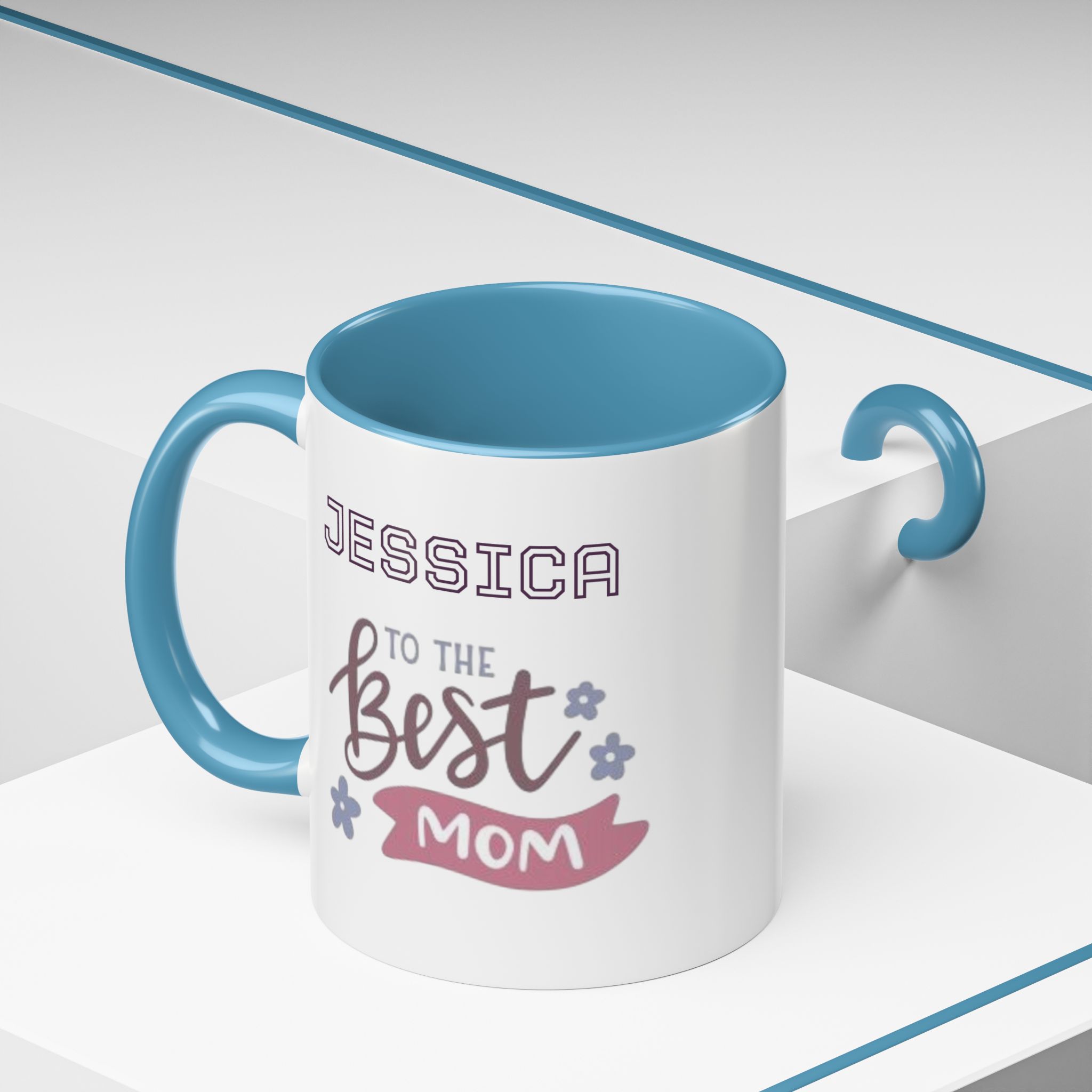 Gift for Mom Ceramic Mug | Cute Coffee Cup Illustration, Pink & Blue Accent