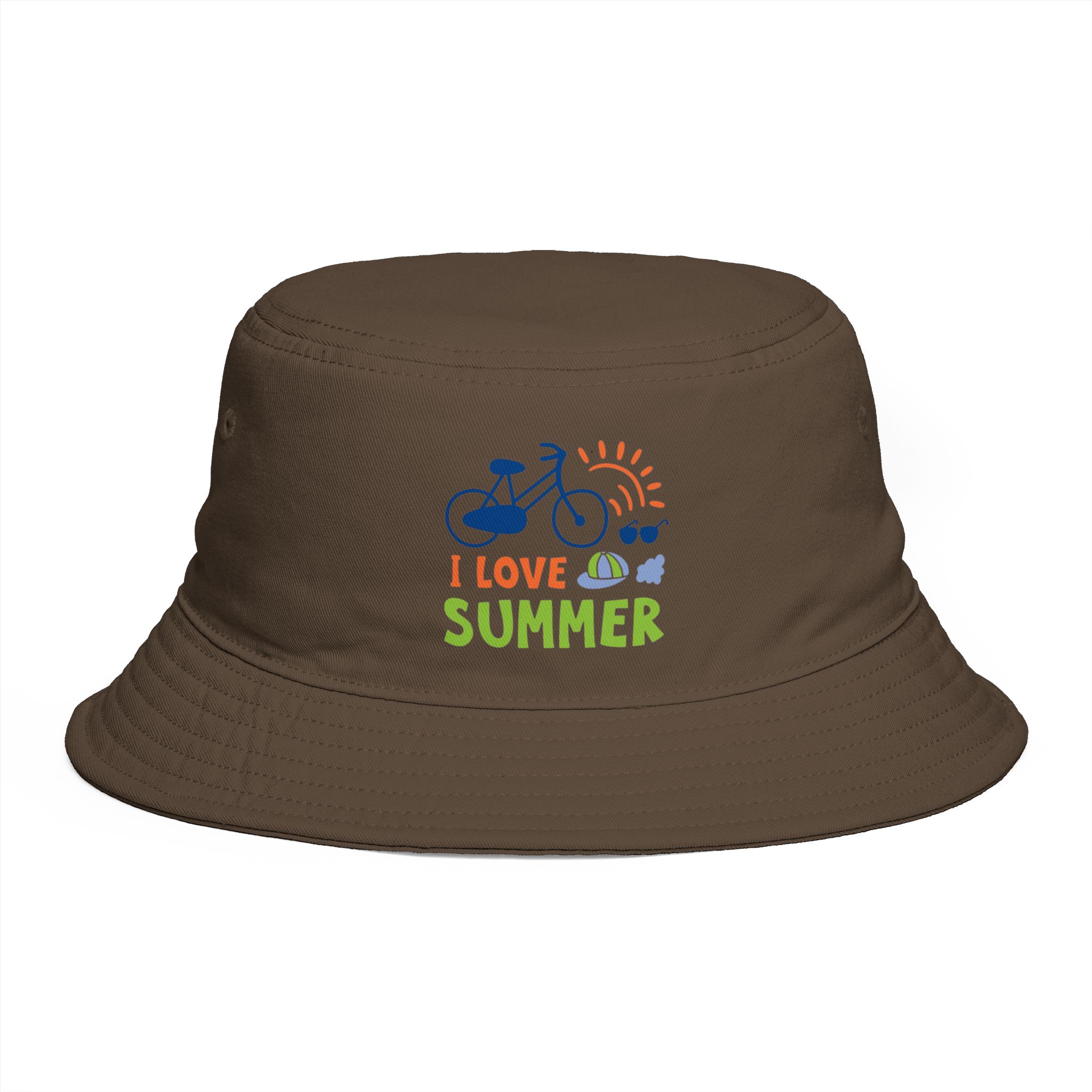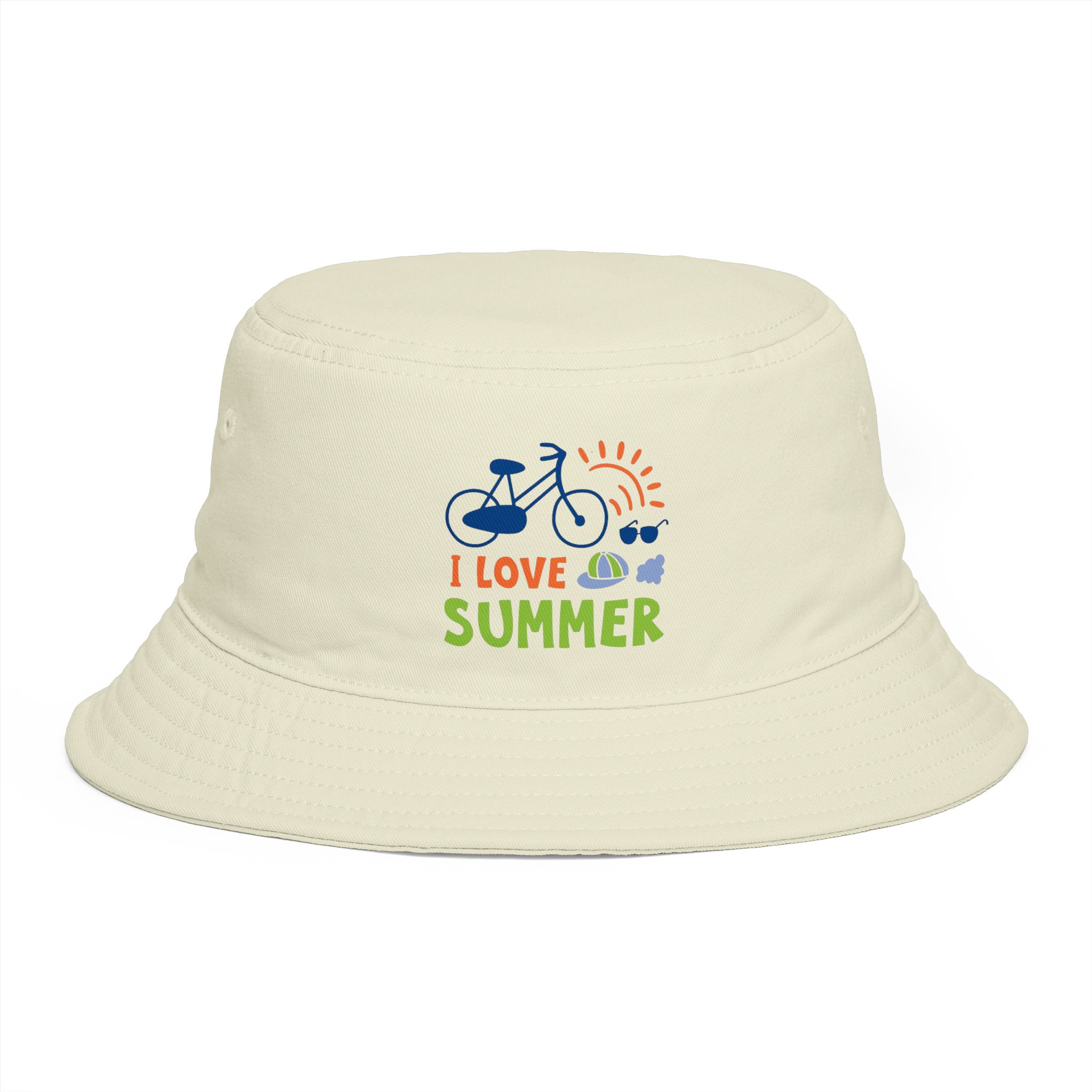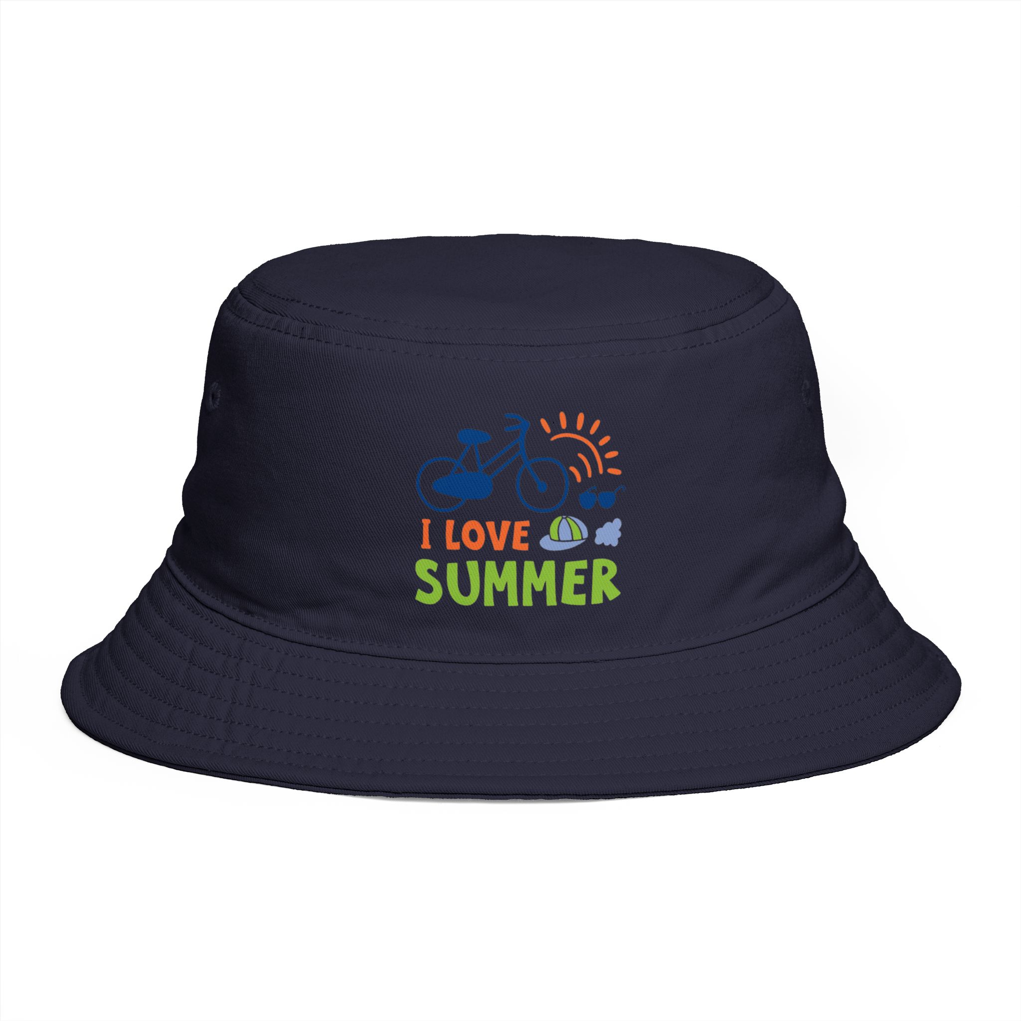 Sunlight, salty air, and the soft rumble of a bike on warm pavement — this bucket hat channels that easy, sunlit summer feeling. Lightweight 100% cotton keeps you cool while the reinforced brim shields your eyes without losing shape. The embroidered ‘I Love Summer’ motif and playful icons whisper of long afternoons, festivals, and shoreline detours. Wear it folded up for city strolls or down for beach days. It sits comfortably with a tear-away label and one-size fit that slips into backpacks and picnic baskets alike.