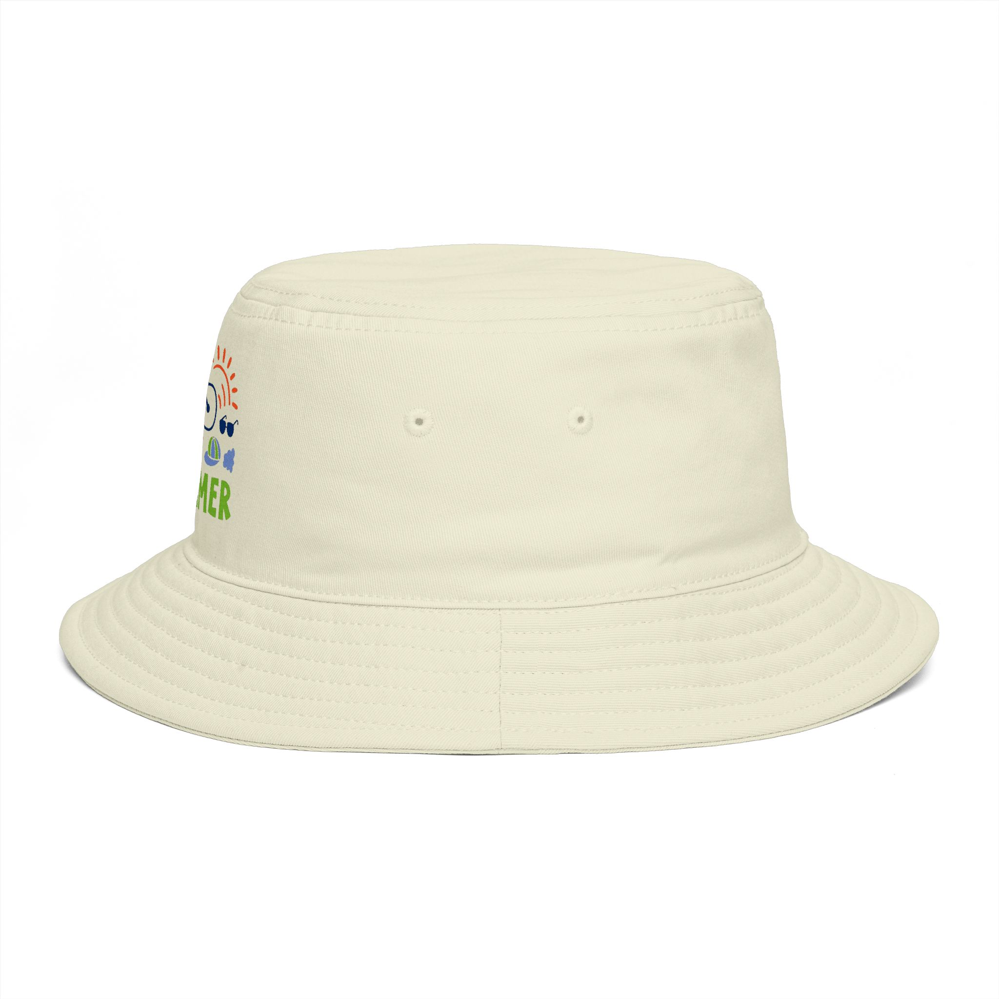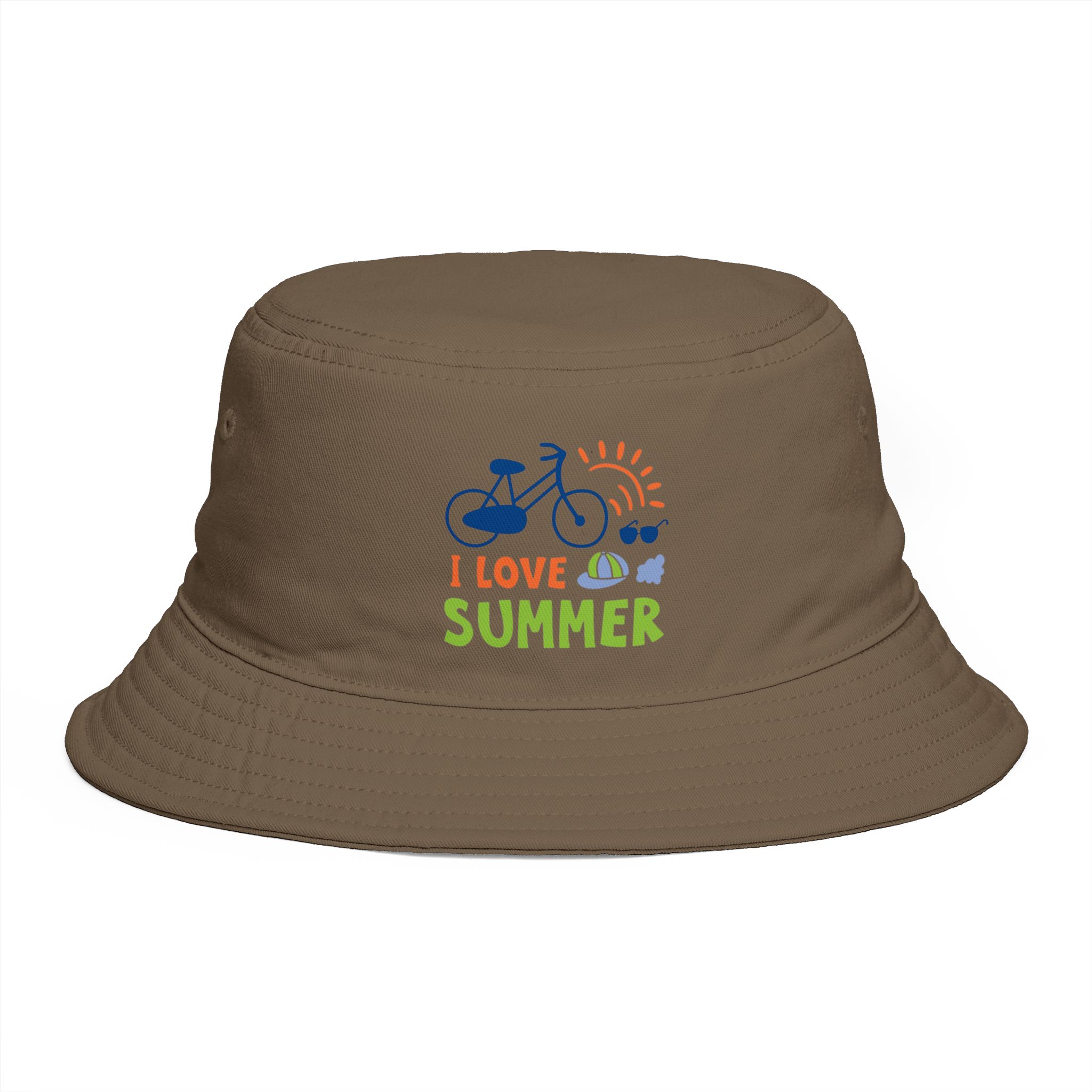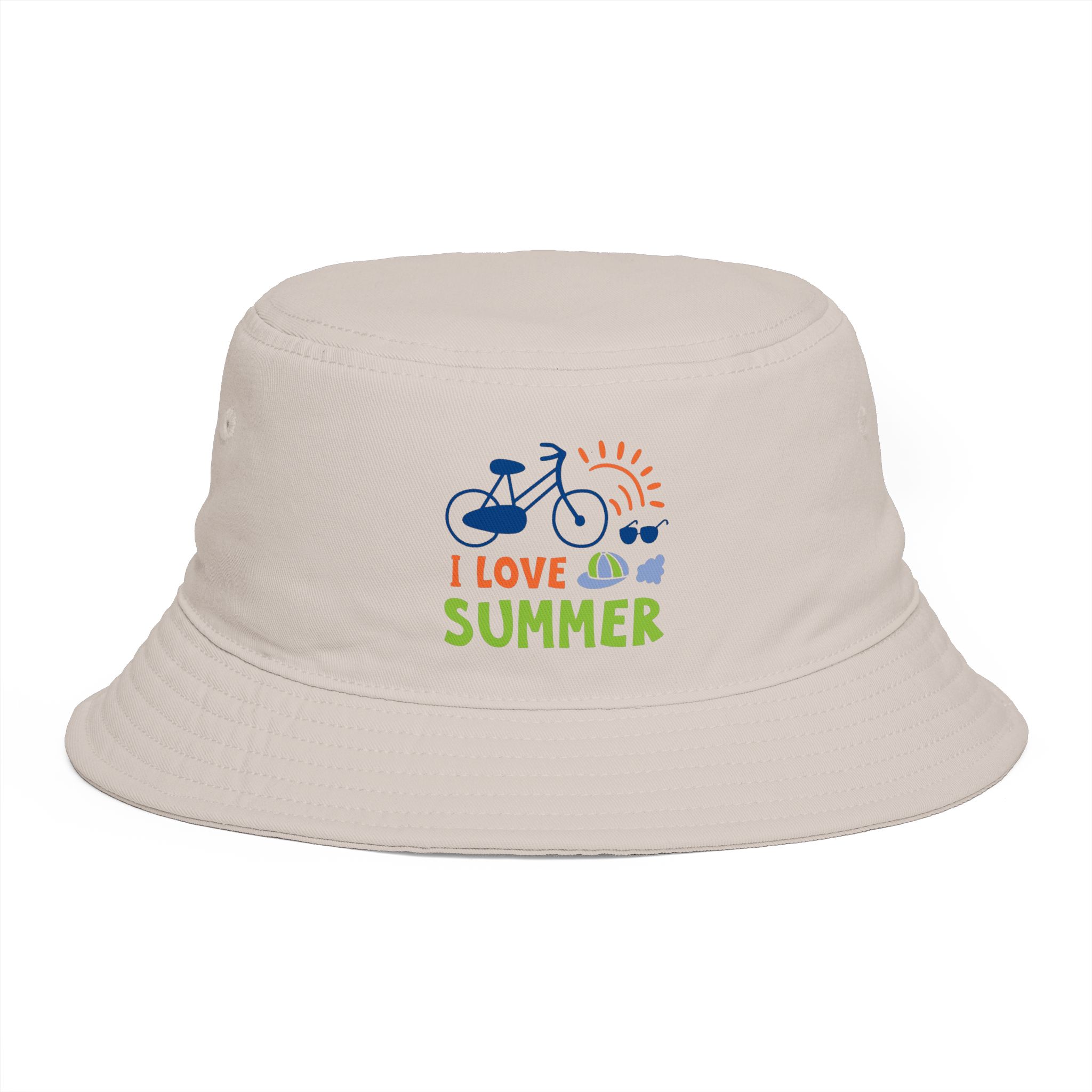 Sunlight, salty air, and the soft rumble of a bike on warm pavement — this bucket hat channels that easy, sunlit summer feeling. Lightweight 100% cotton keeps you cool while the reinforced brim shields your eyes without losing shape. The embroidered ‘I Love Summer’ motif and playful icons whisper of long afternoons, festivals, and shoreline detours. Wear it folded up for city strolls or down for beach days. It sits comfortably with a tear-away label and one-size fit that slips into backpacks and picnic baskets alike.