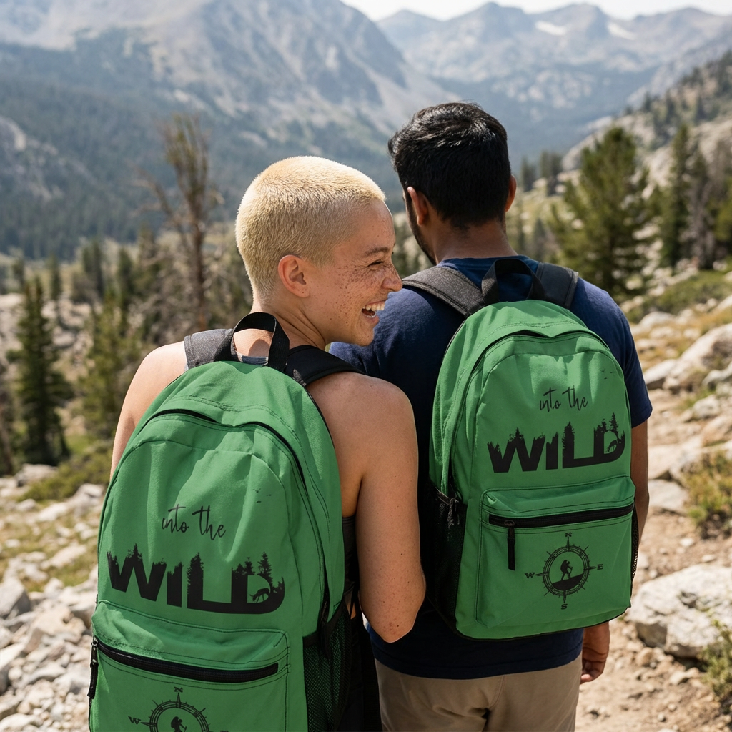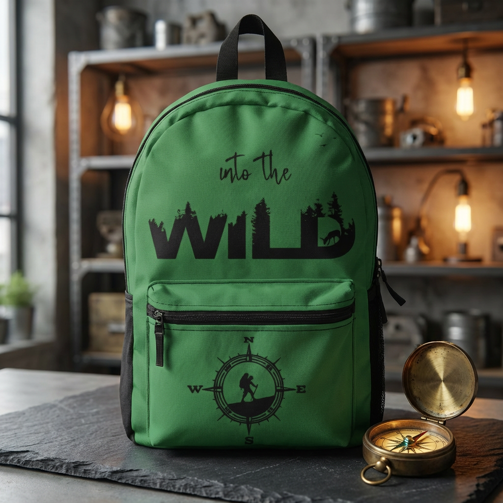 Lightweight and adventure-ready, this backpack is made to move with you on trail days and city escapes alike. The forest-green shell features a bold “into the WILD” graphic and compass motif — a quiet declaration for anyone who chooses the path less traveled. Padded mesh back and adjustable straps keep shoulders comfortable on longer hikes, while multiple zip pockets (including a laptop sleeve and side bottle pocket) organize maps, snacks, and essentials. Built from quick-drying polyester and assembled in the USA from globally sourced parts, it’s durable enough for muddy trailheads and easy to rinse off after a weekend outside.