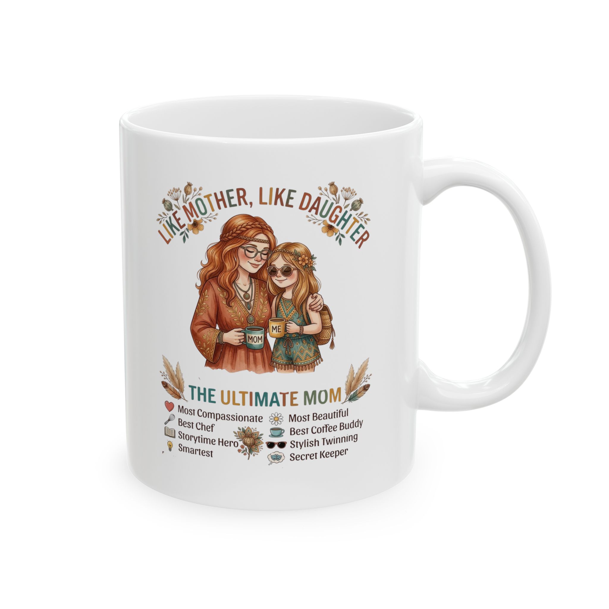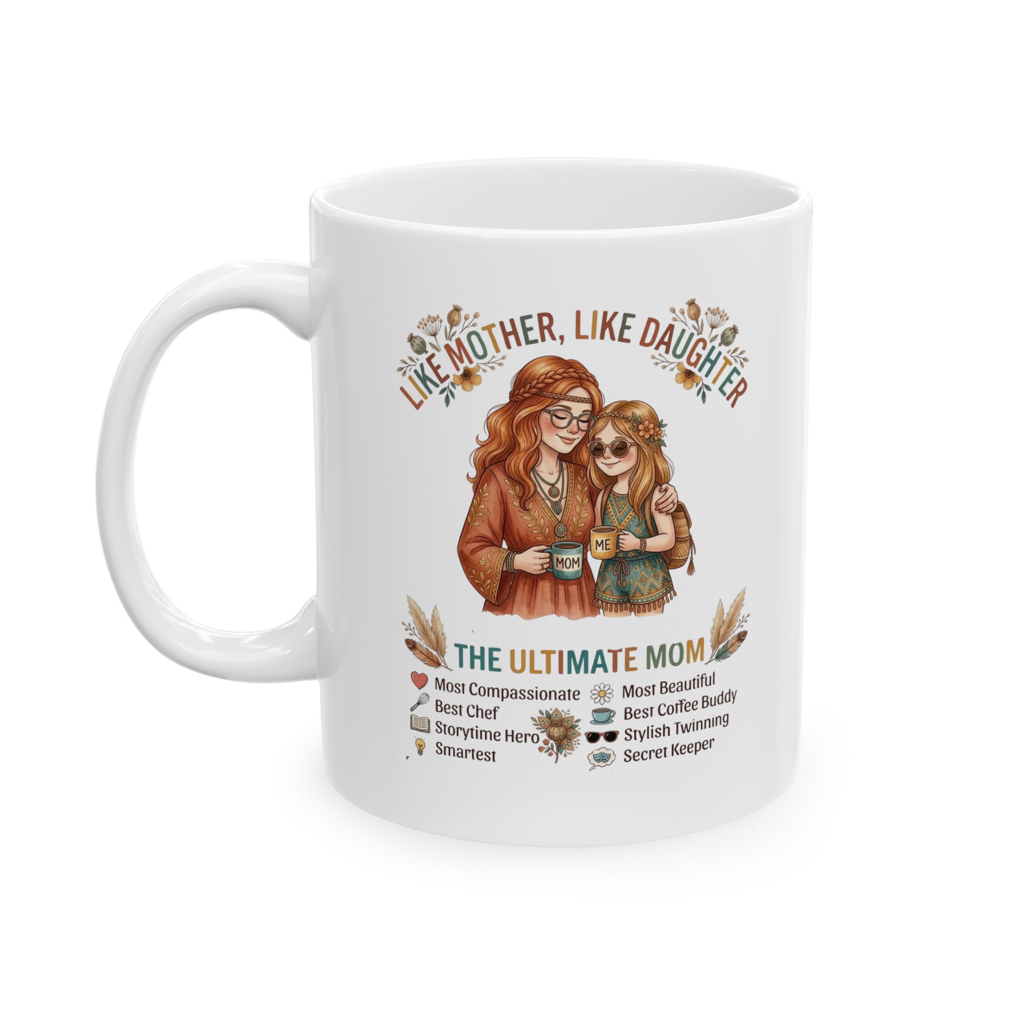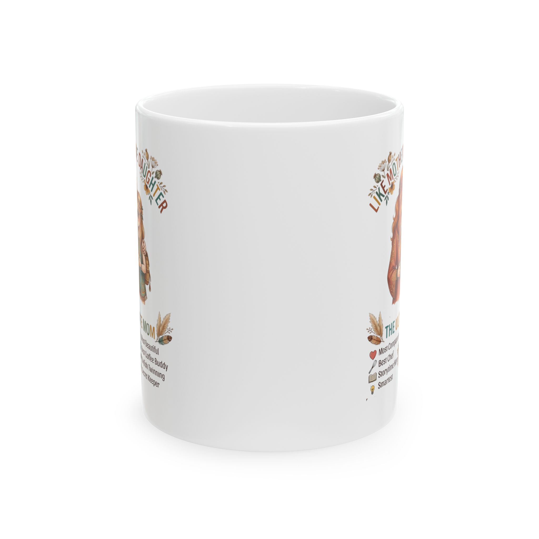 This glossy ceramic mug brings quiet warmth to morning routines. Hand-drawn floral accents and a gentle portrait wrap the white surface, creating a small moment of calm between sips. The comfortable C-handle fits naturally in your hand, and the bright, true-to-design print keeps the artwork vivid through daily use. Choose 11oz for a snug cup of coffee or 15oz when you want an extra pour for slow mornings. Dishwasher- and microwave-safe, lead- and BPA-free — it’s a reliable piece that settles into kitchen shelves, bedside tables, and home-office desks alike.