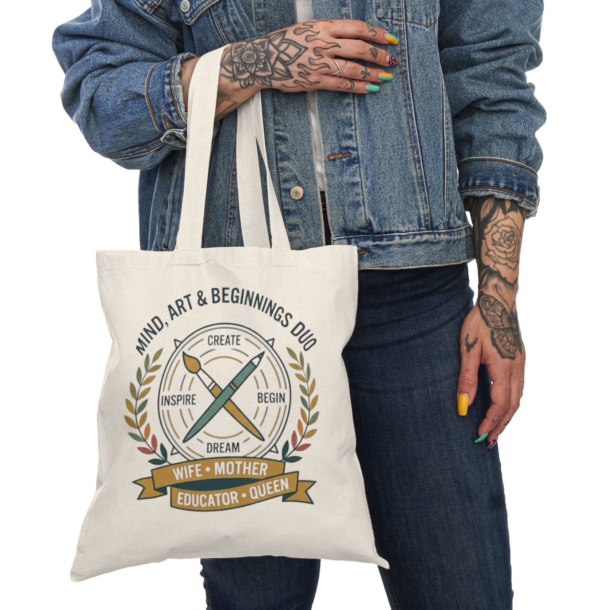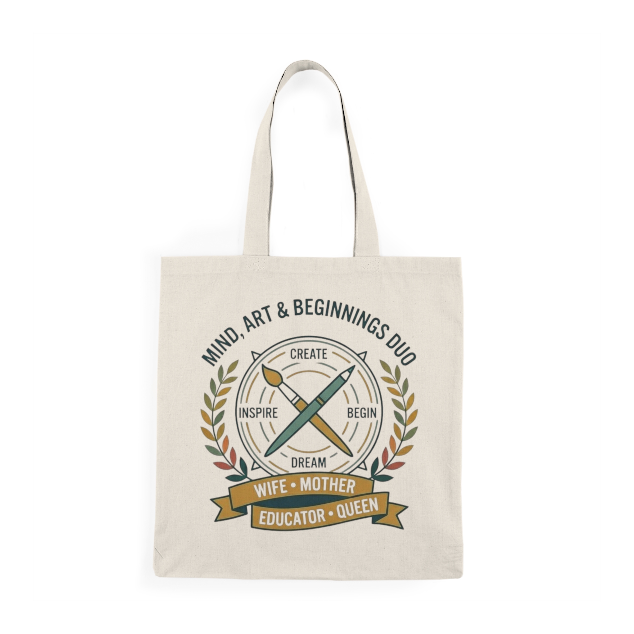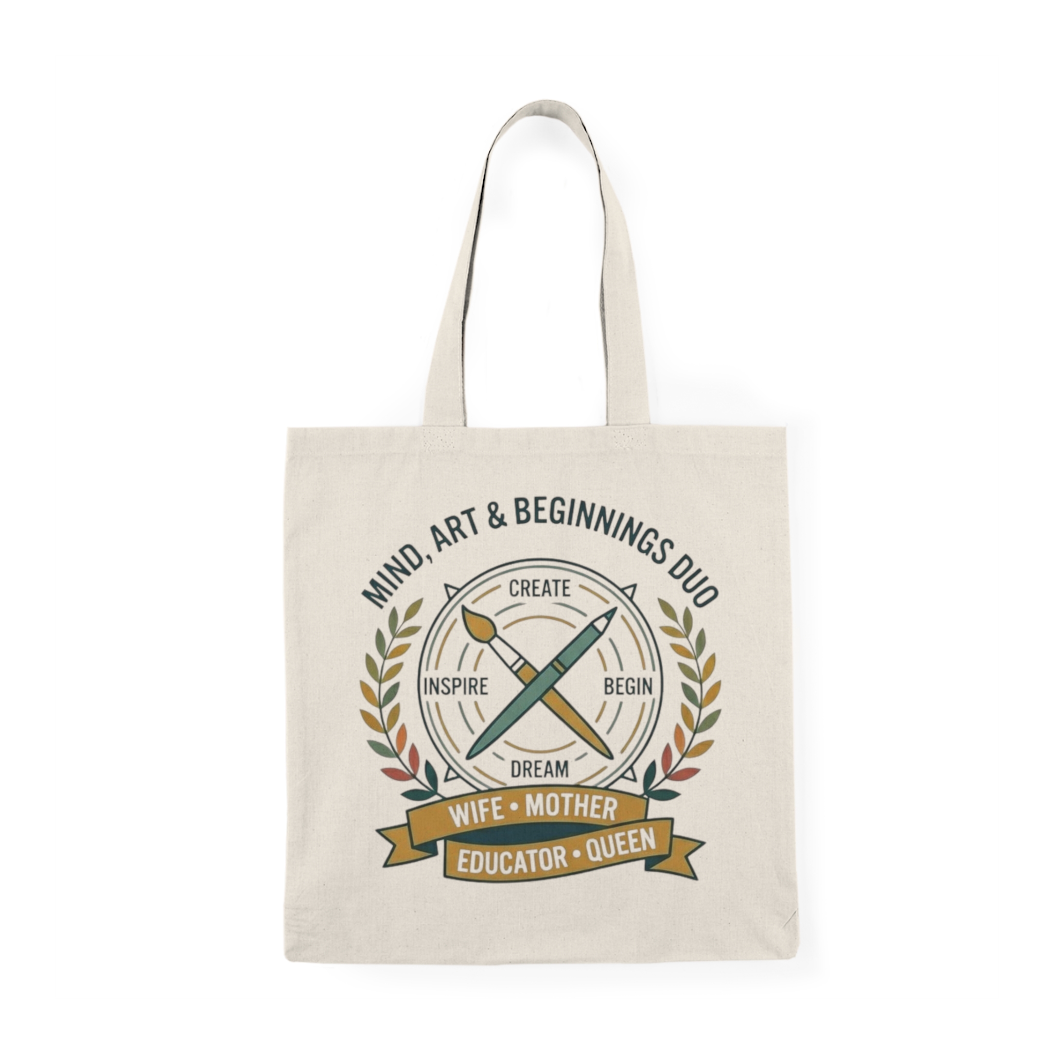 This natural cotton canvas tote carries a quiet, confident energy—built for hands that carry ideas, supplies, and life. The double-sided print shows a soft, vintage-inspired emblem of brushes and pencils framed by laurel branches and encouraging words: Create, Inspire, Begin, Dream. Earthy tones and crisp lines give it an artisan, scholastic feel that slips easily into daily routines. Use it for market runs, sketching sessions, library drops, or as the carry-all for classroom essentials. It feels lived-in from the first wear, holds its shape, and lets your maker spirit travel light.