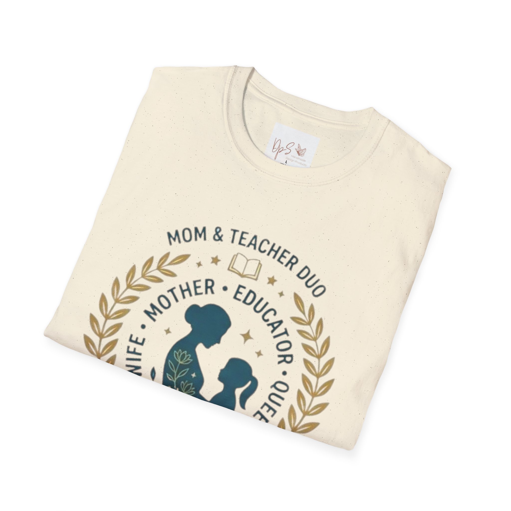 This lightweight cotton tee celebrates the heart of teaching moms with quiet confidence. A soft crew neck and smooth, durable knit sit comfortably while a warm, vintage-inspired emblem—silhouetted mother and child framed by laurel leaves—speaks to dedication, patience, and everyday triumphs. Wear it to parent-teacher mornings, casual school events, or coffee runs when you want a subtle reminder of the many roles you carry. The breathable fabric and tear-away label keep it comfortable through busy days; the understated print pairs easily with jeans, cardigans, or layered under a blazer for school meetings.
