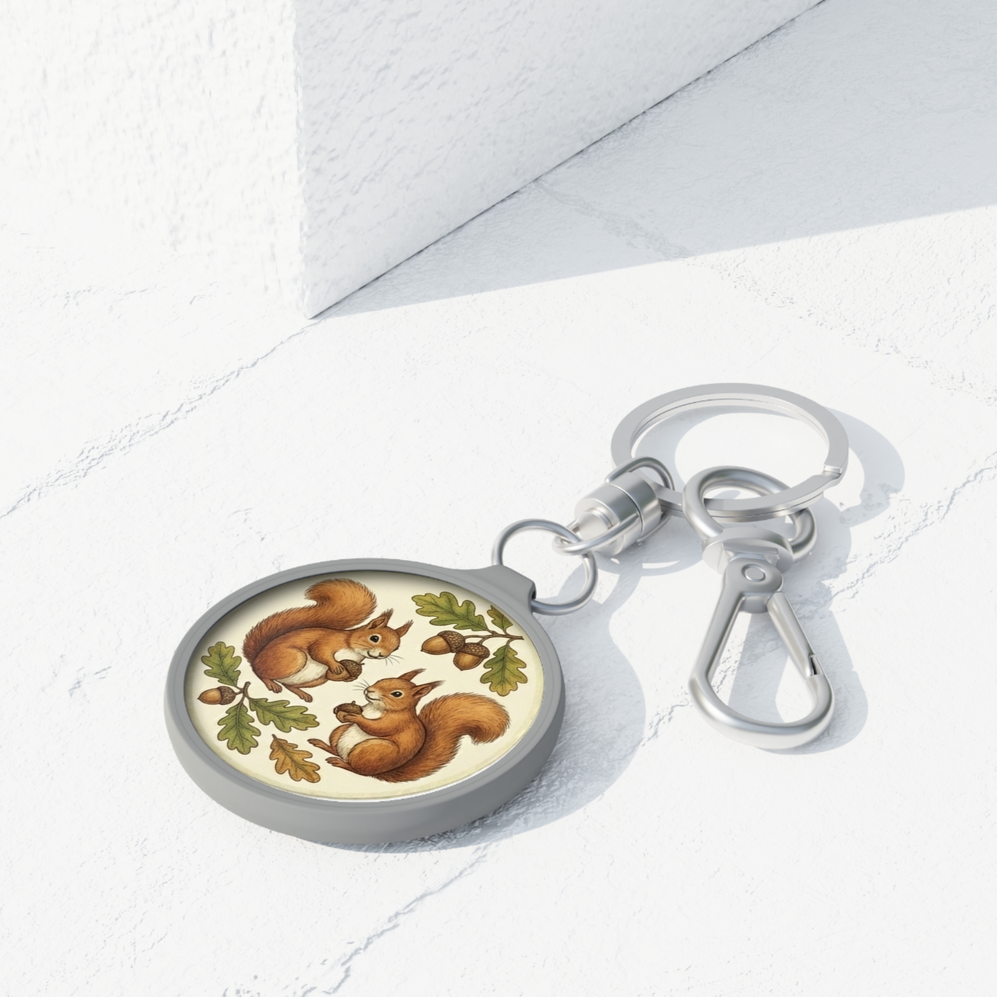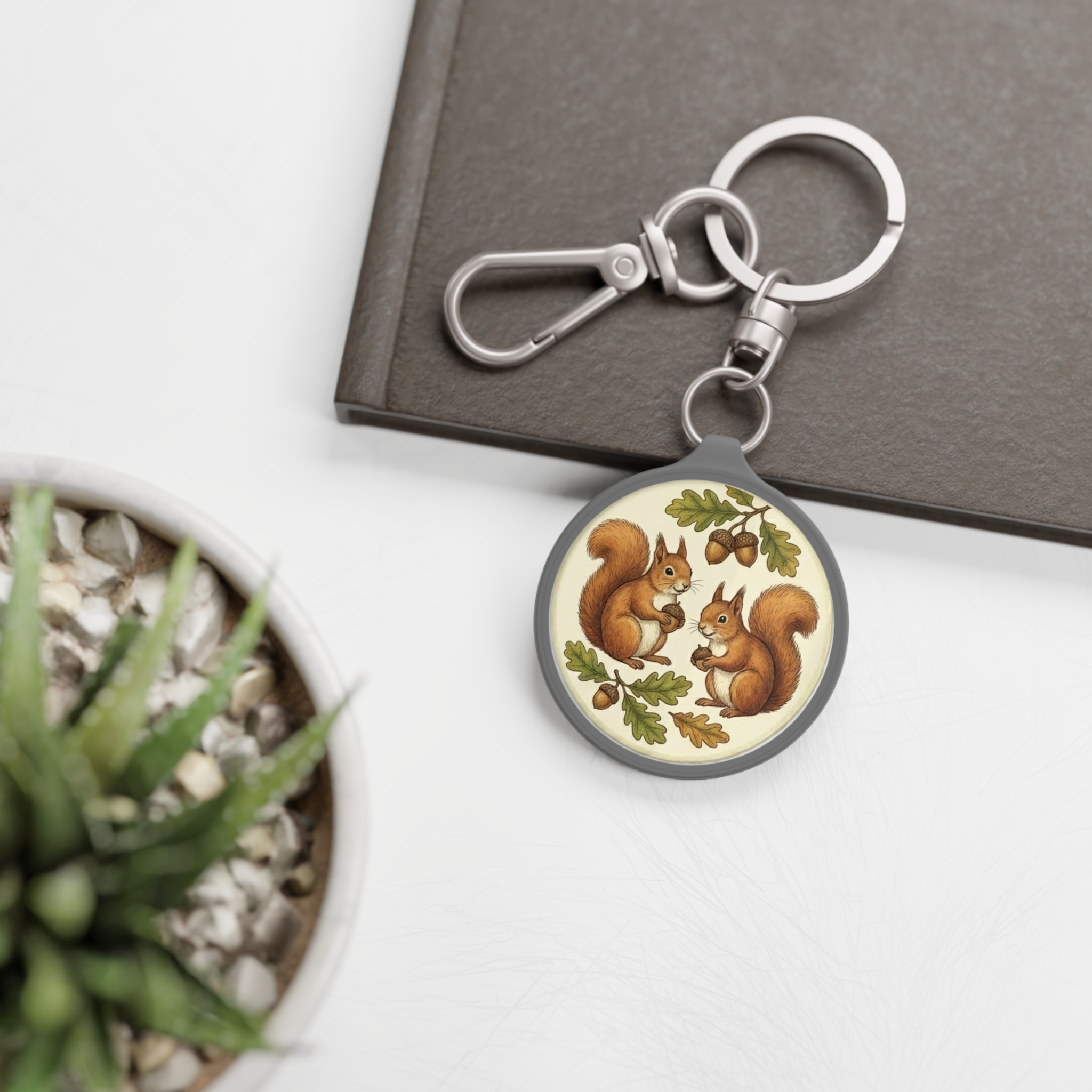 Pair of Squirrels with Acorns Keyring Tag | Autumn Illustration Keychain