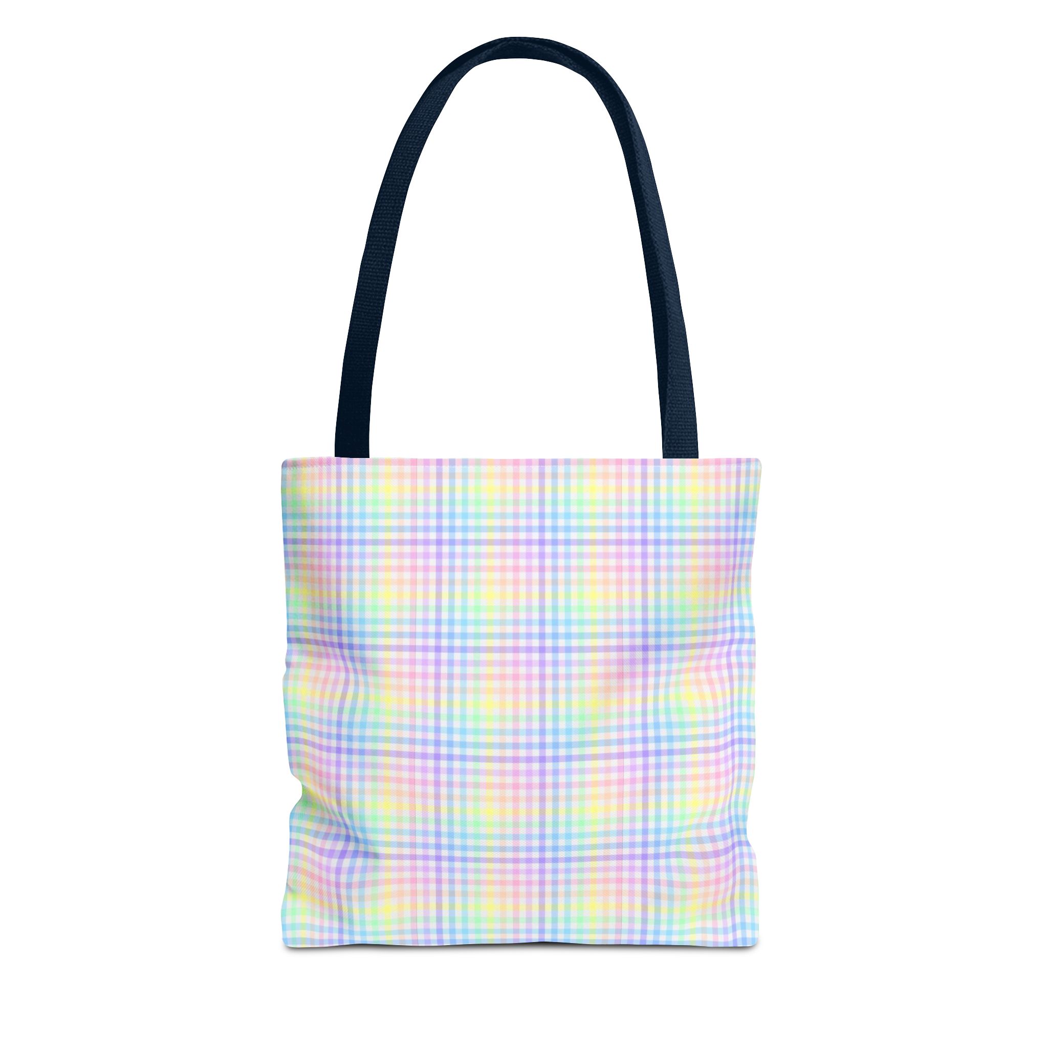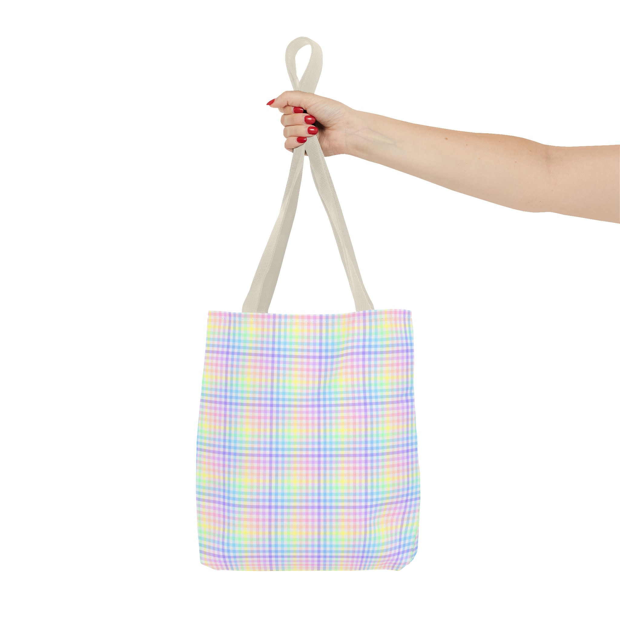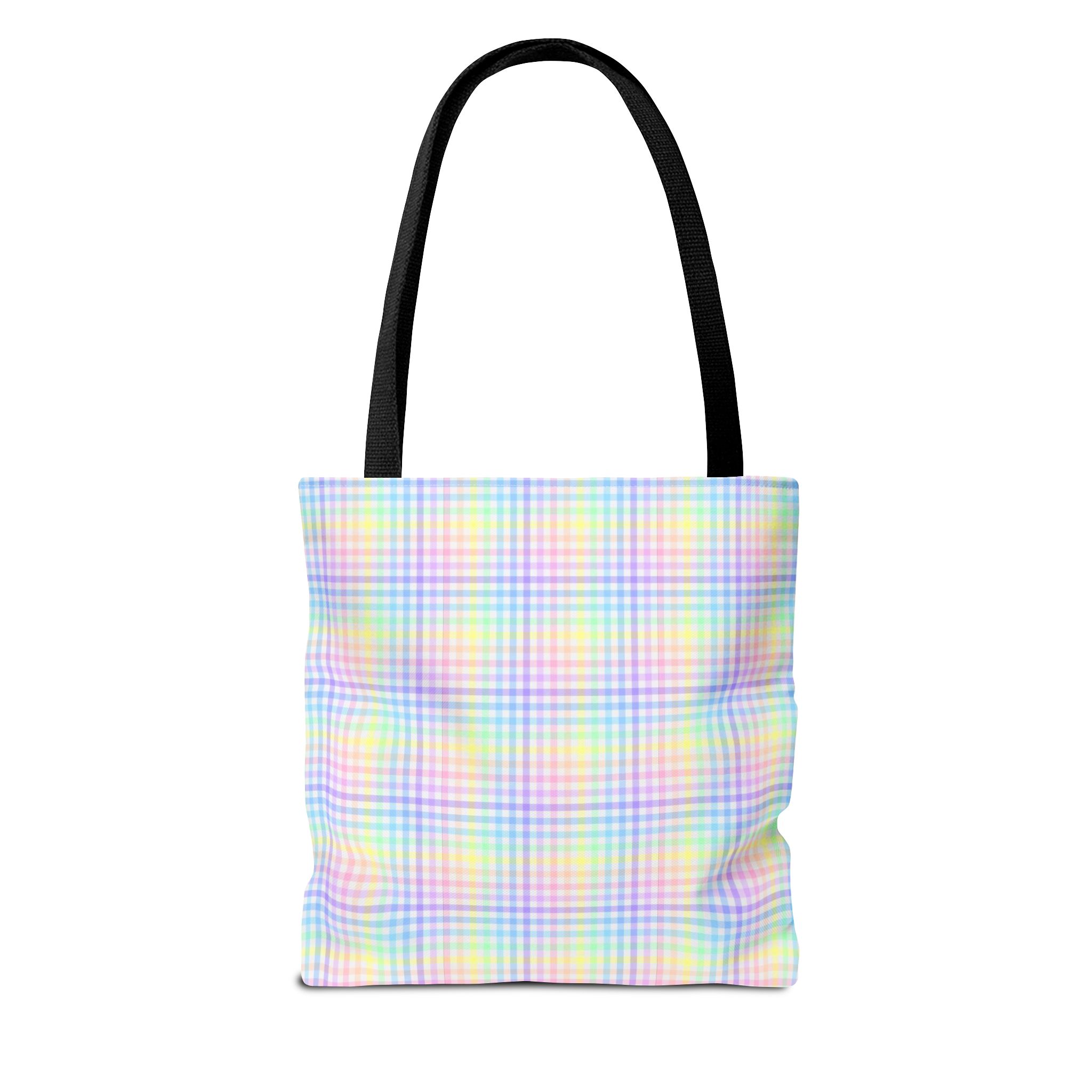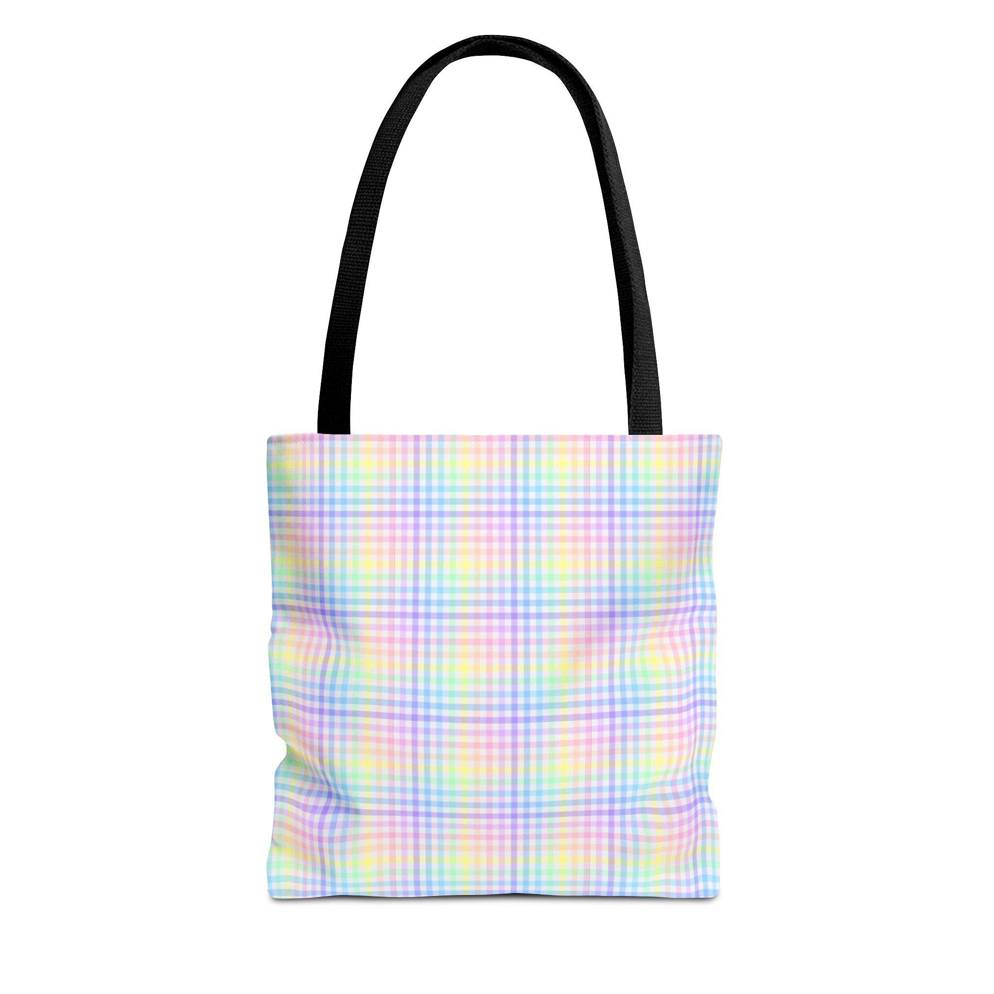 Soft pastel checks ripple across this roomy tote, bringing a gentle, whimsical touch to daily errands and weekend markets. The lightweight polyester holds its shape while the boxed corners add usable depth—tuck in a sketchbook, lunch, or a small haul from the farmers’ stand. Black cotton handles sit comfortably on the shoulder and reinforced stitching means this bag travels with you without fuss. The subtle lamination inside keeps things tidy and resilient; the fabric dries fast and resists wrinkles, so the dreamy plaid stays fresh through seasons. Carry it to craft fairs, coffee dates, or to brighten a dull commute—the mood is quietly cheerful and quietly practical.