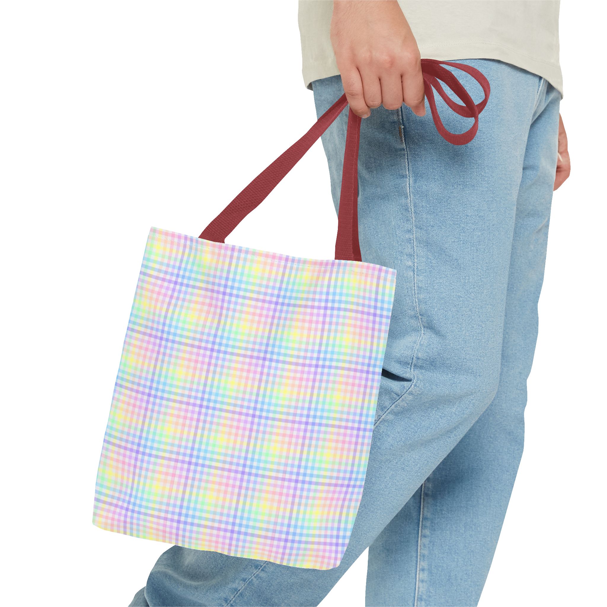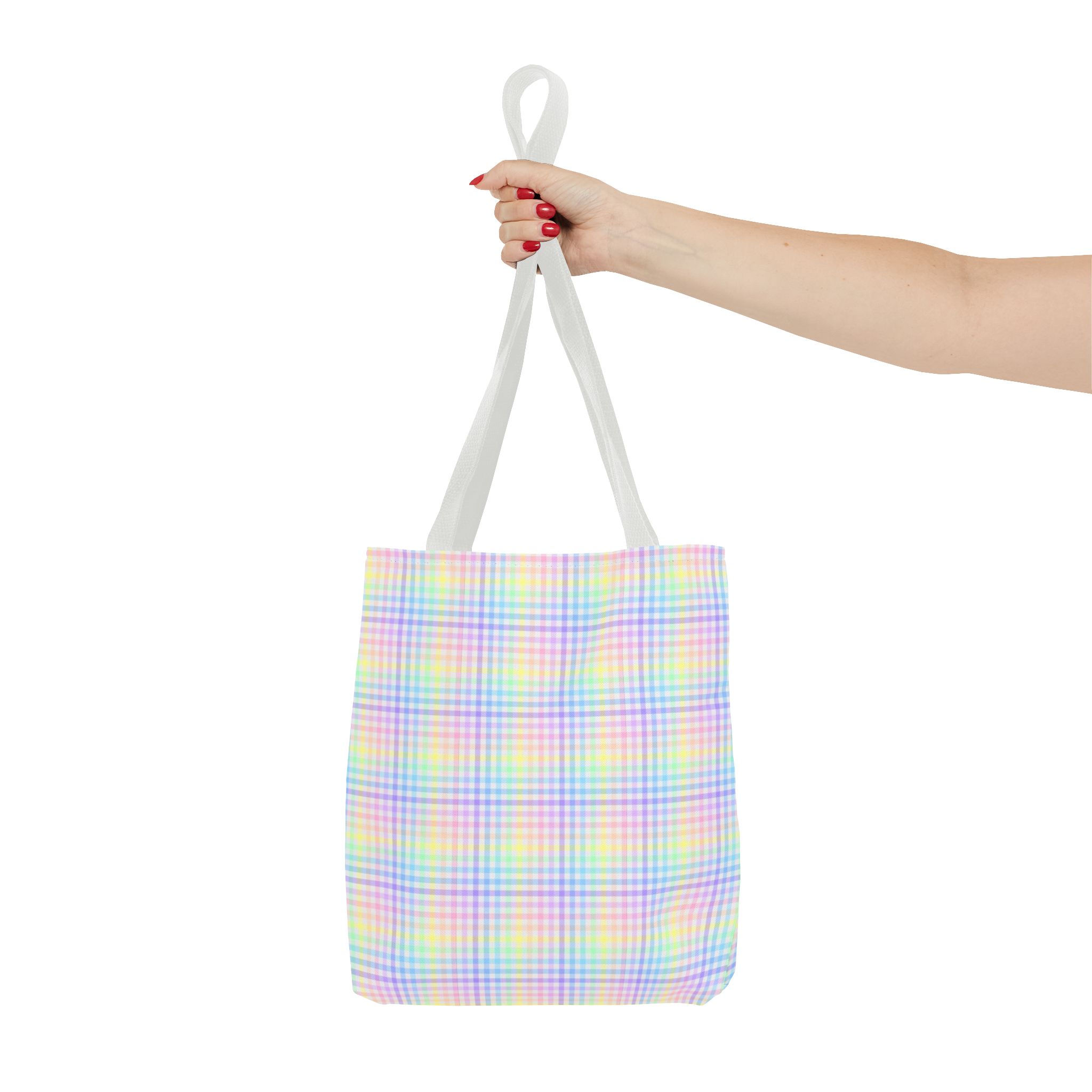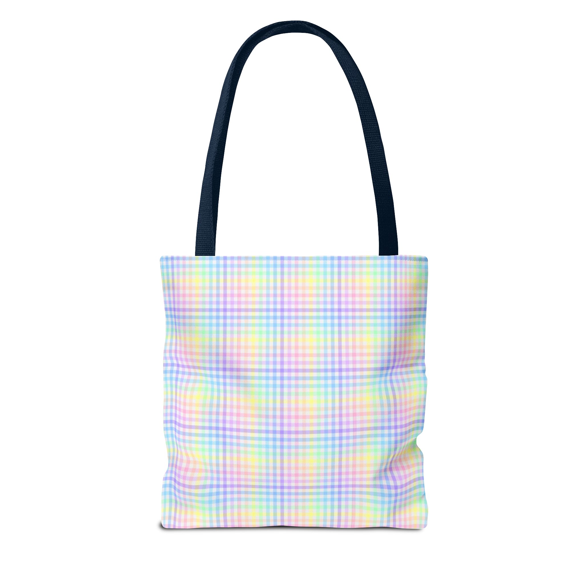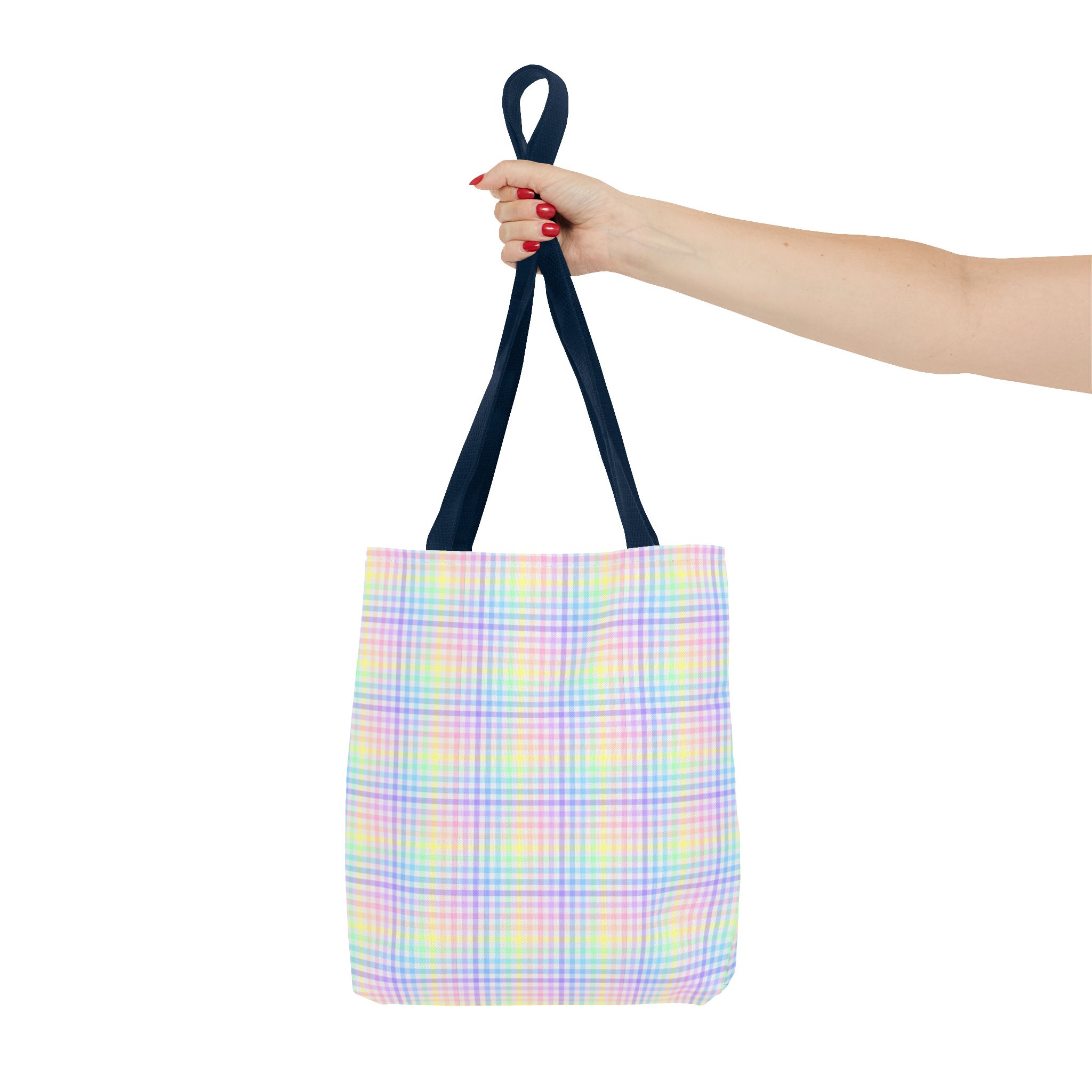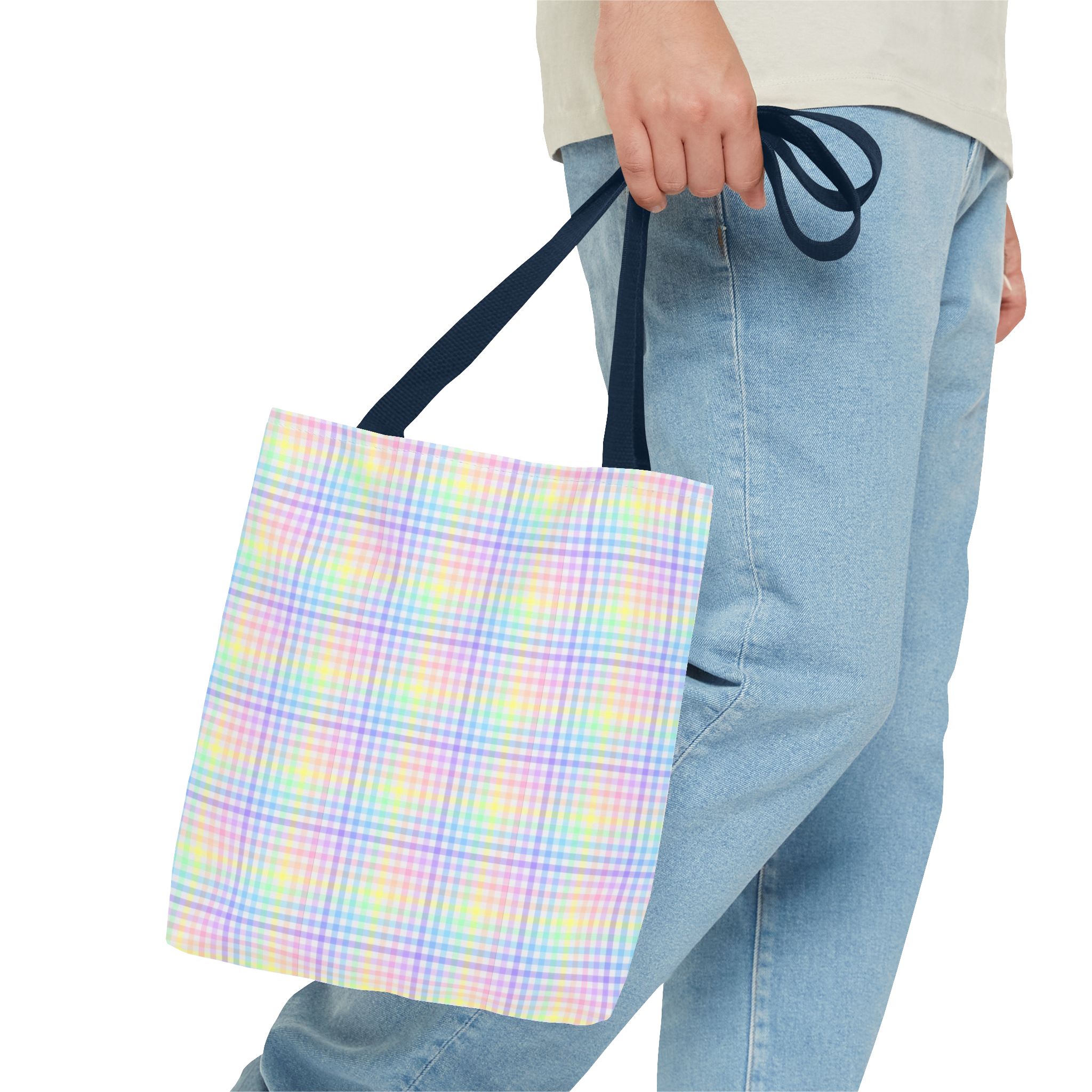 Soft pastel checks ripple across this roomy tote, bringing a gentle, whimsical touch to daily errands and weekend markets. The lightweight polyester holds its shape while the boxed corners add usable depth—tuck in a sketchbook, lunch, or a small haul from the farmers’ stand. Black cotton handles sit comfortably on the shoulder and reinforced stitching means this bag travels with you without fuss. The subtle lamination inside keeps things tidy and resilient; the fabric dries fast and resists wrinkles, so the dreamy plaid stays fresh through seasons. Carry it to craft fairs, coffee dates, or to brighten a dull commute—the mood is quietly cheerful and quietly practical.