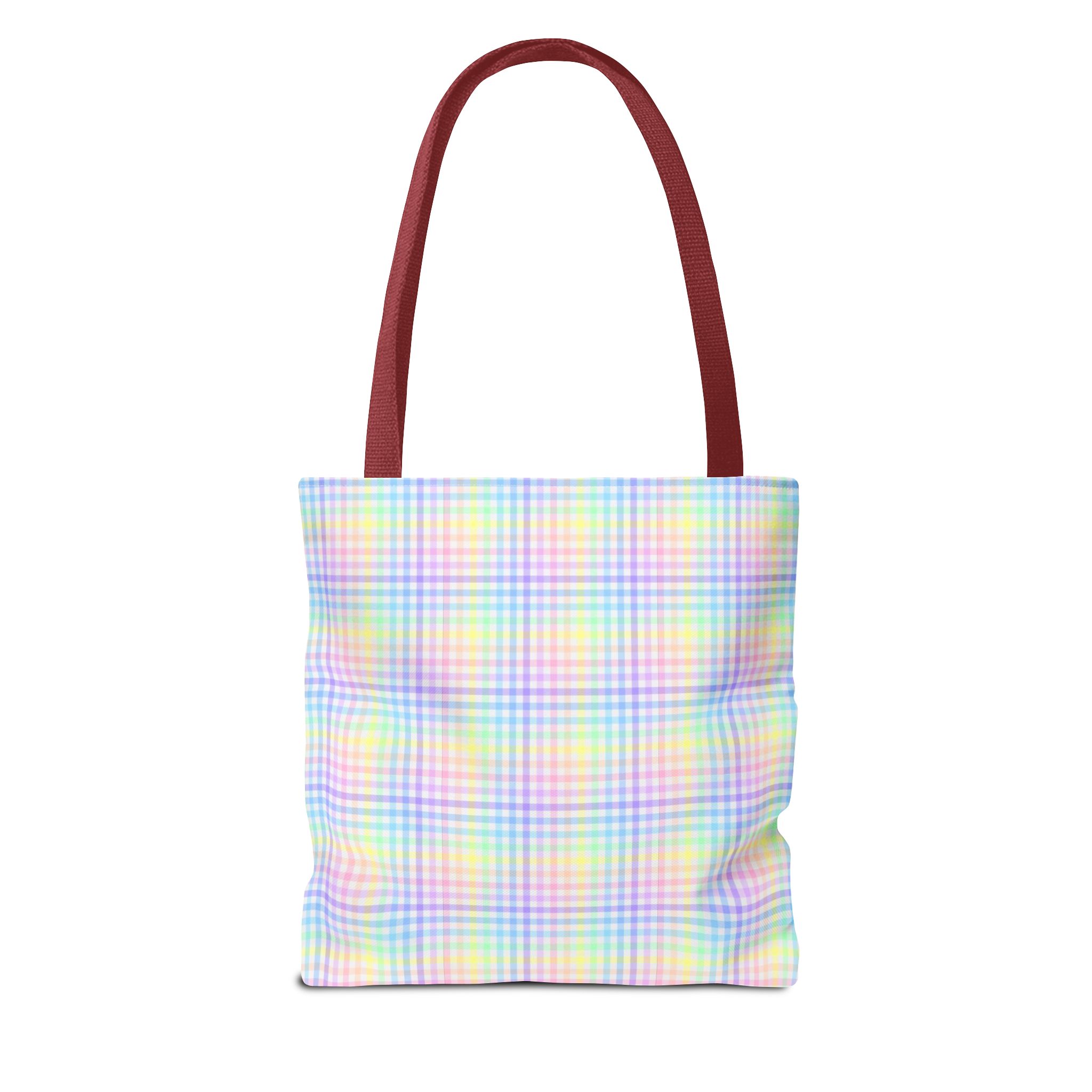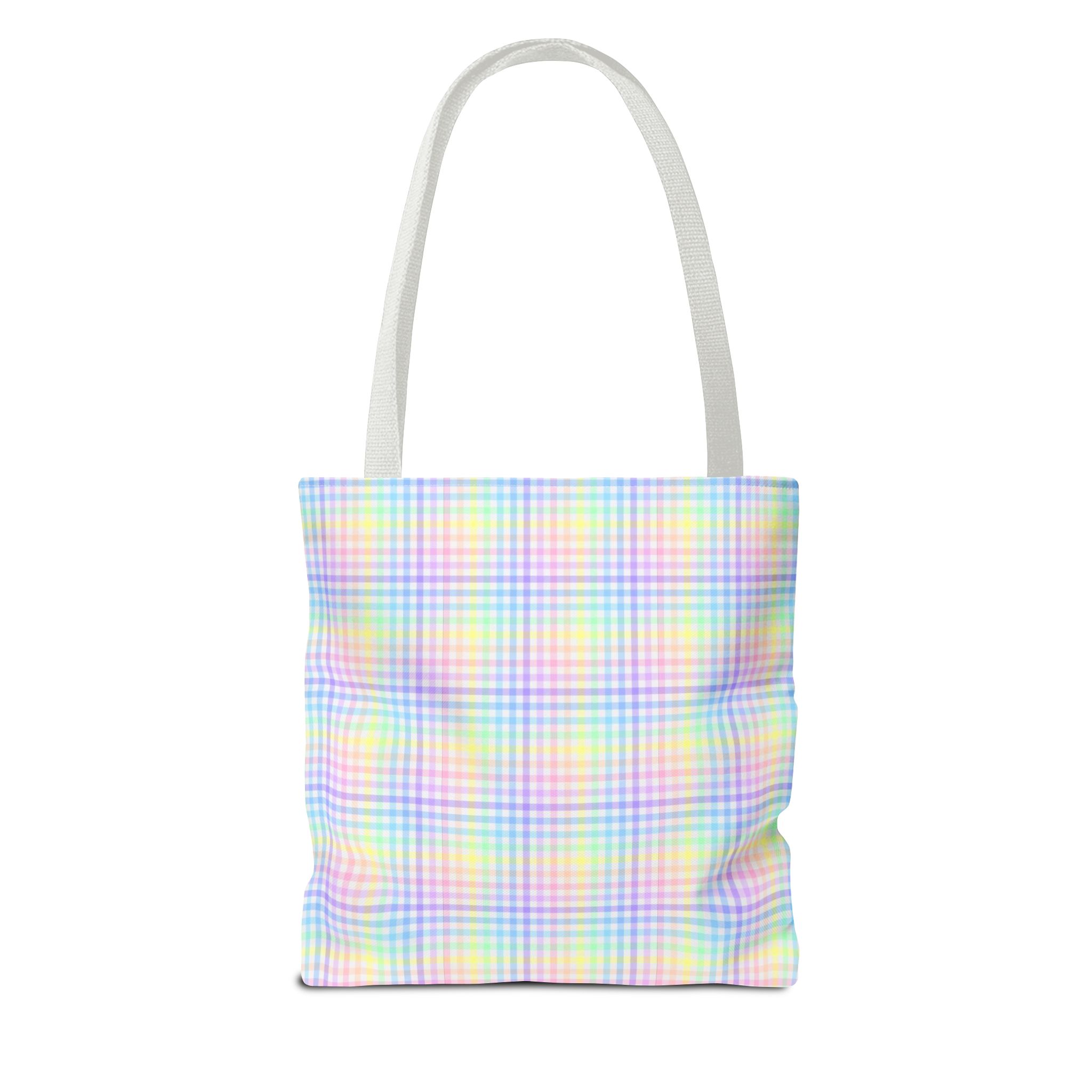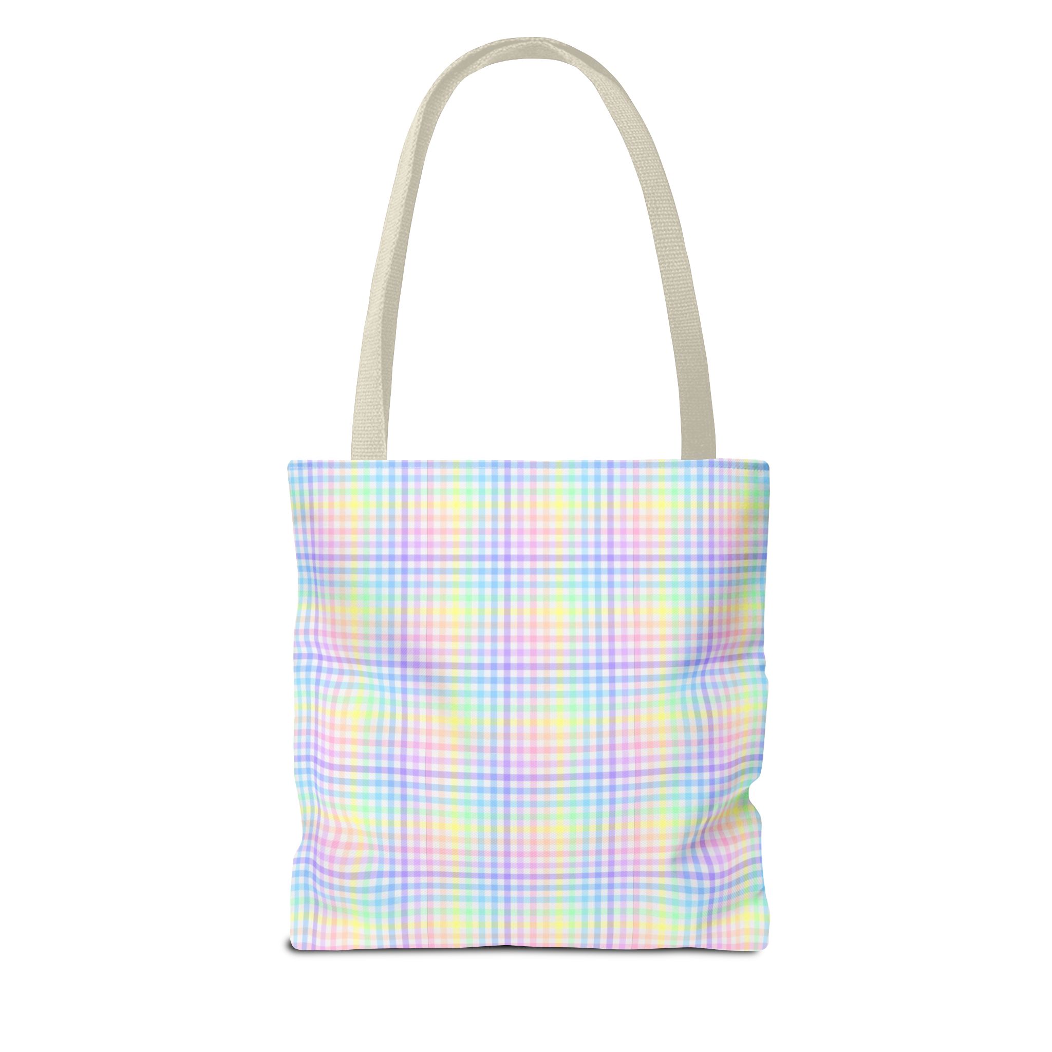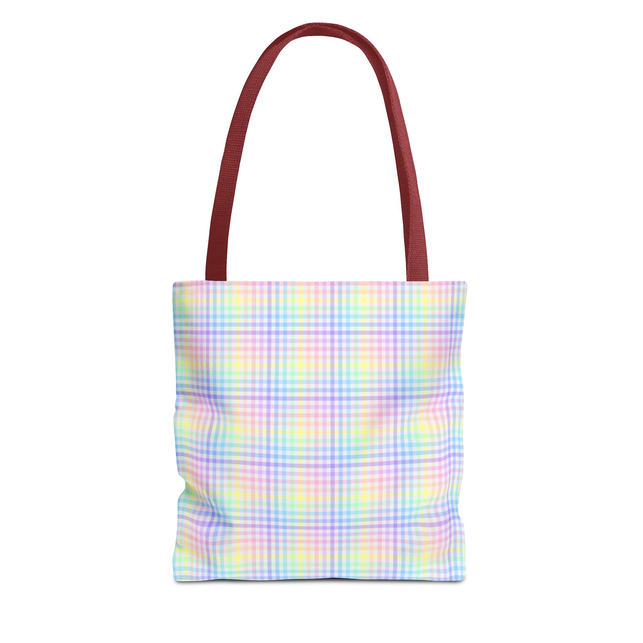 Soft pastel checks ripple across this roomy tote, bringing a gentle, whimsical touch to daily errands and weekend markets. The lightweight polyester holds its shape while the boxed corners add usable depth—tuck in a sketchbook, lunch, or a small haul from the farmers’ stand. Black cotton handles sit comfortably on the shoulder and reinforced stitching means this bag travels with you without fuss. The subtle lamination inside keeps things tidy and resilient; the fabric dries fast and resists wrinkles, so the dreamy plaid stays fresh through seasons. Carry it to craft fairs, coffee dates, or to brighten a dull commute—the mood is quietly cheerful and quietly practical.
