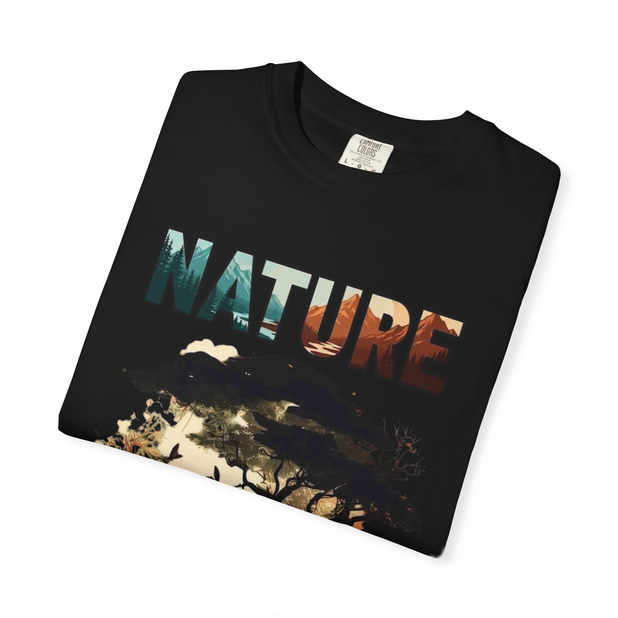 This heavyweight, garment-dyed tee brings a quiet, woodland story to everyday wear. Soft, lived-in color and a relaxed fit make it feel like an old favorite the moment you put it on. The front carries a small, detailed emblem while the back opens into a sunset forest scene — a lone figure under trees, birds in flight and warm, ember tones that read like a memory of evening light. It’s for people who walk trails at dusk, sketch under broad branches, or carry a pocketful of quiet moments into the city. The dense cotton holds print detail and structure, while the post-dye finish gives each shirt a subtly faded, artisanal surface that ages beautifully with washes and wear.
