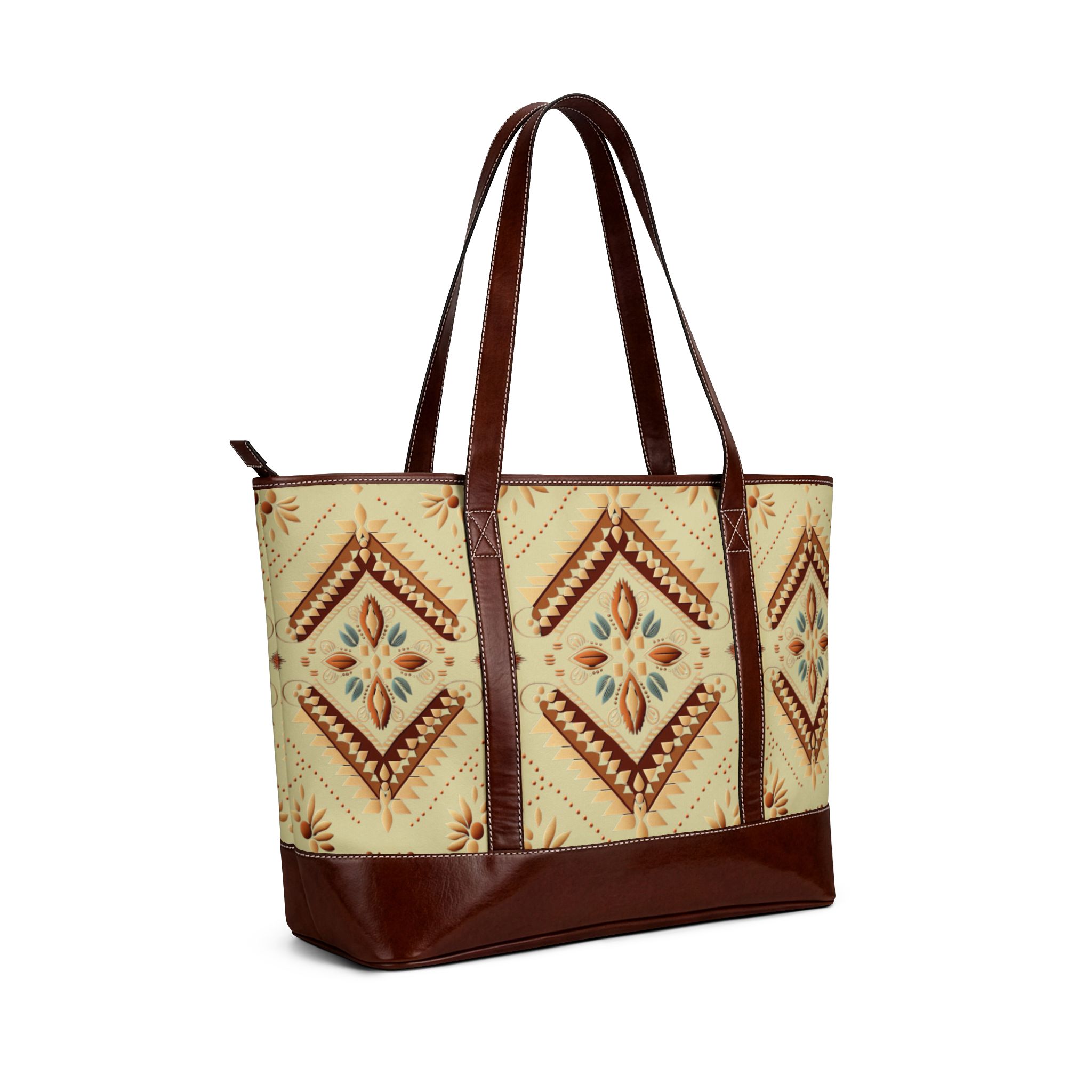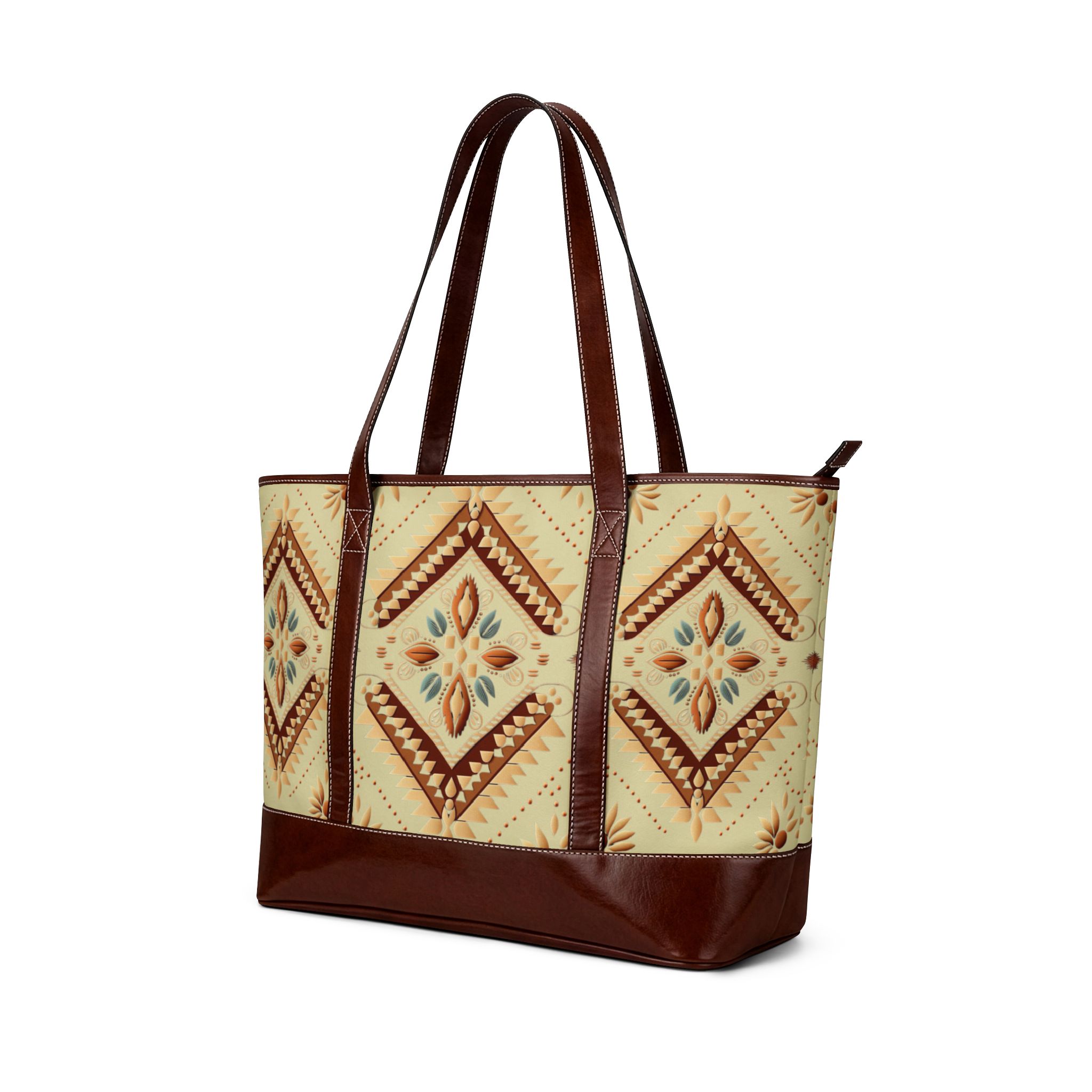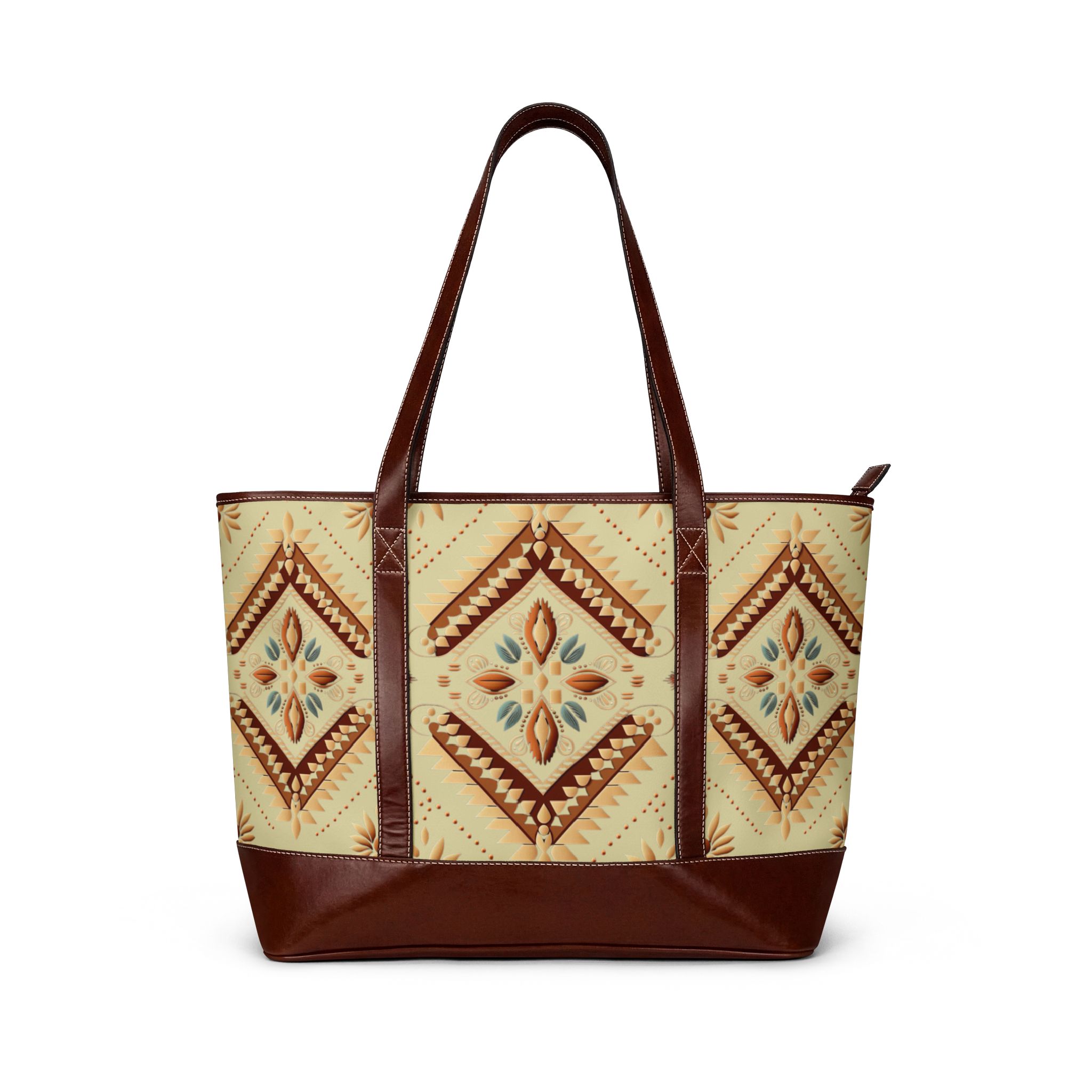 Southwestern Diamond Pattern Handbag | Boho Tote with Leather Trim
