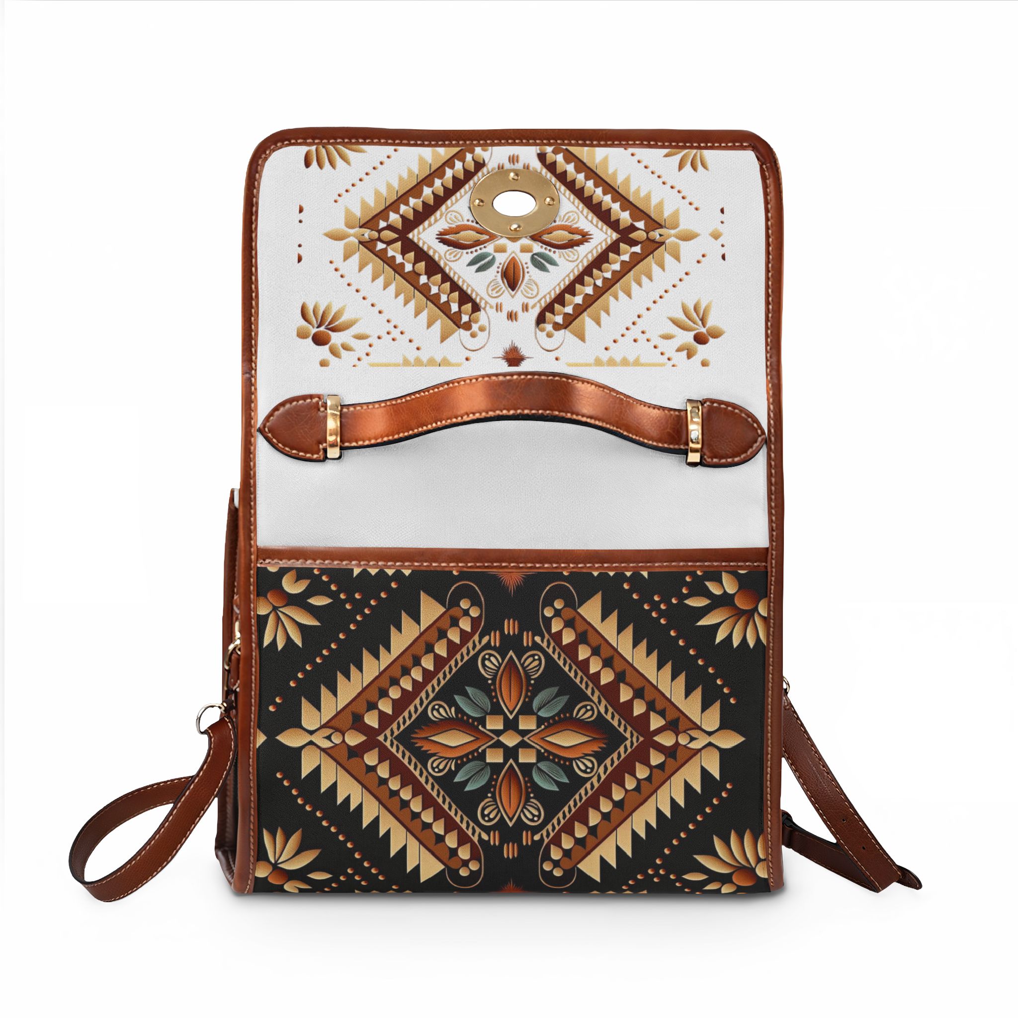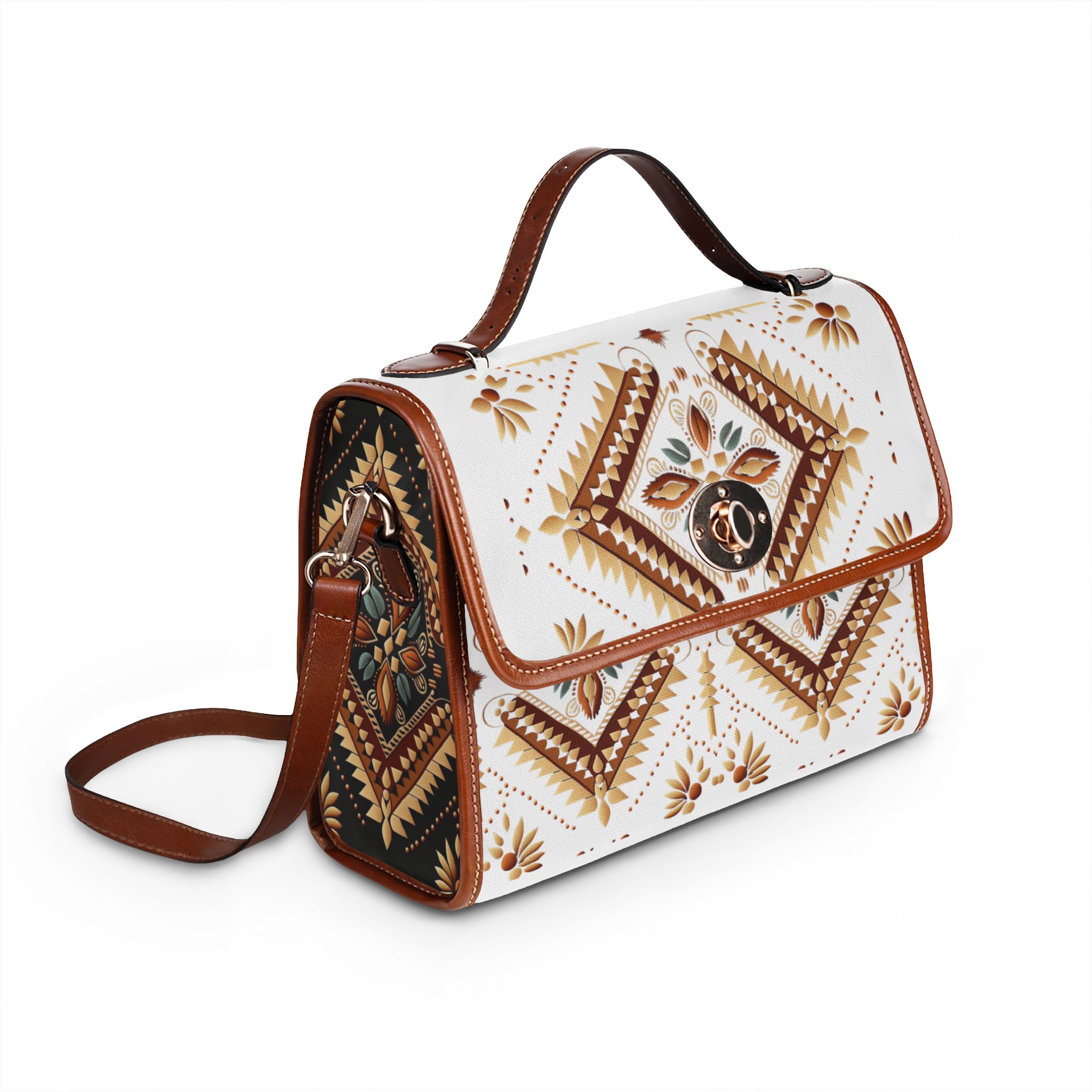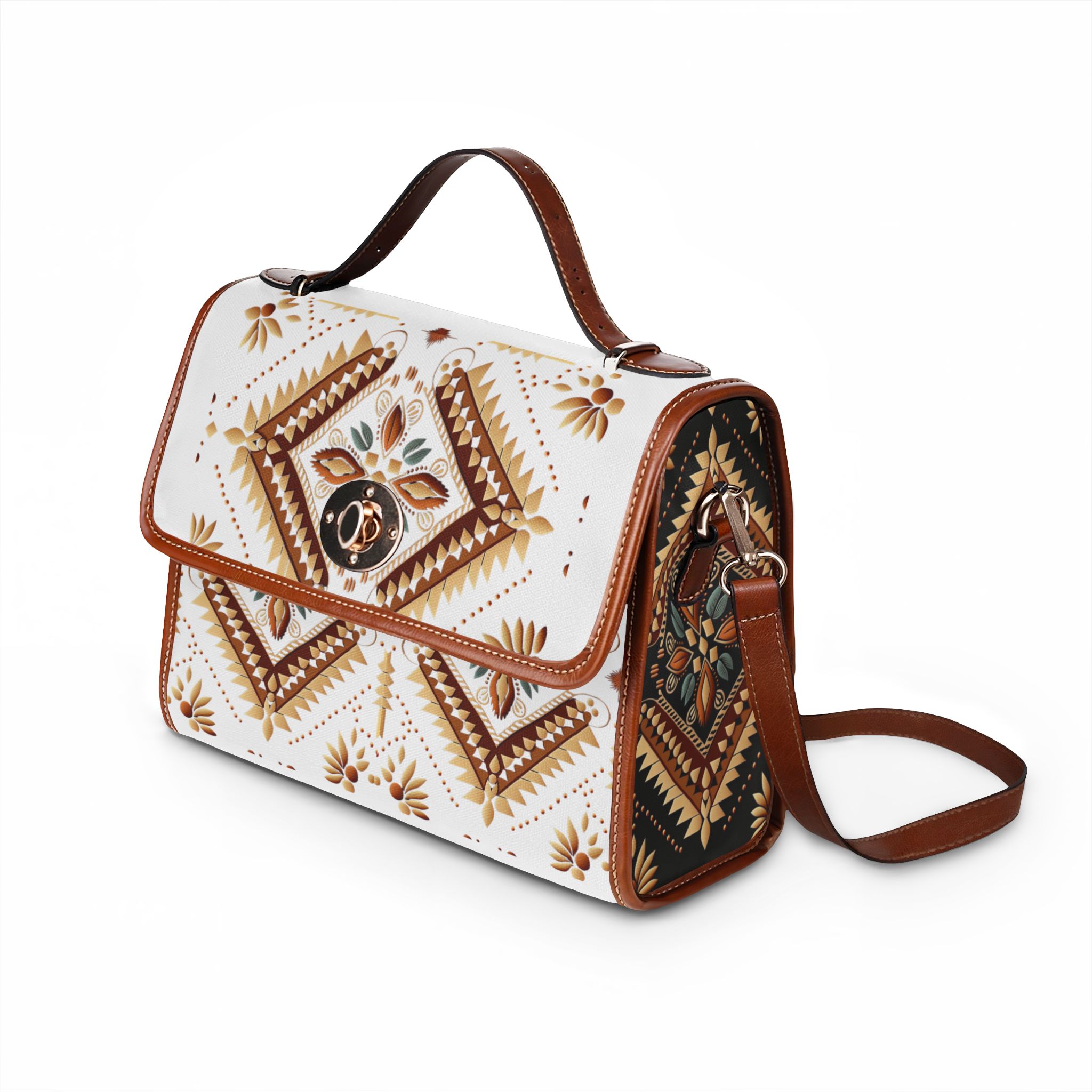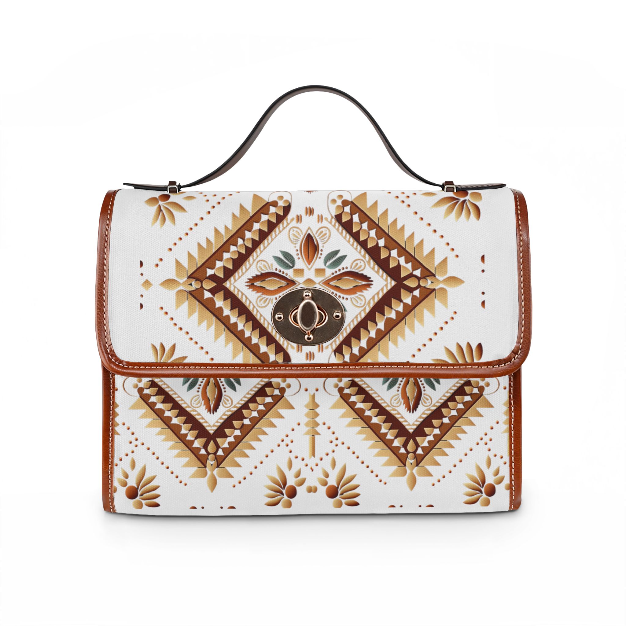 Southwestern Diamond Pattern Waterproof Canvas Bag | Aztec Floral Satchel