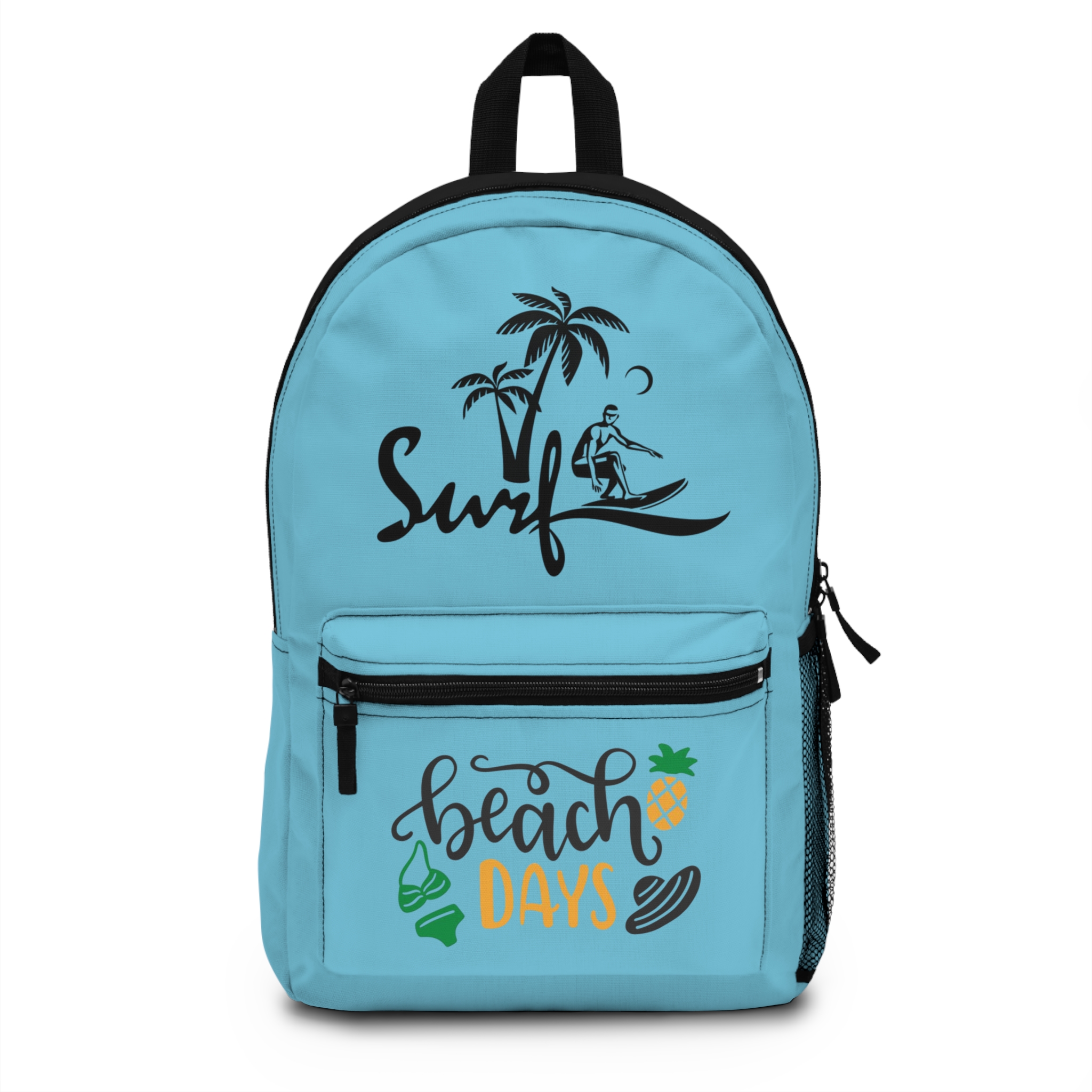 Sunlit, salty mornings and the hum of the ocean tucked into every seam. This lightweight backpack carries more than gear — it carries plans for a day on the sand. Soft aqua fabric sets off hand-lettered surf and “Beach Days” graphics, while a silhouette of palms and a surfer evokes the slow rhythm of tide and board. Padded mesh backing and adjustable straps keep shoulders cool when you hike down dunes or bike to a pier. Multiple zip pockets and a padded laptop sleeve mean your towel, water bottle, sunscreen and playlist all have their place. Built for easy, breathable carrying and quick-dry moments, it’s the kind of bag you reach for when the forecast calls for sun and time to roam the shoreline.