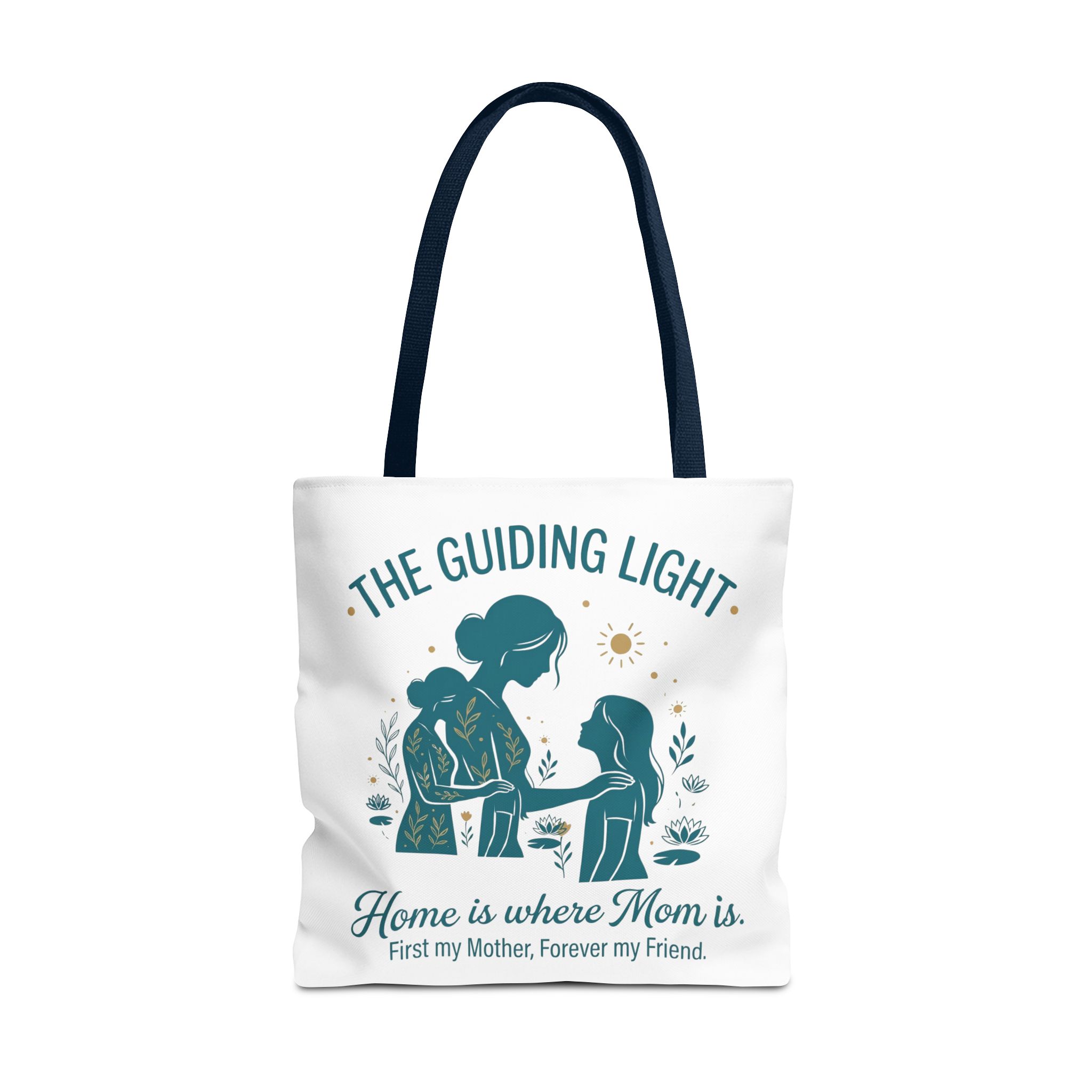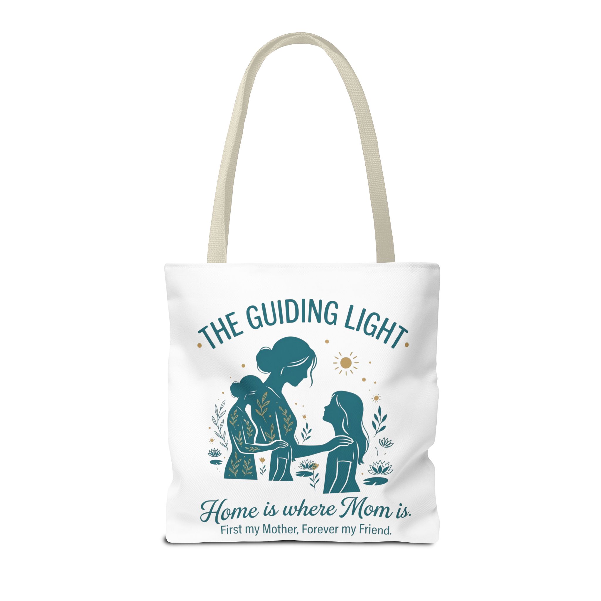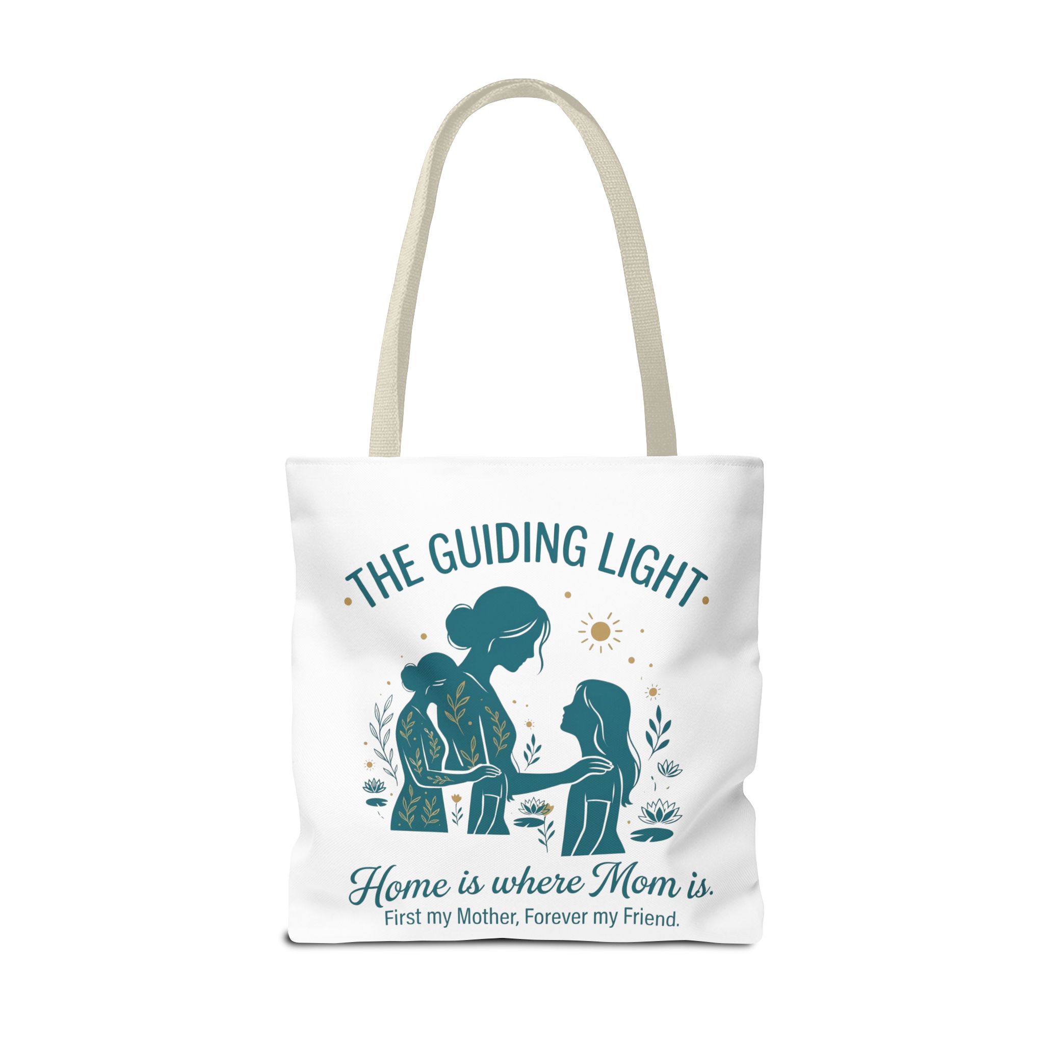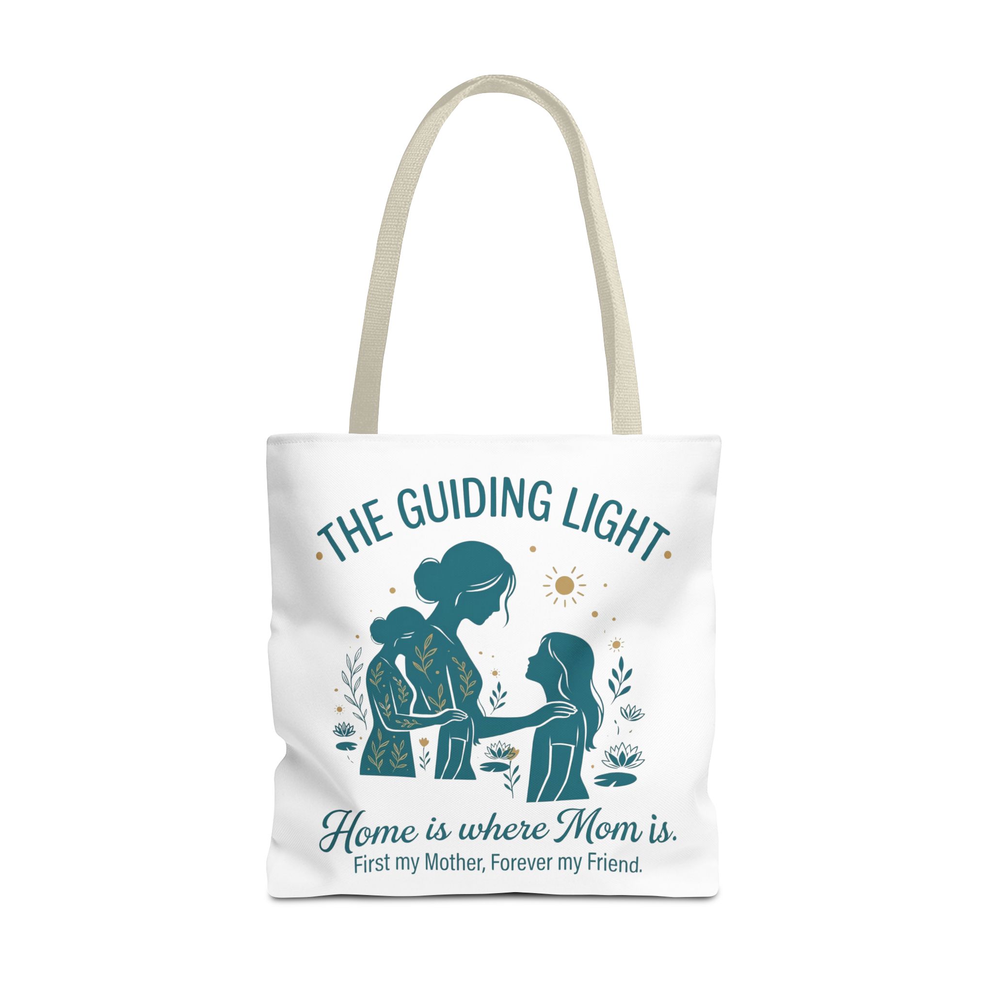 A soft, everyday tote that carries more than just groceries. The simple illustrated scene shows a mother and child sharing a quiet moment—warm teal tones, gentle sun and botanical accents—above the heartfelt line: “Home is where Mom is. First my Mother, Forever my Friend.” Lightweight yet sturdy 100% polyester holds shape and dries fast, while boxed corners add real capacity for books, market finds, or weekend essentials. Choose a handle color that matches your style; the reinforced stitching and non-woven laminate interior keep the bag looking neat through repeated use. This tote slips into daily life easily: school runs, library visits, picnics, or an extra layer in the car when you need it.