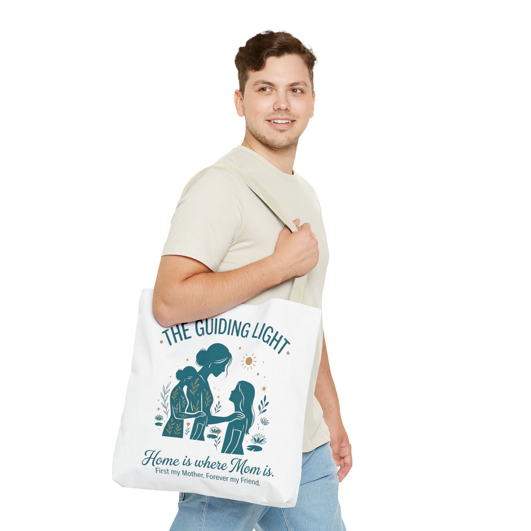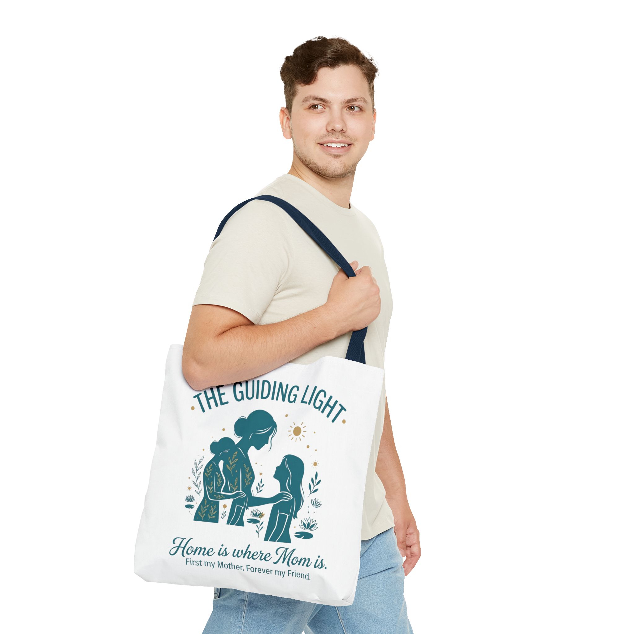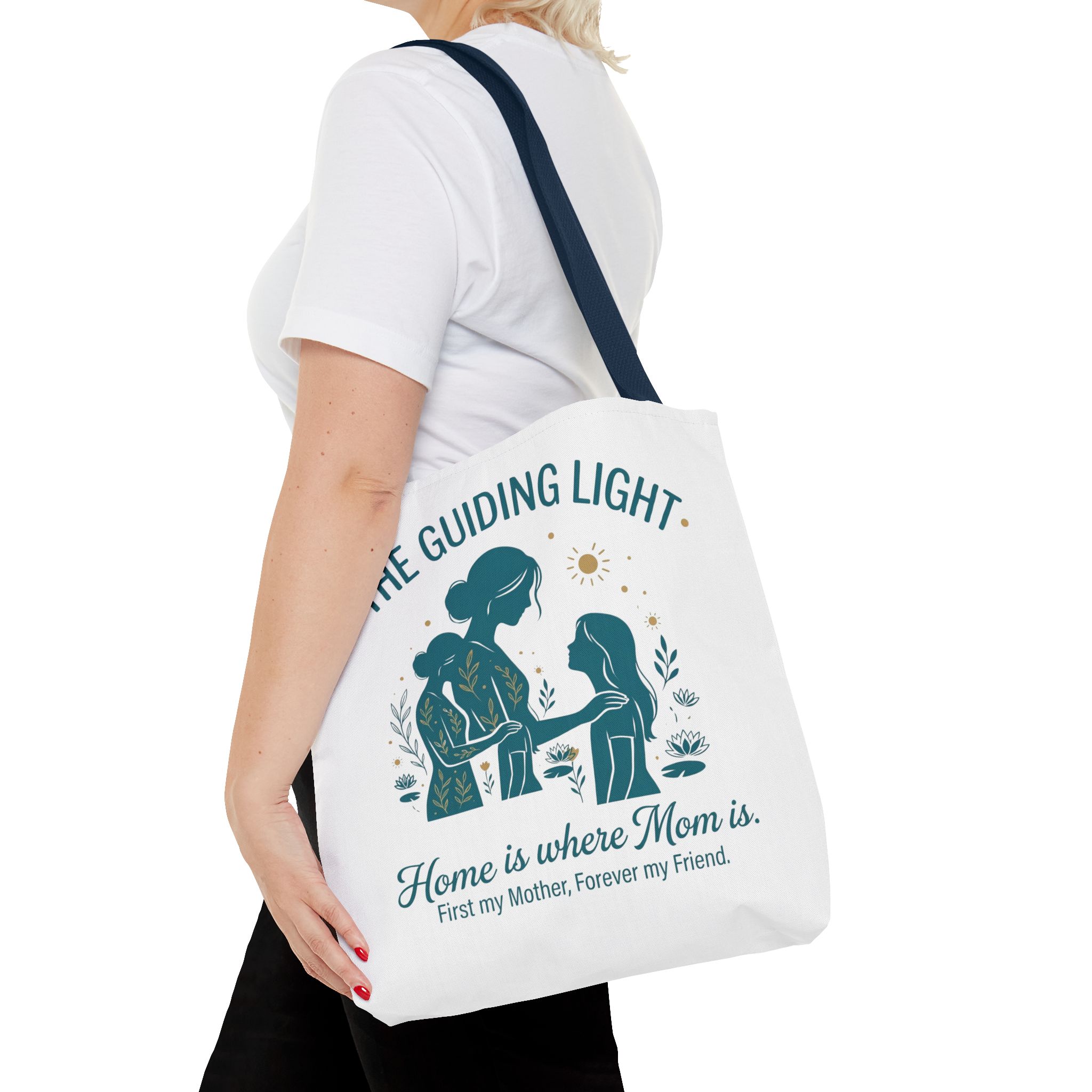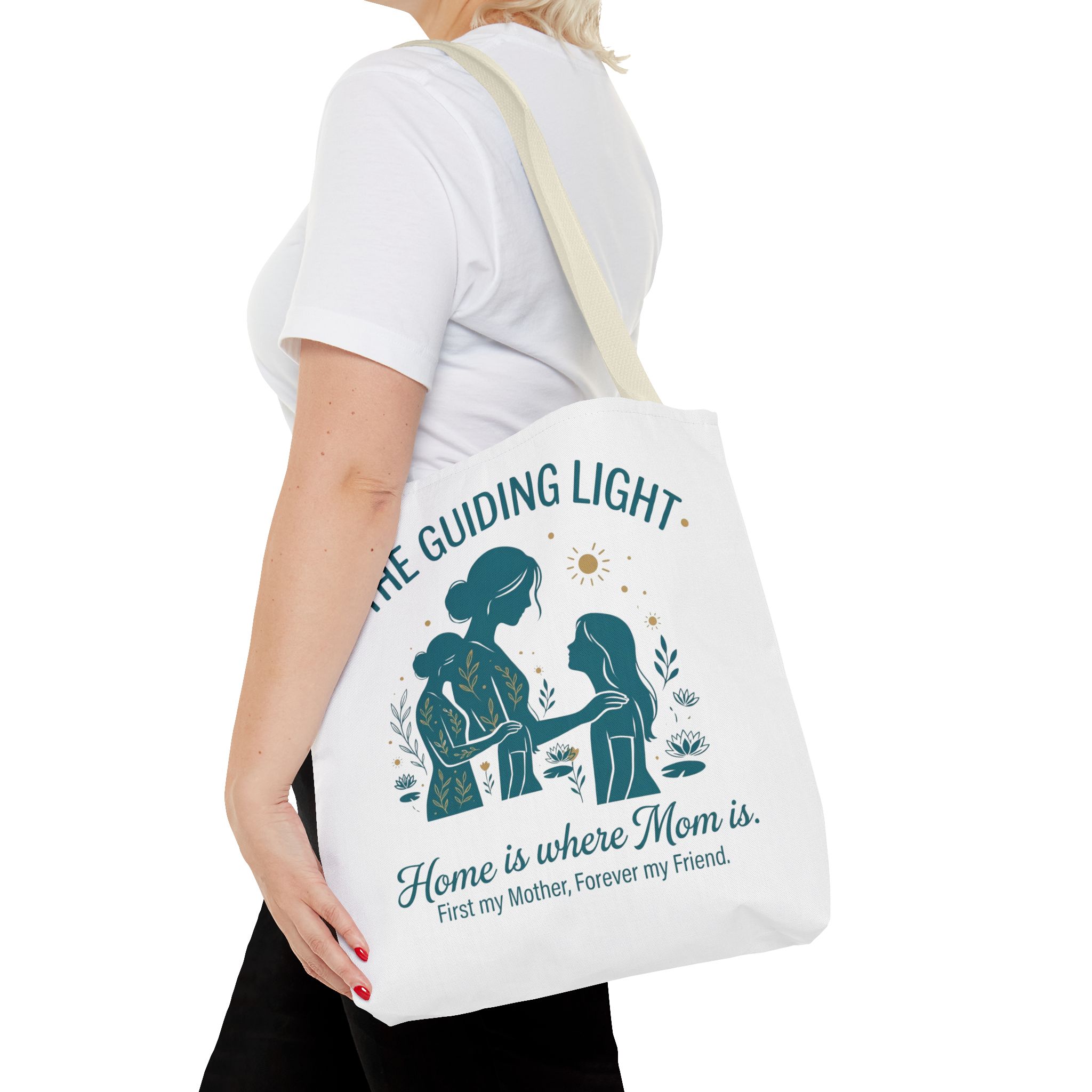 A soft, everyday tote that carries more than just groceries. The simple illustrated scene shows a mother and child sharing a quiet moment—warm teal tones, gentle sun and botanical accents—above the heartfelt line: “Home is where Mom is. First my Mother, Forever my Friend.” Lightweight yet sturdy 100% polyester holds shape and dries fast, while boxed corners add real capacity for books, market finds, or weekend essentials. Choose a handle color that matches your style; the reinforced stitching and non-woven laminate interior keep the bag looking neat through repeated use. This tote slips into daily life easily: school runs, library visits, picnics, or an extra layer in the car when you need it.