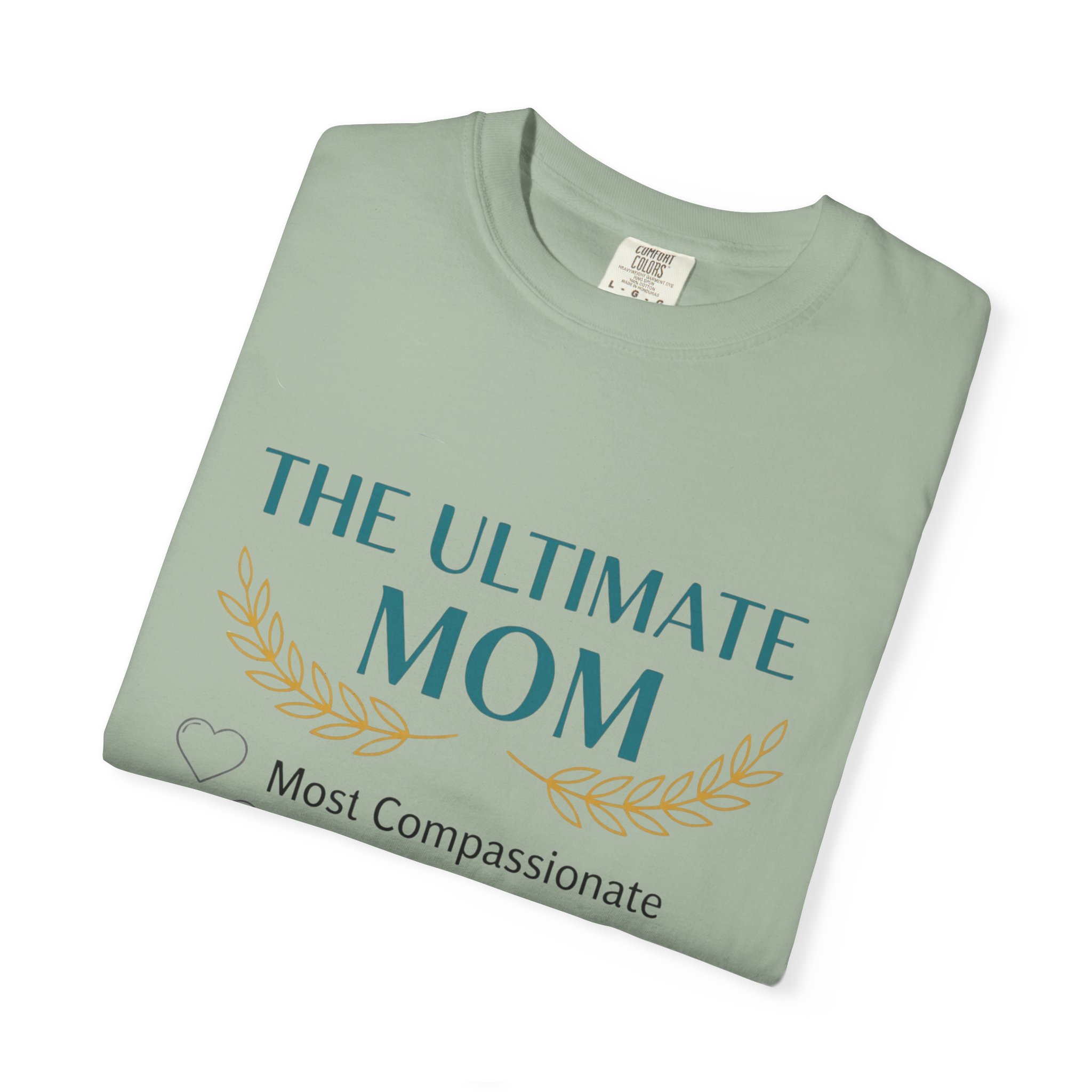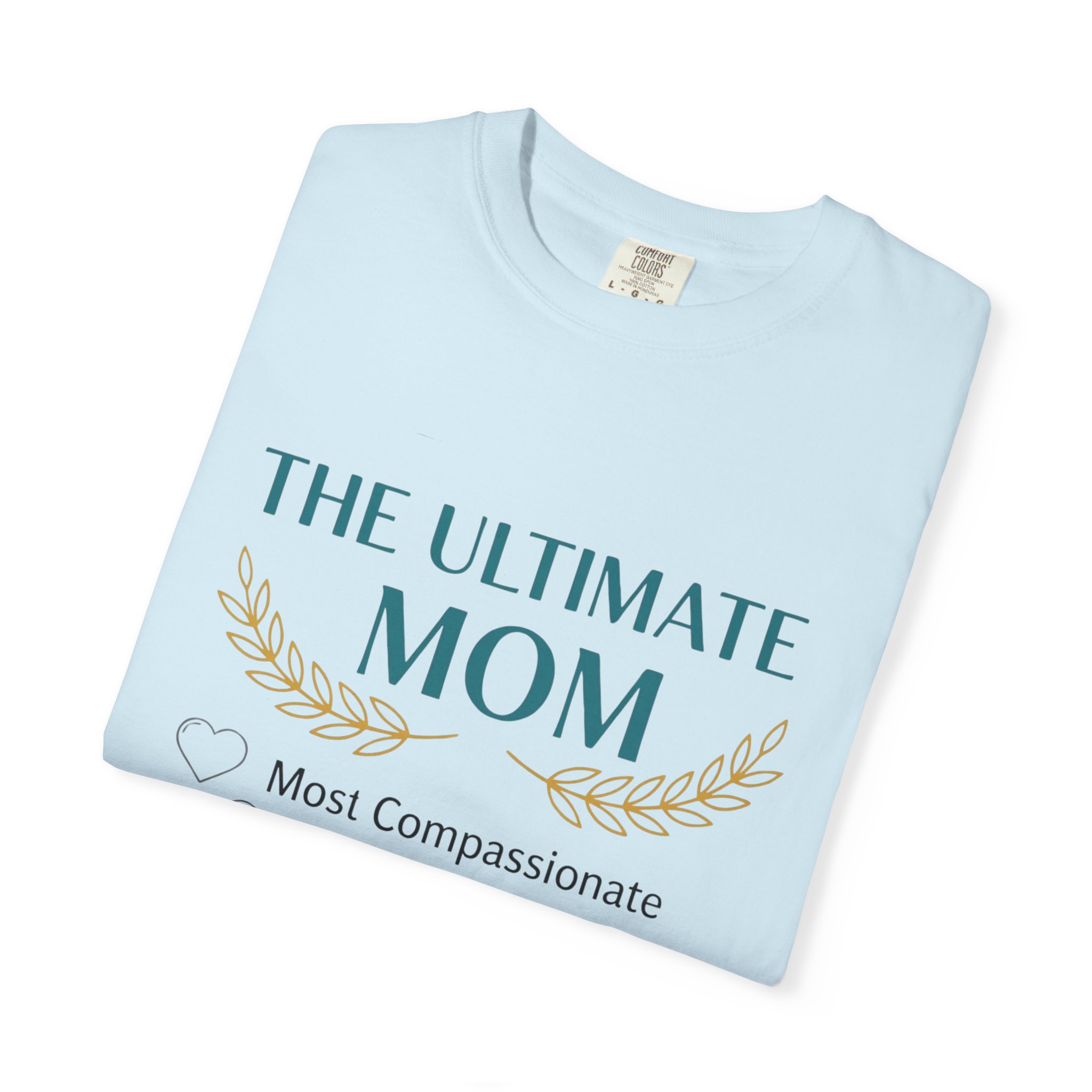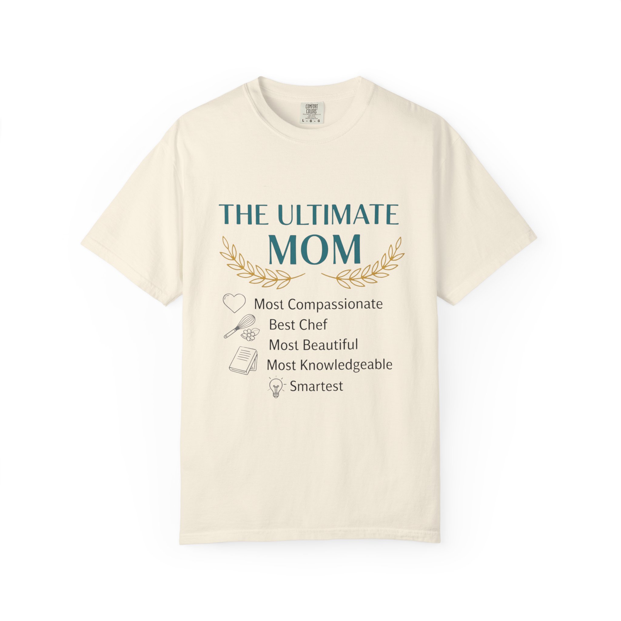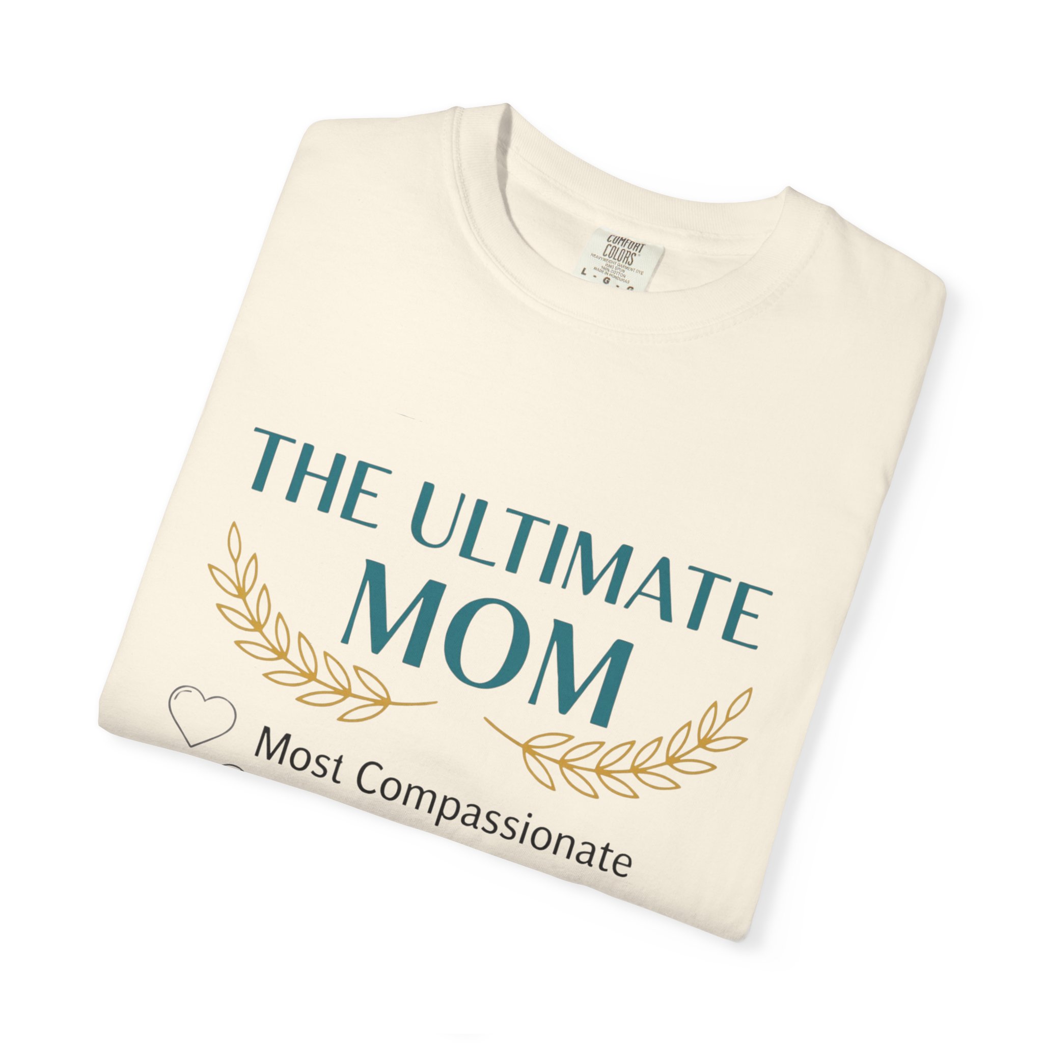 This relaxed, garment-dyed tee is a quiet celebration of the everyday hero in your life — Mom. Soft, lived-in cotton and a muted palette let the subtle design speak in a warm, sincere voice: a laurel-accented headline reading “The Ultimate Mom” followed by a playful checklist that honors compassion, kitchen prowess, beauty, wisdom and smarts. It drapes like an old favorite, moves easily through school runs, coffee dates, and slow weekend mornings, and wears more like a gentle compliment than a loud proclamation. The sewn-in label and heavyweight knit add substance, so it feels thoughtful to give and even better to keep wearing.