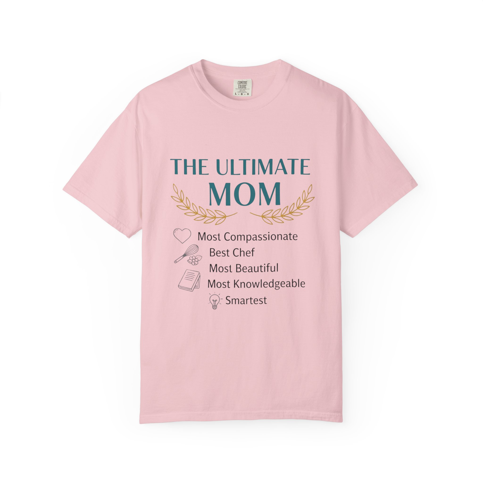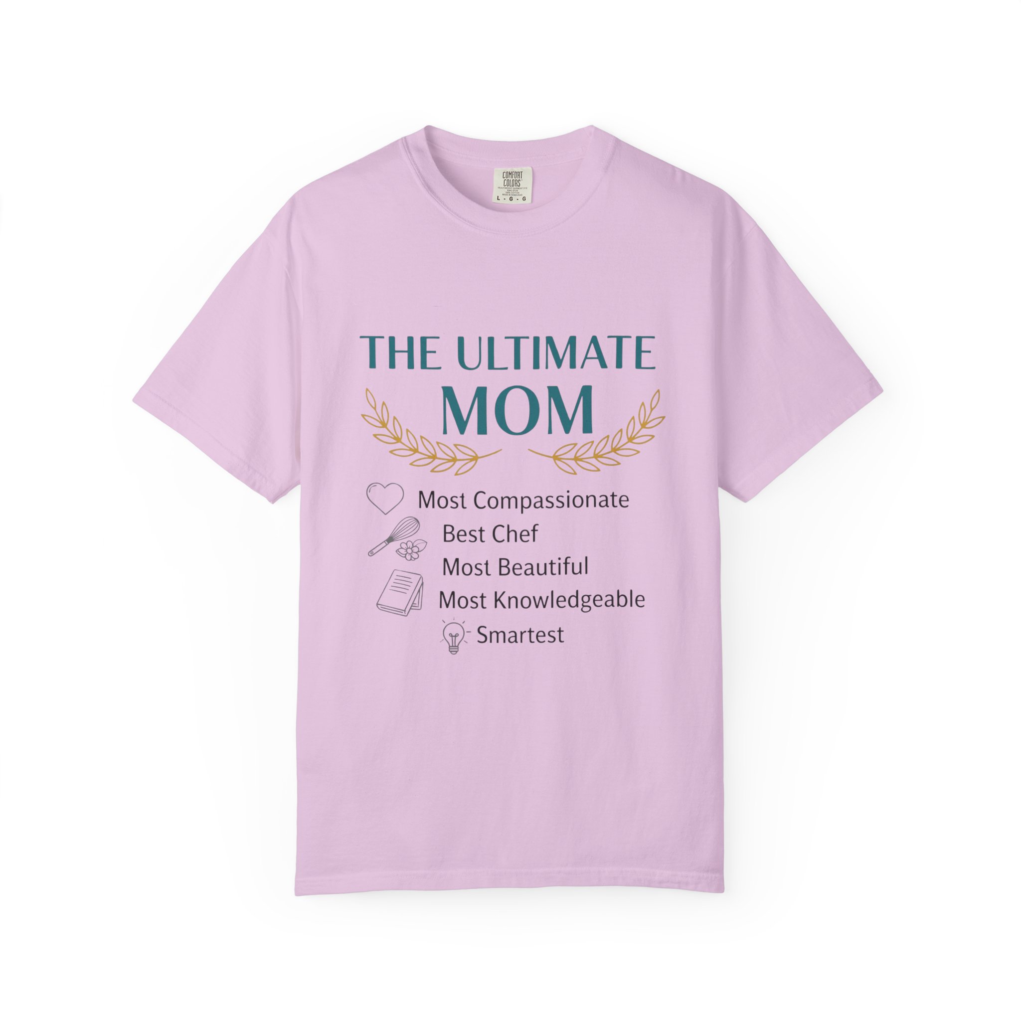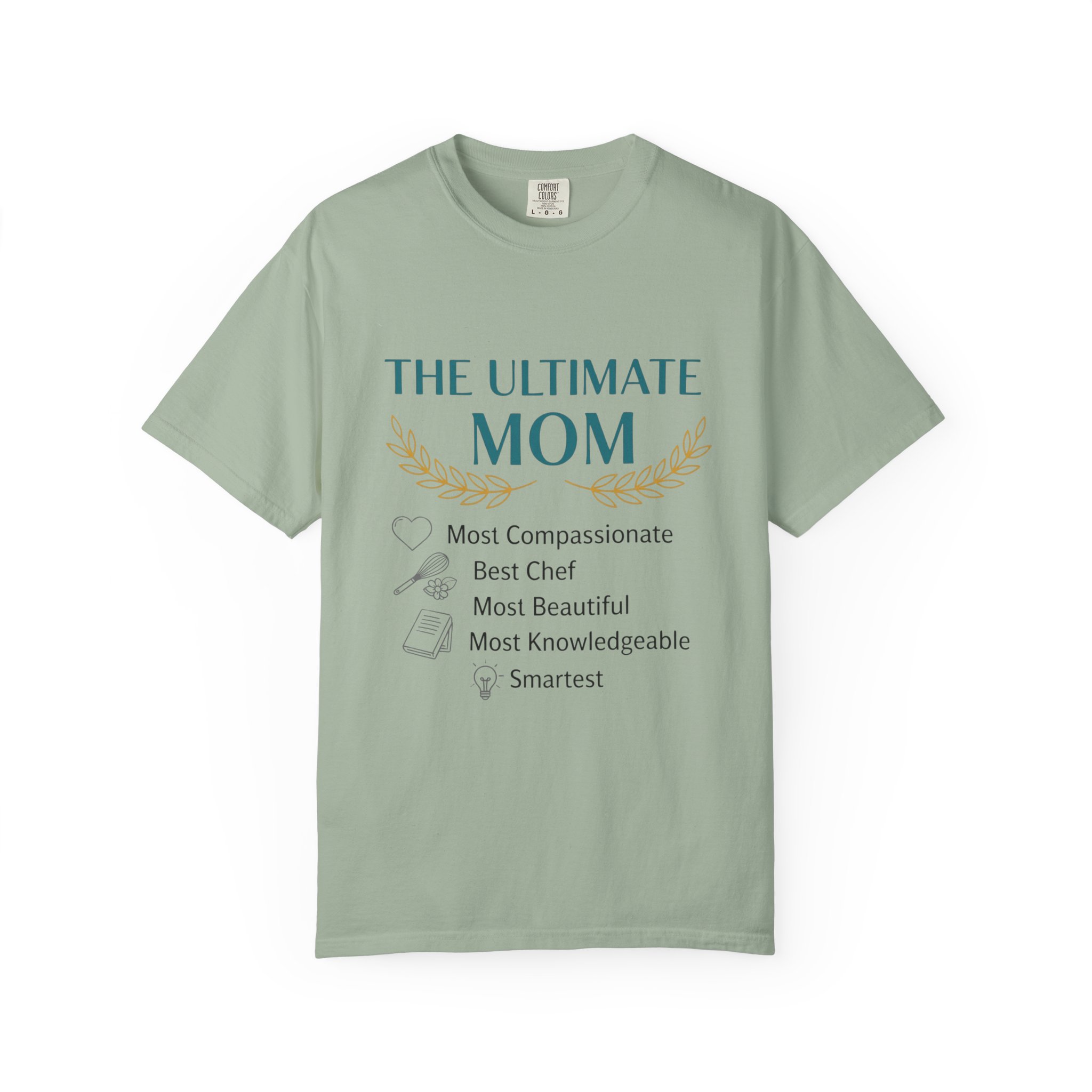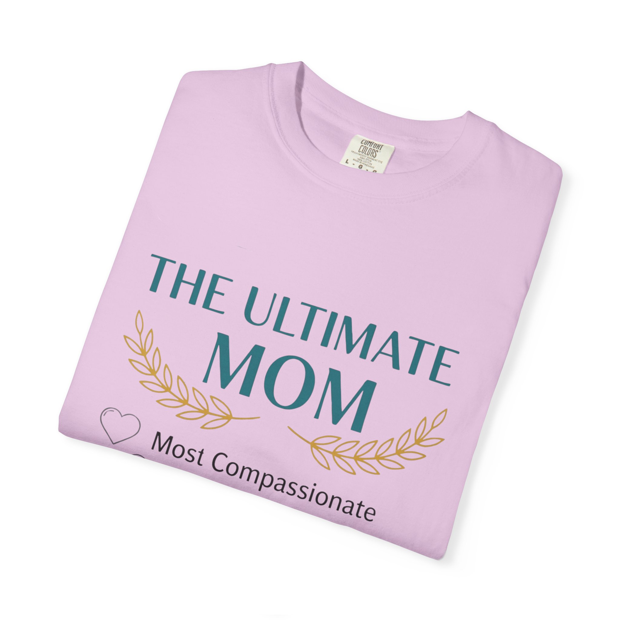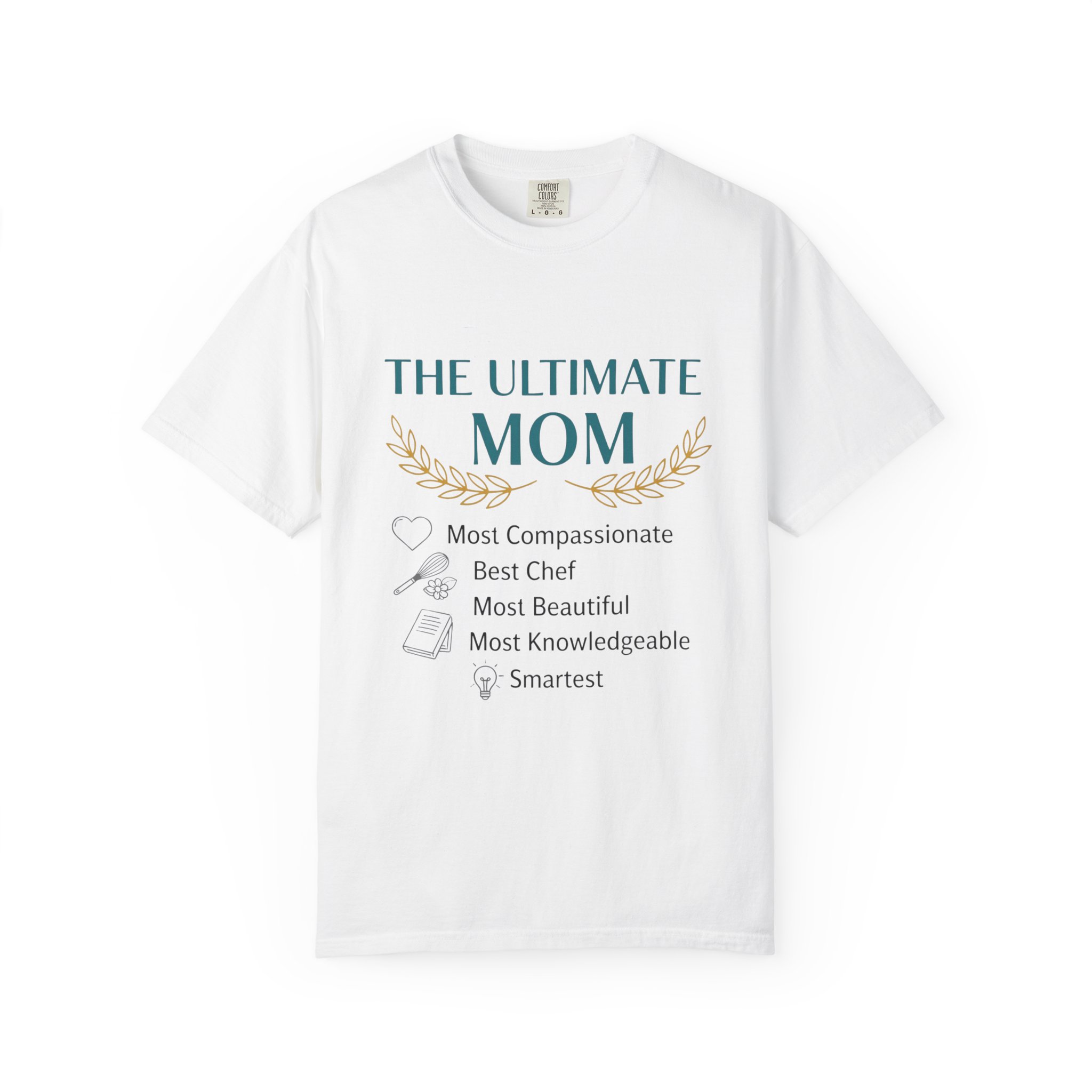 This relaxed, garment-dyed tee is a quiet celebration of the everyday hero in your life — Mom. Soft, lived-in cotton and a muted palette let the subtle design speak in a warm, sincere voice: a laurel-accented headline reading “The Ultimate Mom” followed by a playful checklist that honors compassion, kitchen prowess, beauty, wisdom and smarts. It drapes like an old favorite, moves easily through school runs, coffee dates, and slow weekend mornings, and wears more like a gentle compliment than a loud proclamation. The sewn-in label and heavyweight knit add substance, so it feels thoughtful to give and even better to keep wearing.