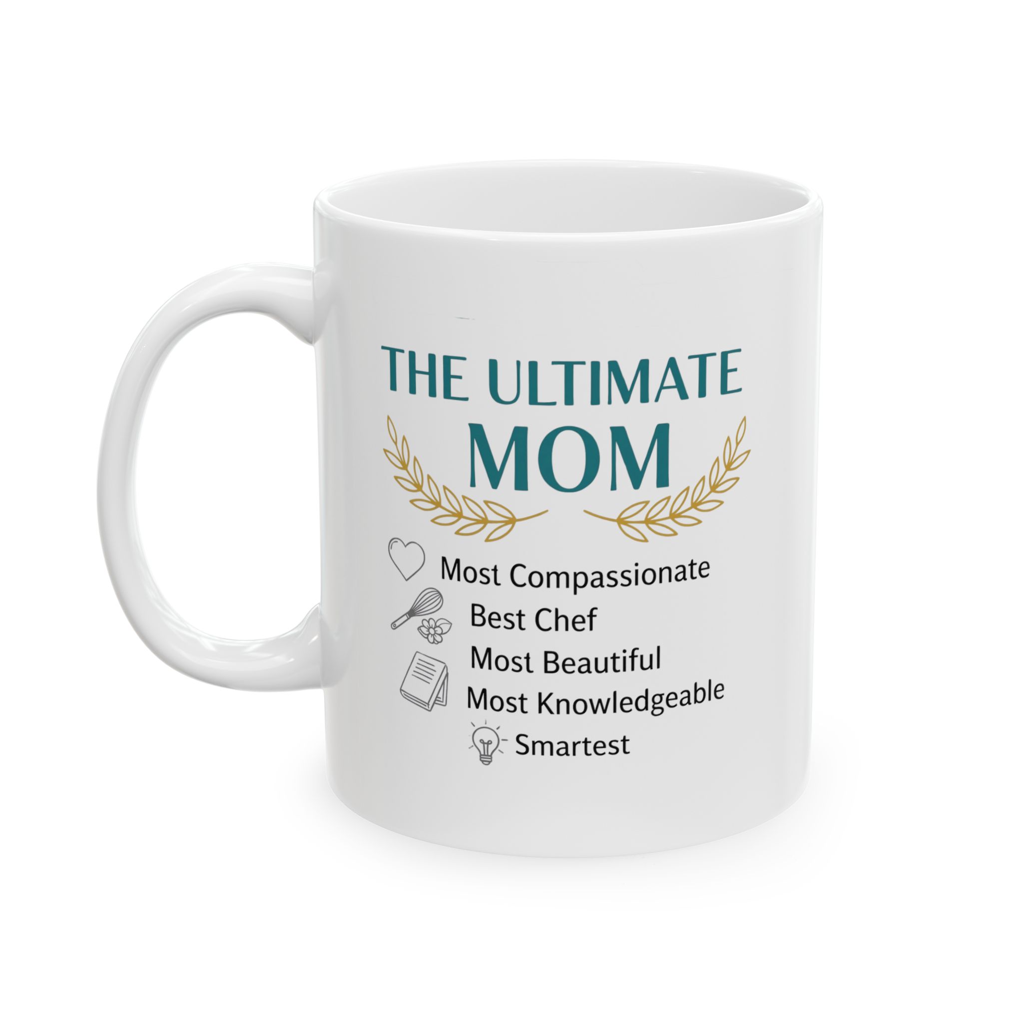 A glossy white ceramic mug with crisp, vibrant printing that turns an everyday ritual into a small celebration. The design wraps subtly around the cup, combining teal headers, delicate wheat motifs, and hand-drawn icons for a warm, slightly rustic look. Comfortable C-handle and two size choices let you pick the right morning companion — a cozy 11oz for a single cup or a generous 15oz for those who linger over their drink. Microwave- and dishwasher-safe, lead- and BPA-free, this mug stands up to daily use while keeping the colors bright and the finish shiny. It slips easily into a farmhouse kitchen, a home office break, or a quiet corner where someone savors slow sips and thoughtful moments.