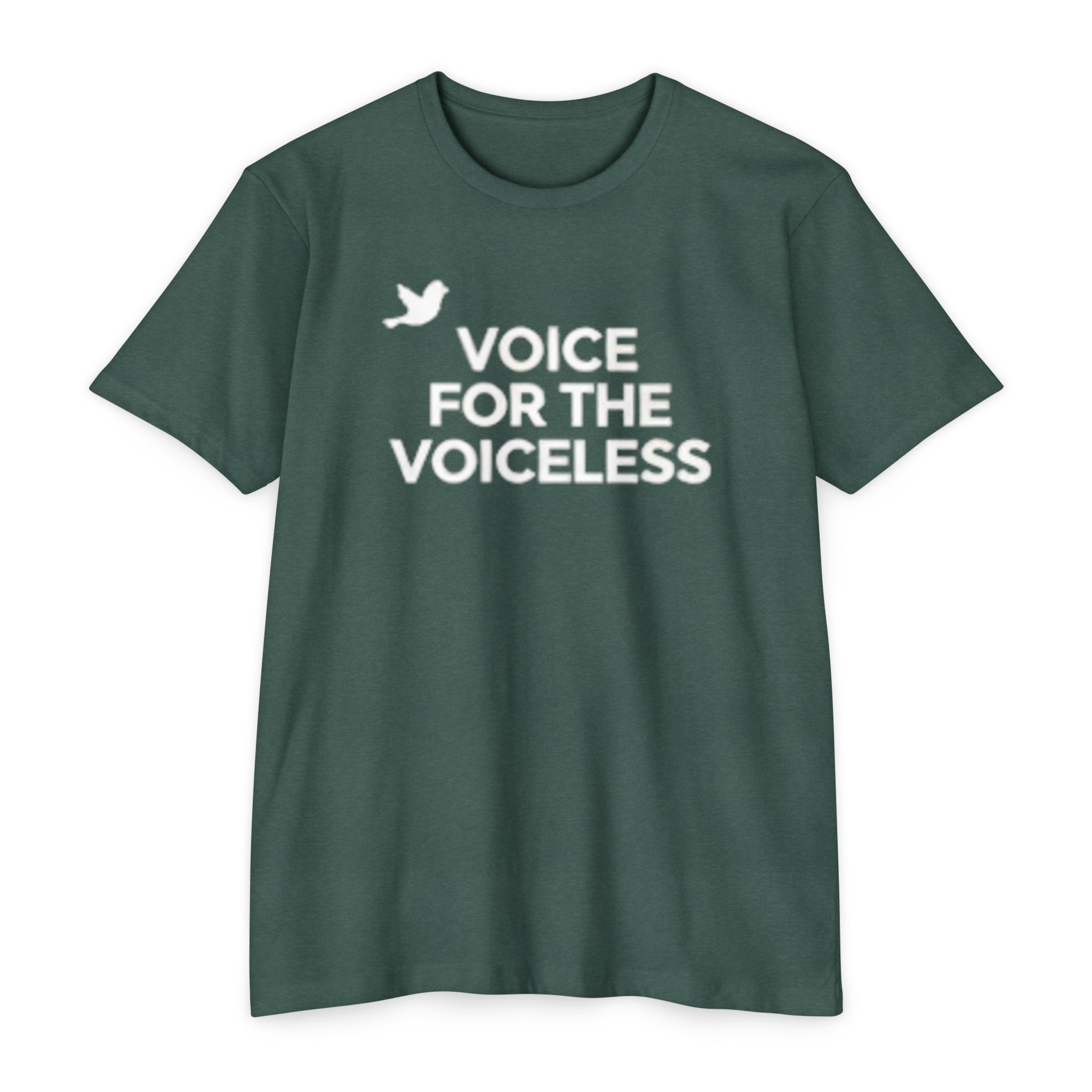 Soft, breathable tee with a clear, compassionate message: “VOICE FOR THE VOICELESS” beneath a small dove icon. This lightweight classic-fit shirt slips into everyday wear — from protests and volunteer shifts to casual weekends — and keeps you comfortable while you speak up. The muted green color and bold white lettering read as calm but confident, a quiet ally to conversations about animal welfare, human rights, or environmental care. Wear it layered under a jacket or solo when you want your stance to be visible without shouting. The fabric feels gentle on the skin and the collar and seams hold their shape after many washes, so the message stays crisp and the fit stays right.