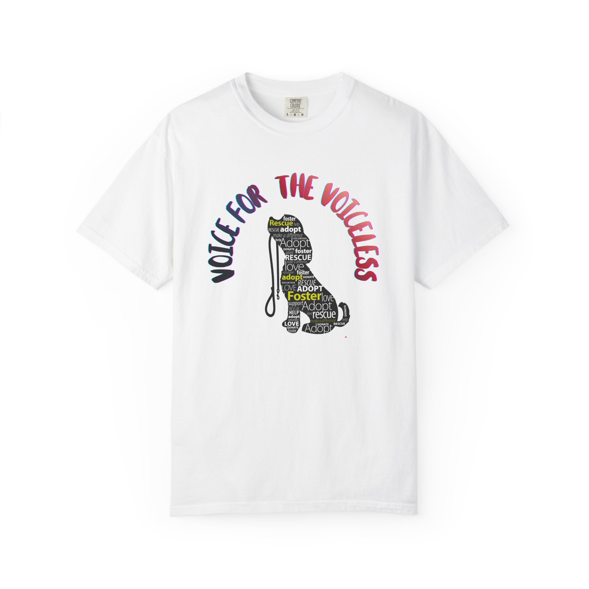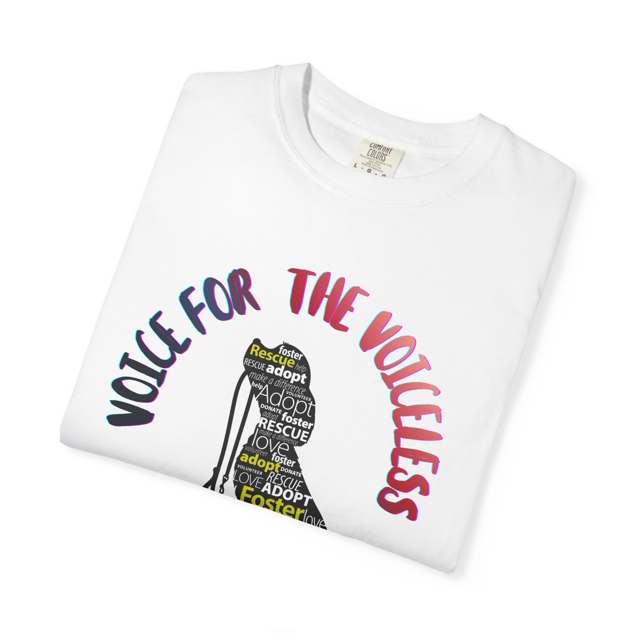 This relaxed garment-dyed tee carries a quiet strength. A typographic cat silhouette fills the front with names and words that honor rescued and fostered pets, while the arching slogan above reads “Voice for the Voiceless.” The heavyweight cotton softens with wear and the dye gives each shirt a lived-in, broken-in color and texture that feels comfortable from day one. Wear it to volunteer shifts, adoption events, or out on neighborhood walks — it reads like a gentle pledge and starts conversations without shouting. The relaxed cut and durable double-stitched seams mean it will be reached for again and again, becoming part of the everyday routine of anyone who champions animal rescue.