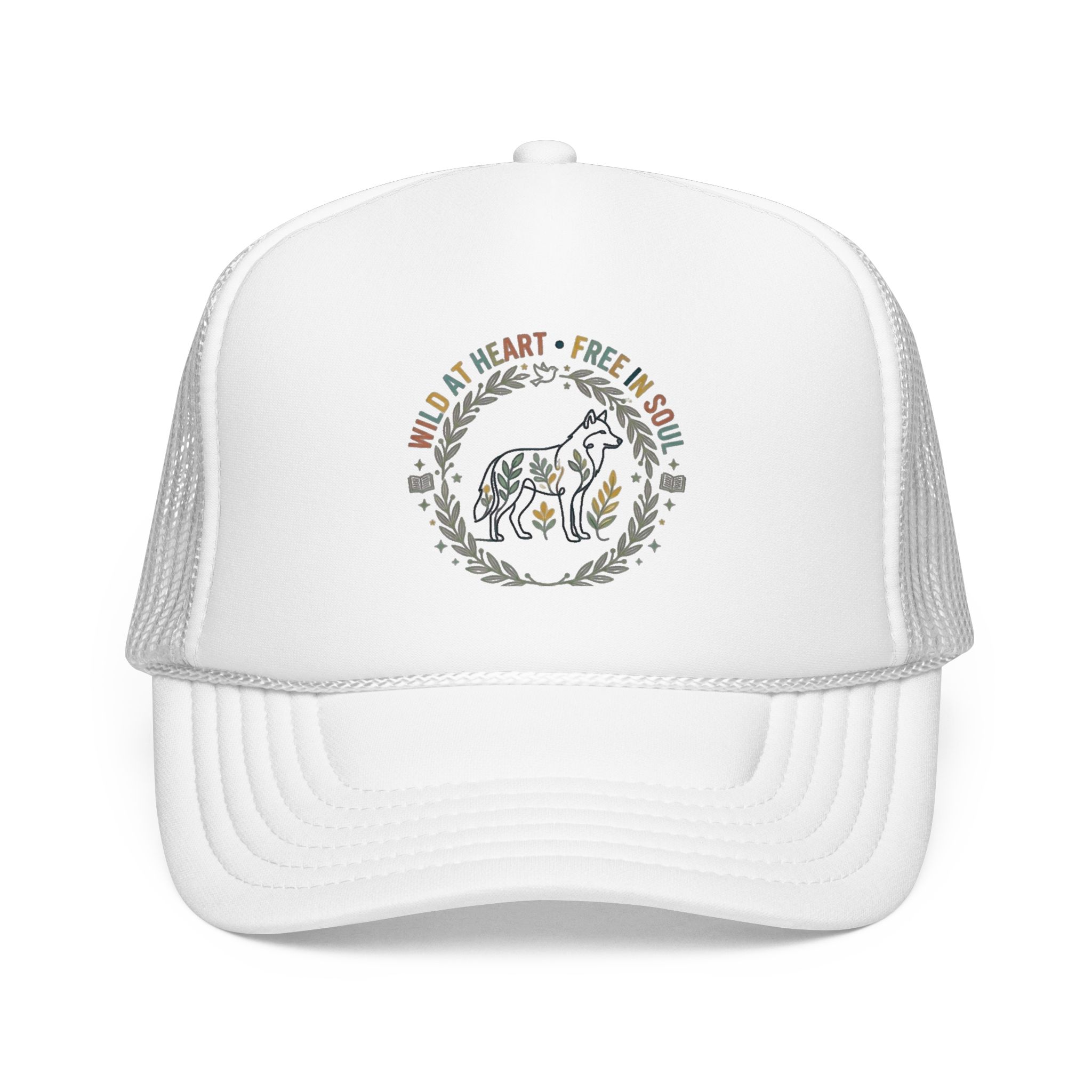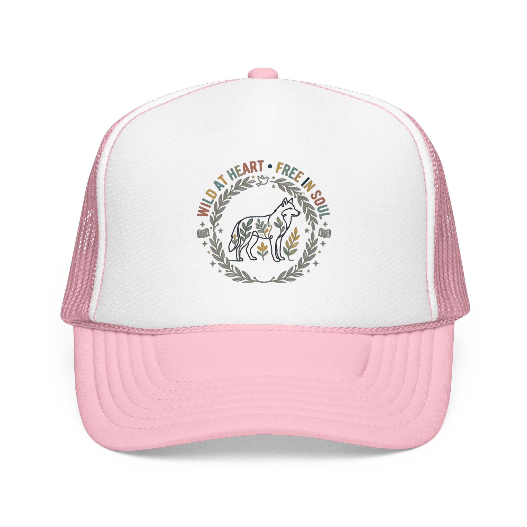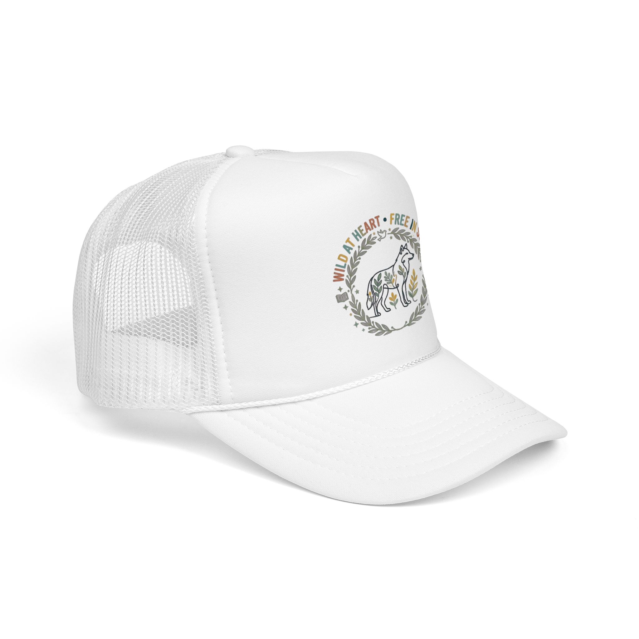 Wild at Heart Free in Soul Foam Trucker Hat | Boho Floral Leopard Wreath