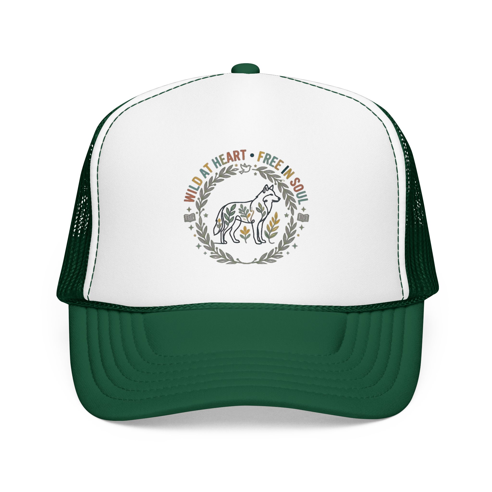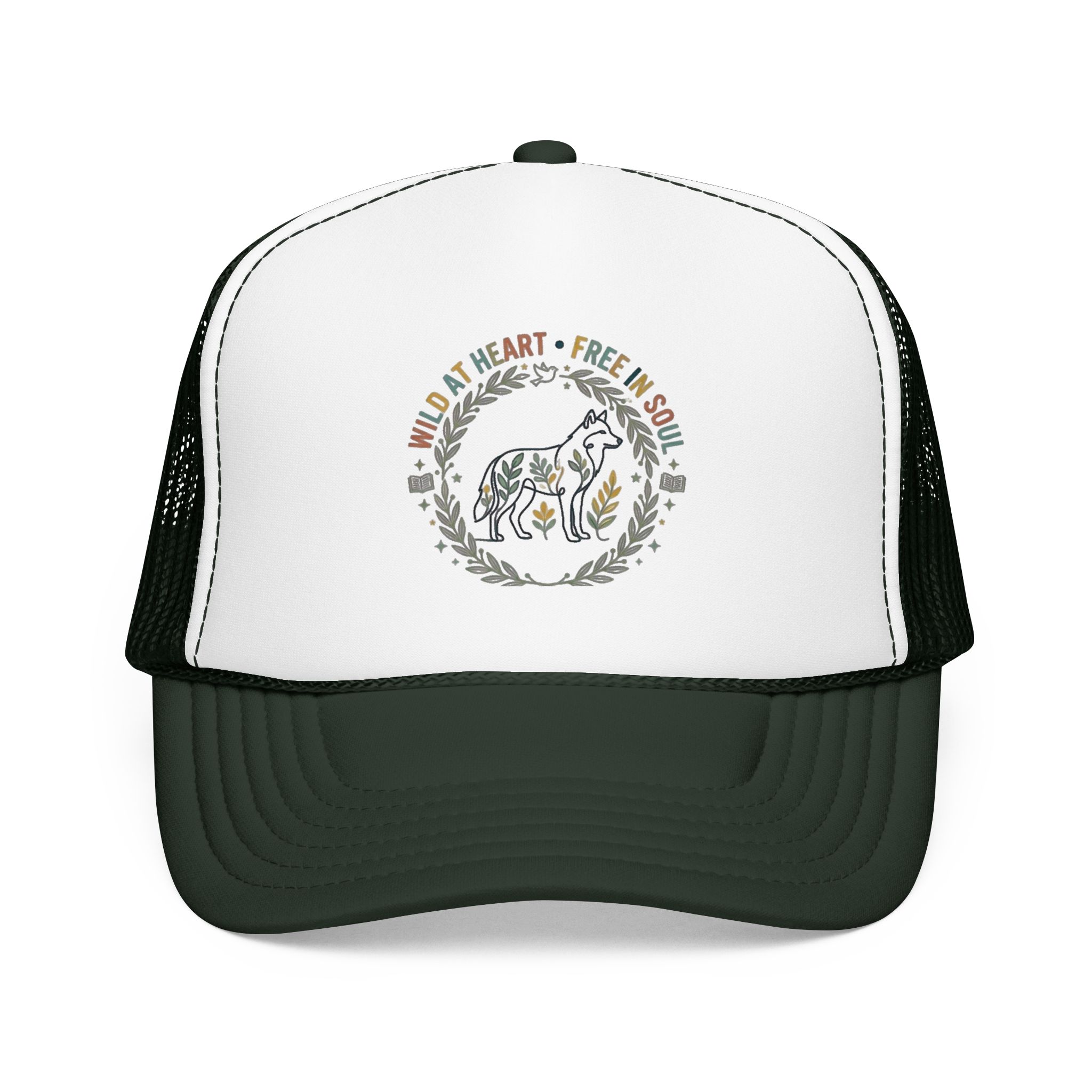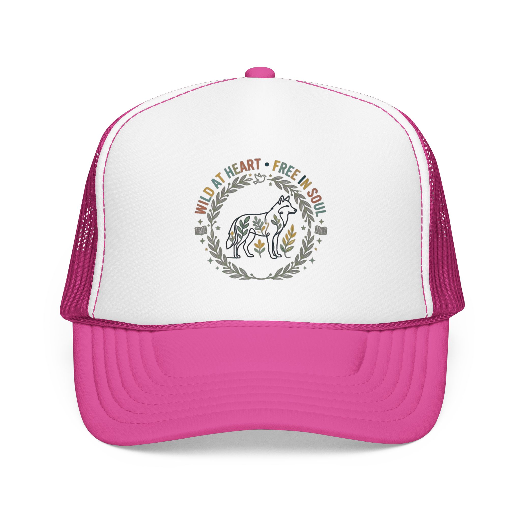 Wild at Heart Free in Soul Foam Trucker Hat | Boho Floral Leopard Wreath