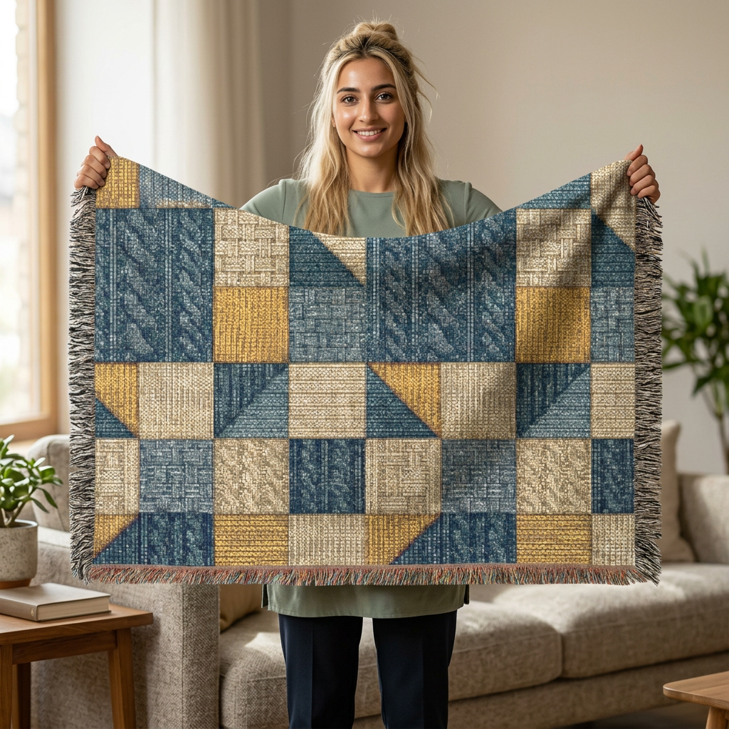 Whether you choose to feature a photo or a piece of graphic art, these cozy blankets elevate images into lasting, quality heirlooms. Put them up on the wall for a cozy display or use it to cuddle up on your couch. These cozy throw-sized woven blankets are woven out of 100% cotton yarn with a colorful edge fringe that extends the image.